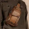 Nova Bolsa de Peito Masculina, Bolsa Transversal Casual Clássica Multifuncional, Bolsa Retro de Couro Genuíno de Primeira Camada, Bolsa de Ombro