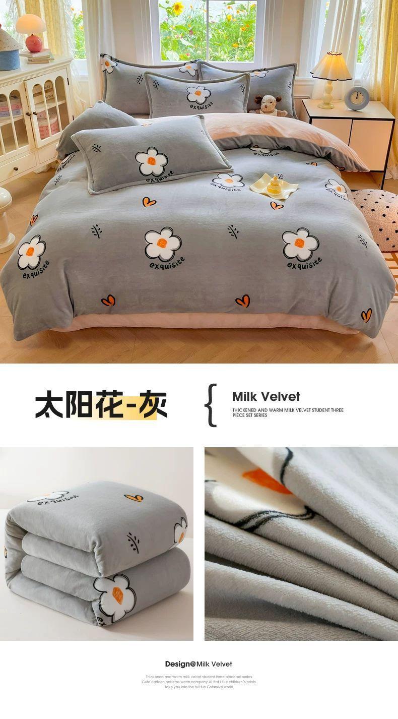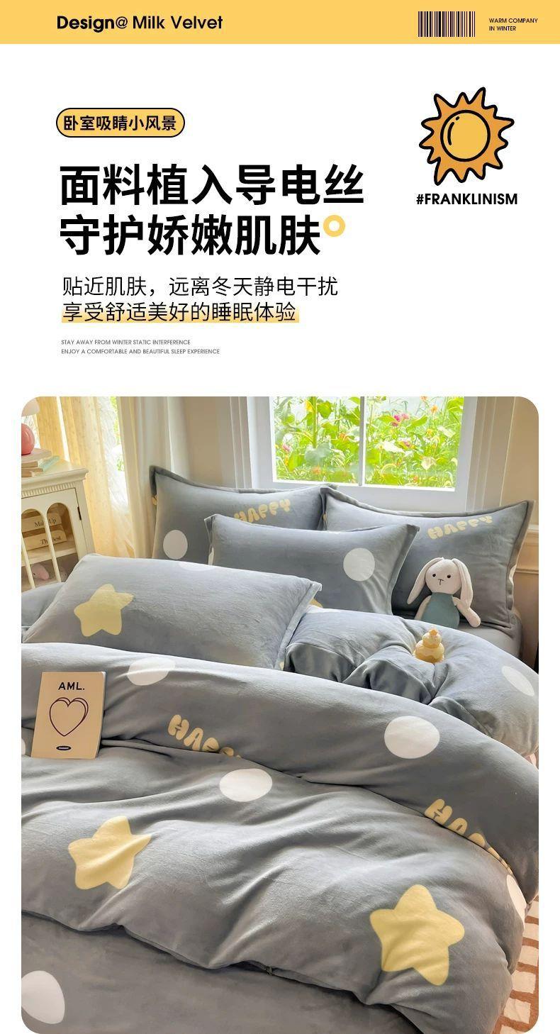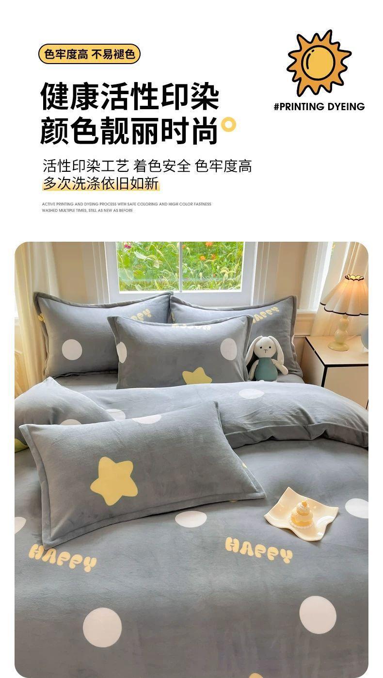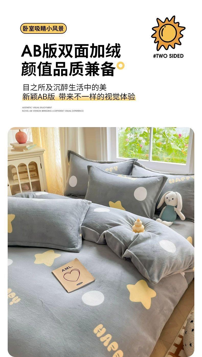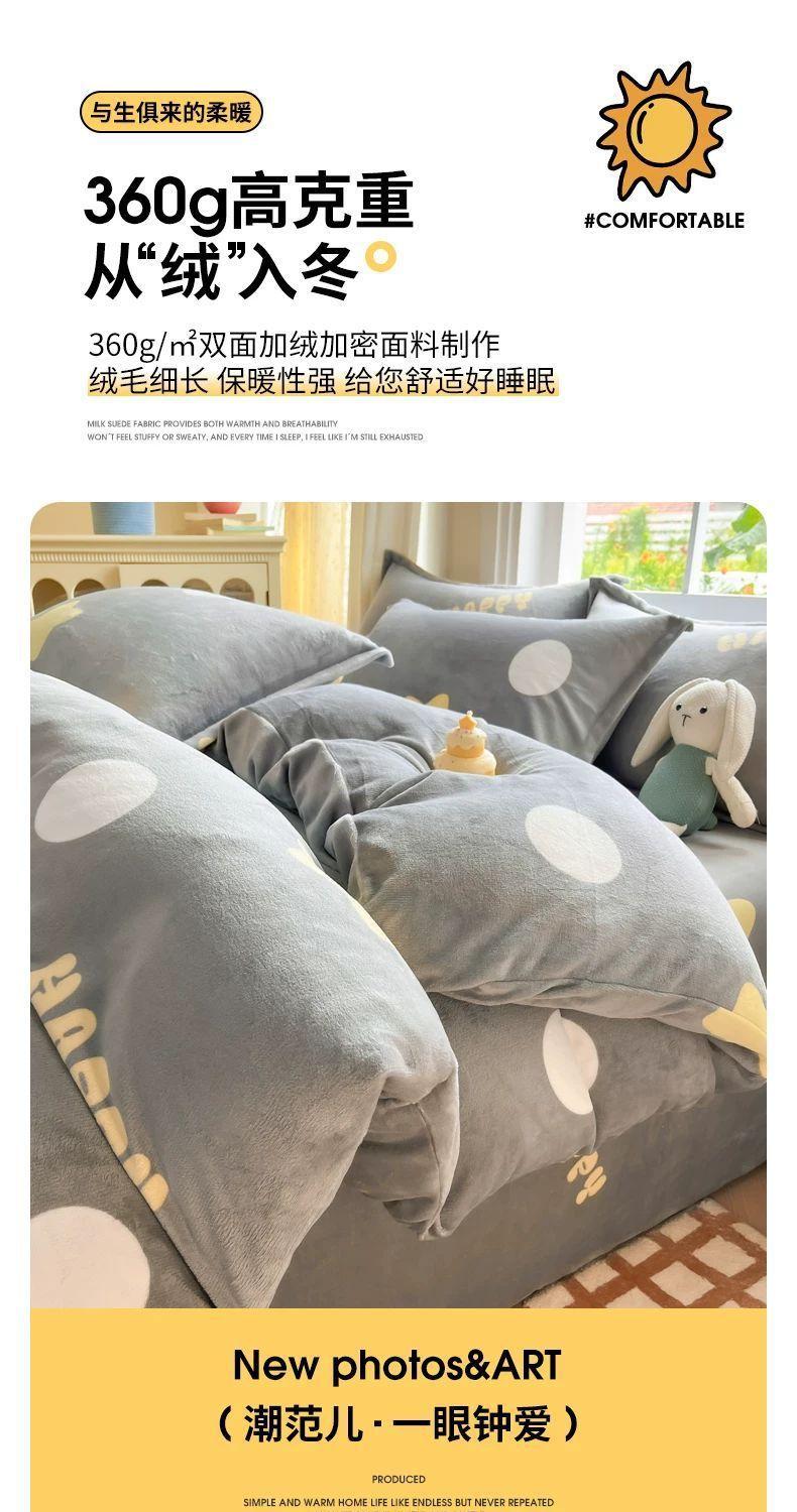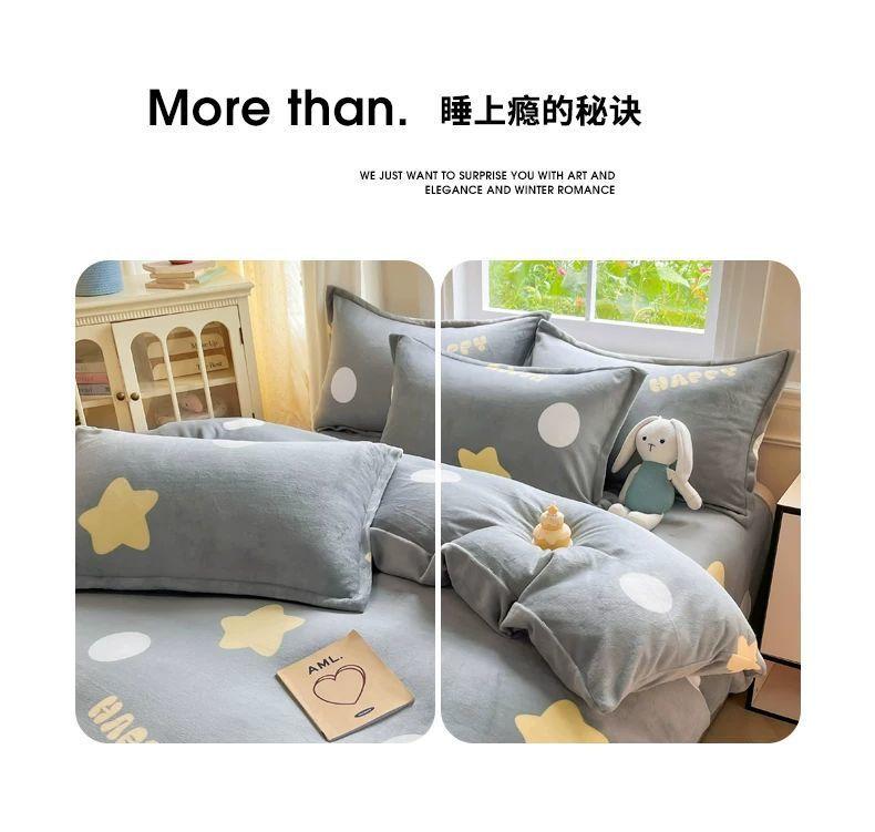 Conjunto de Quatro Peças de Veludo de Leite de Inverno Lençol de Flanela Velo Coral Capa de Edredom Conjunto de Três Peças Dormitório Estudantil