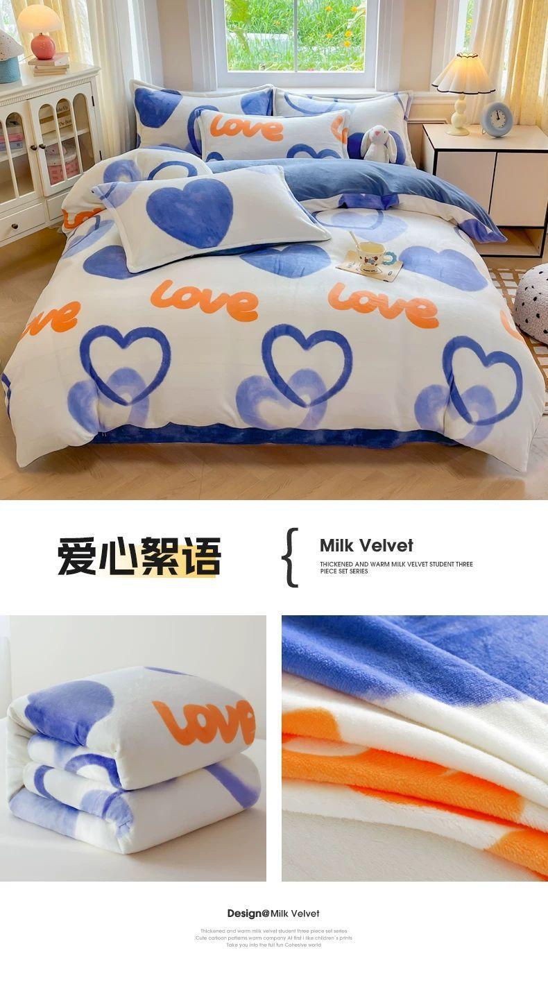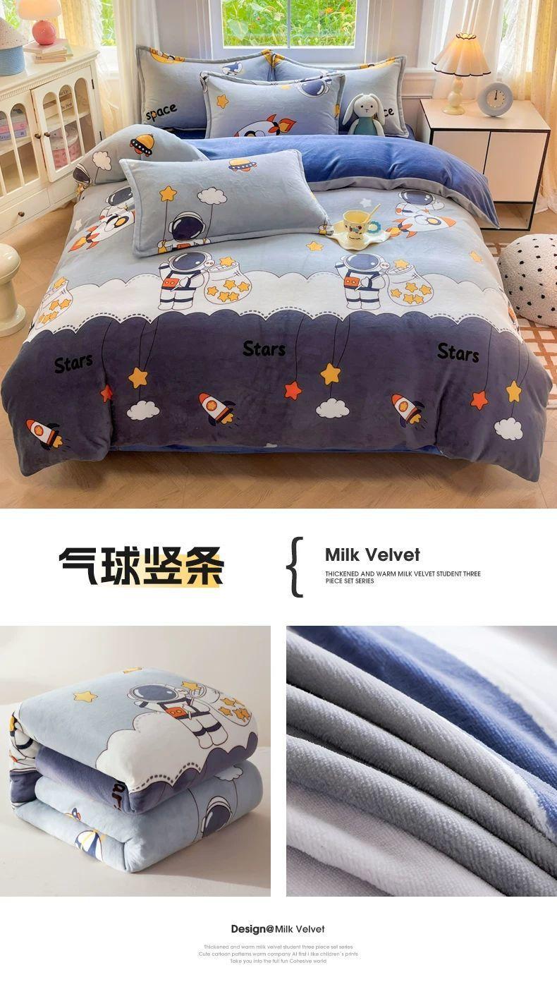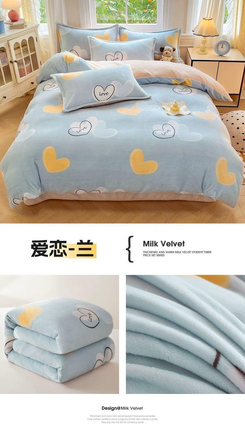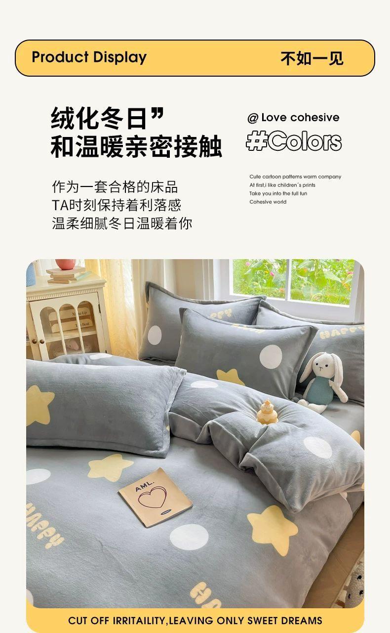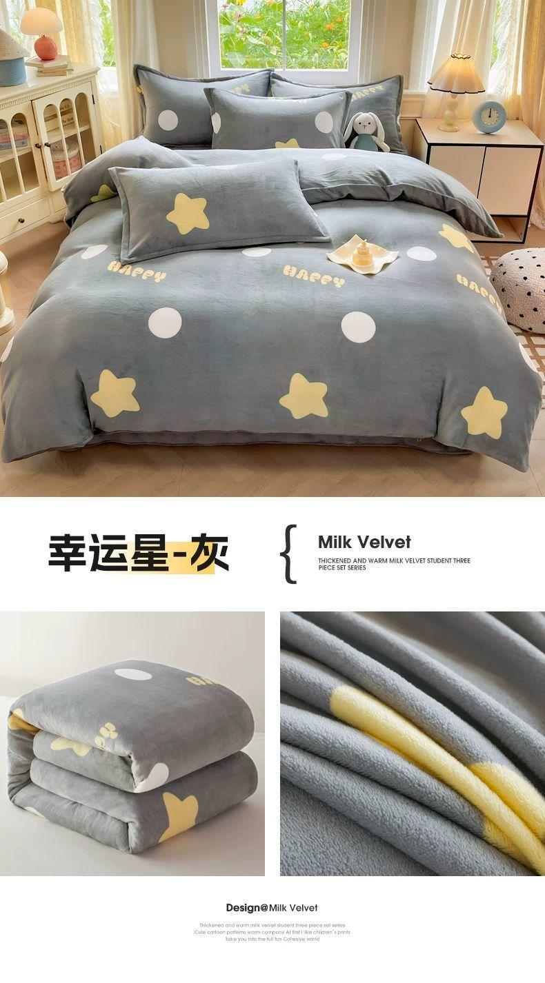 Conjunto de Quatro Peças de Veludo de Leite de Inverno Lençol de Flanela Velo Coral Capa de Edredom Conjunto de Três Peças Dormitório Estudantil