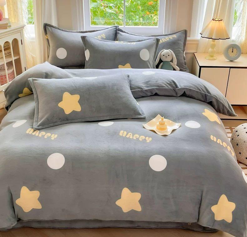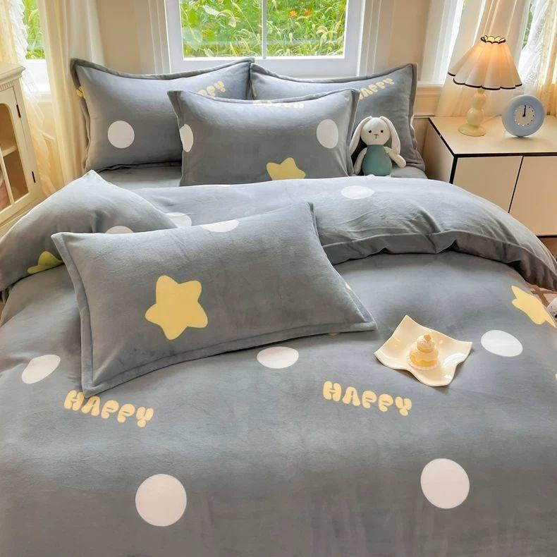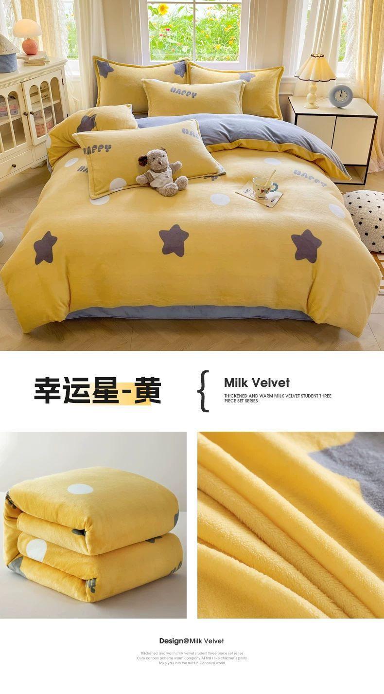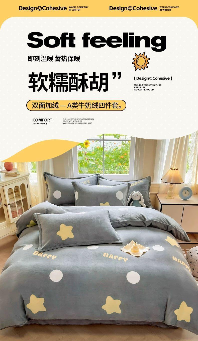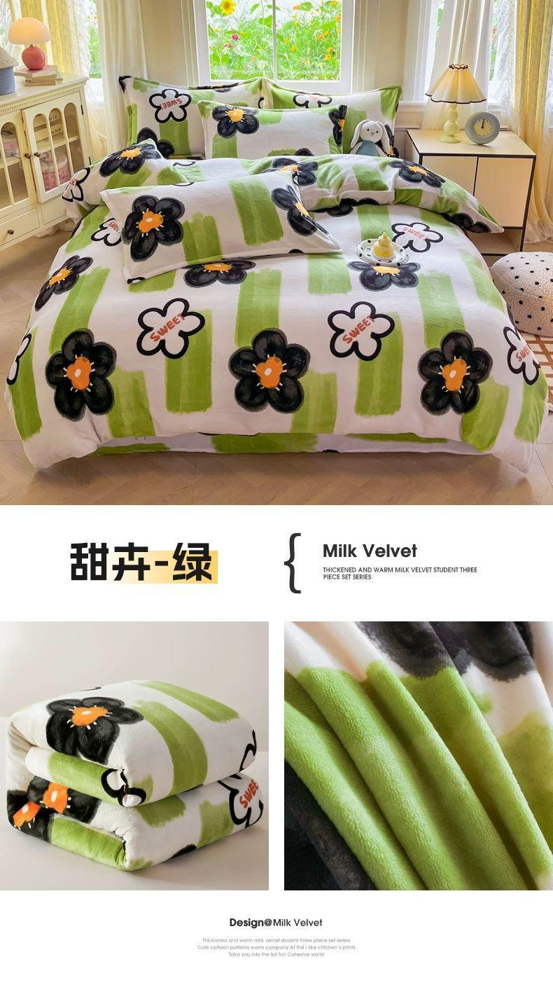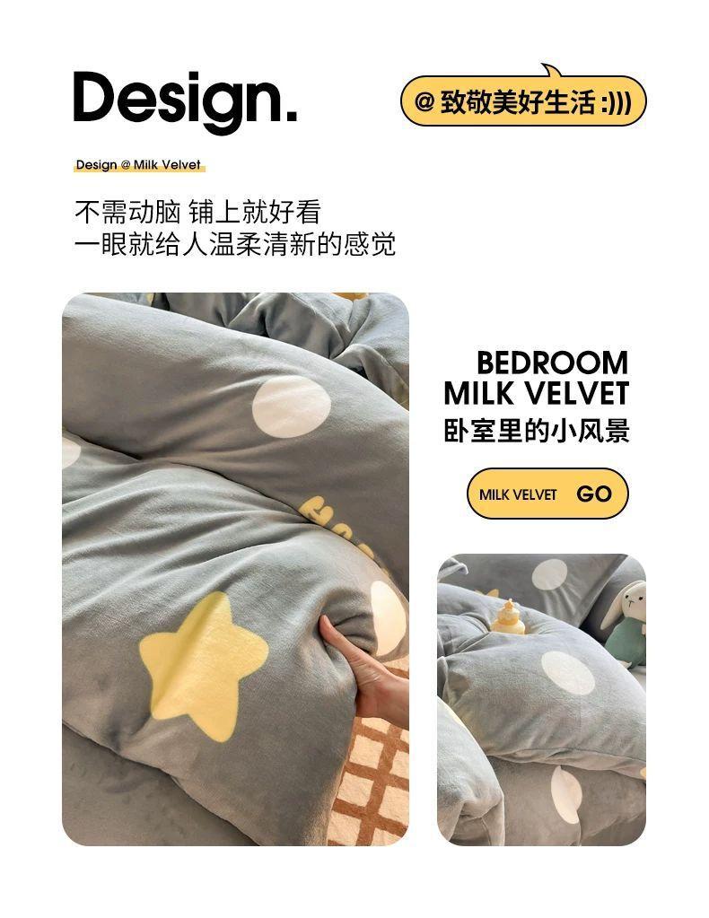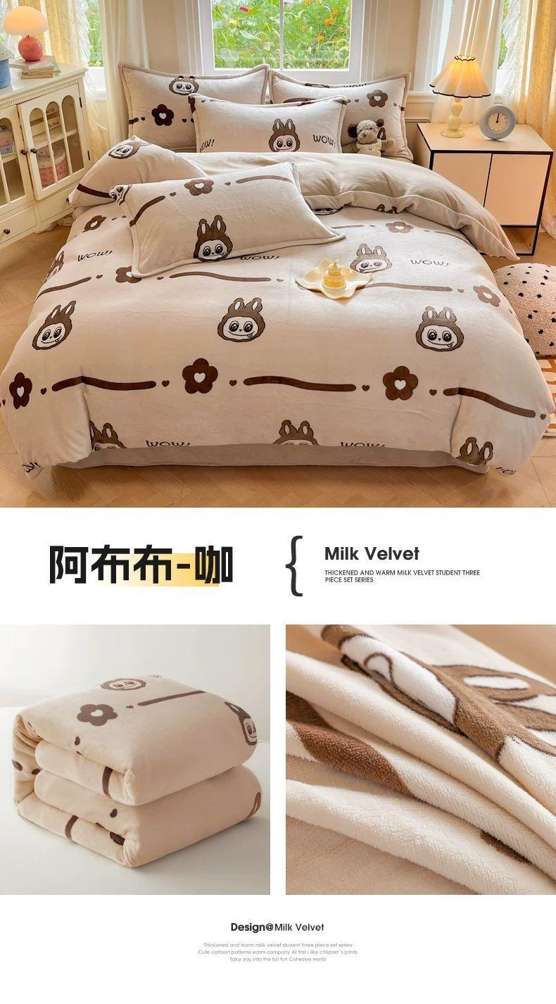 Conjunto de Quatro Peças de Veludo de Leite de Inverno Lençol de Flanela Velo Coral Capa de Edredom Conjunto de Três Peças Dormitório Estudantil