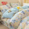 Lençóis de Algodão Puro, Conjunto de Quatro Peças, Lençóis com Elástico, Capa de Edredom de Três Peças, Capa de Edredom, Lavável à Máquina Pessoa Solteira
