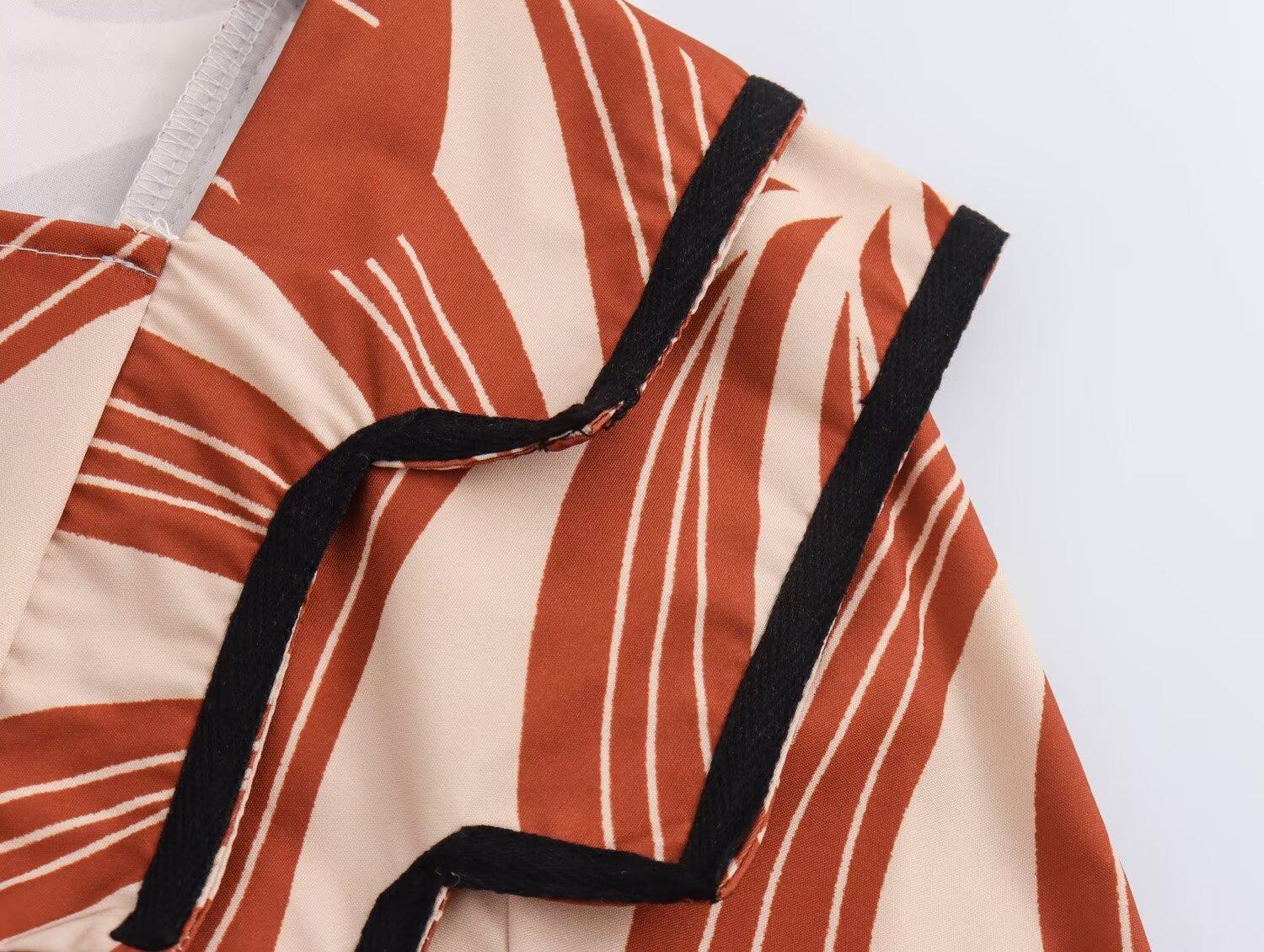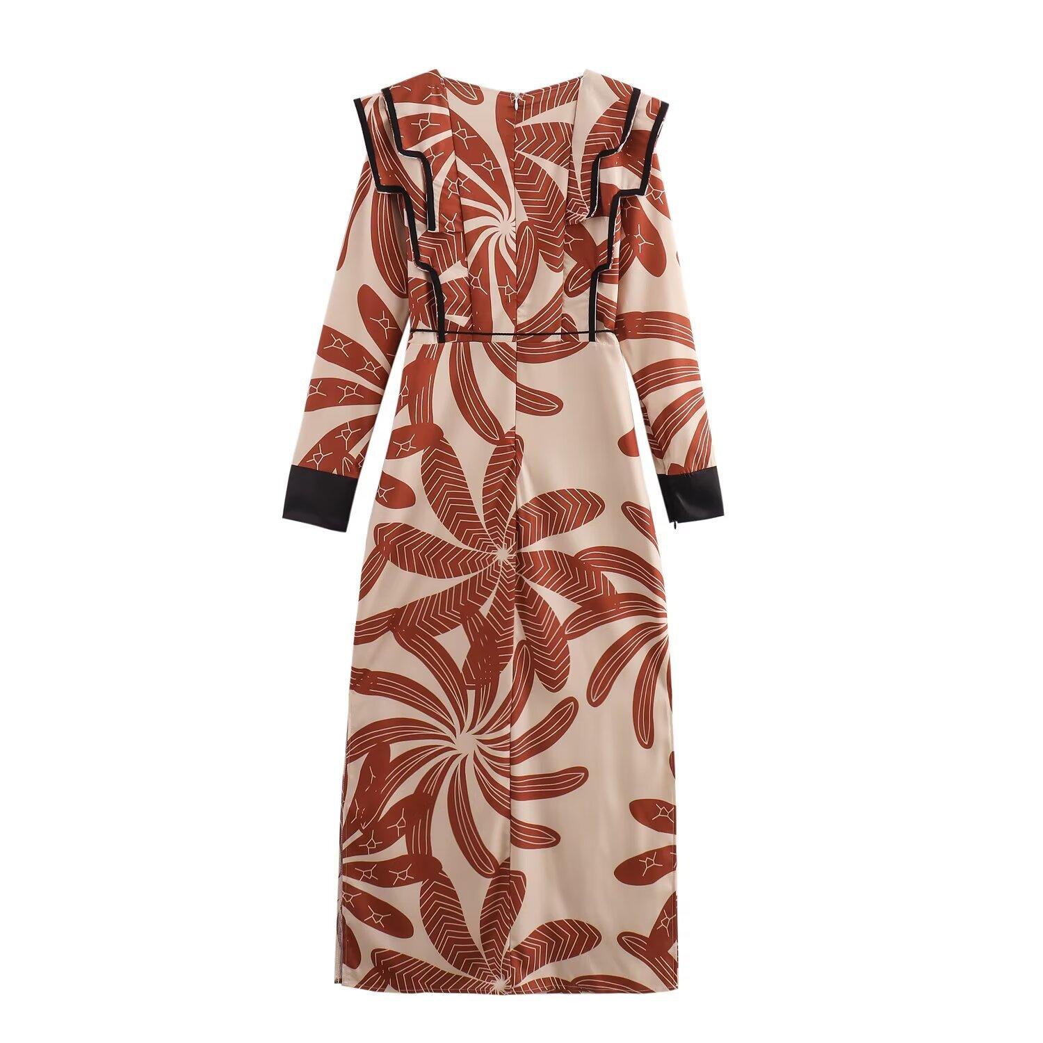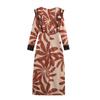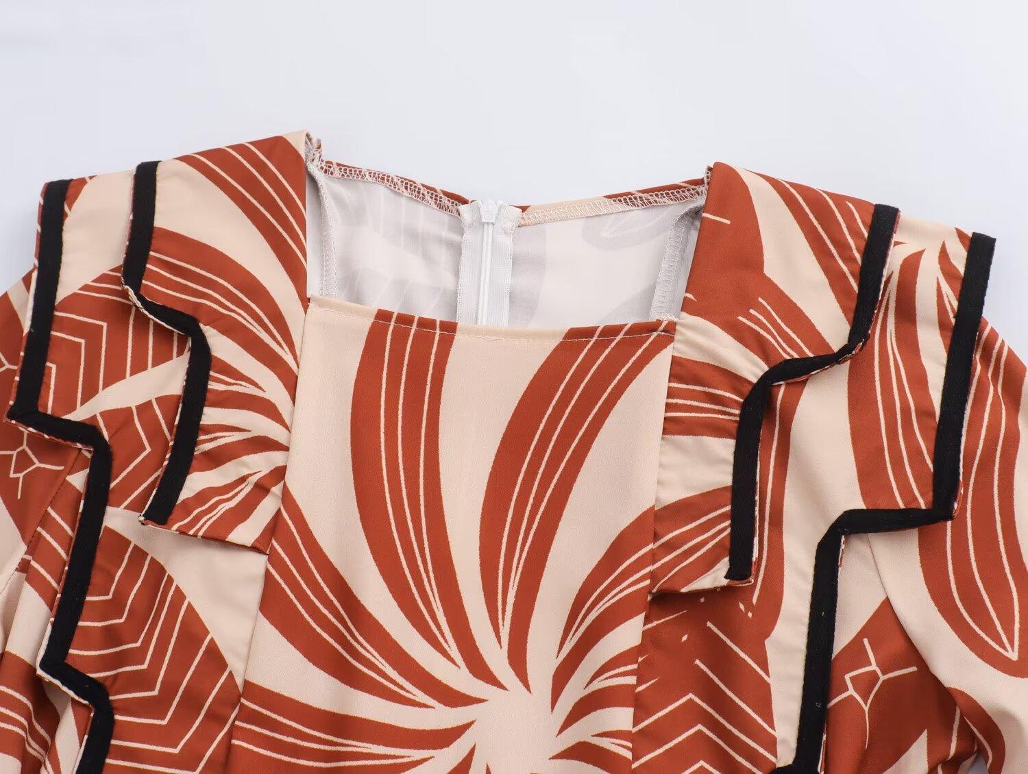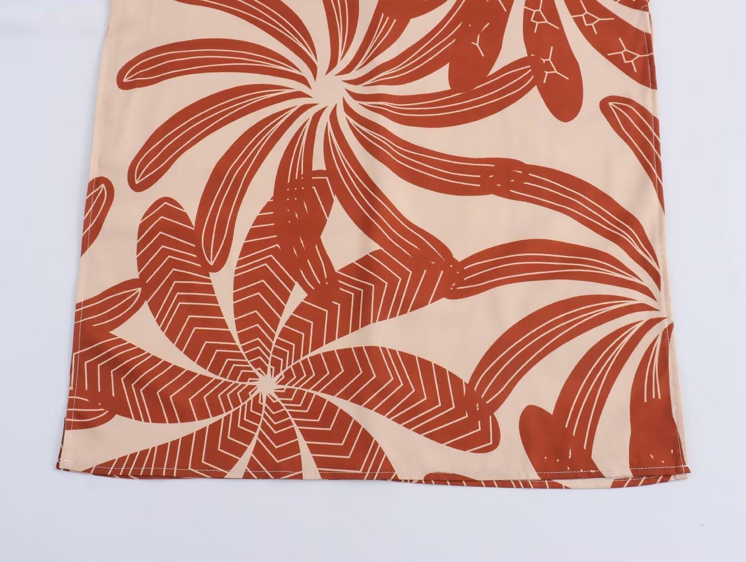 Atacado 2024 verão novo estilo europeu e americano vestido feminino com estampa localizada, gola quadrada e cintura com franjas