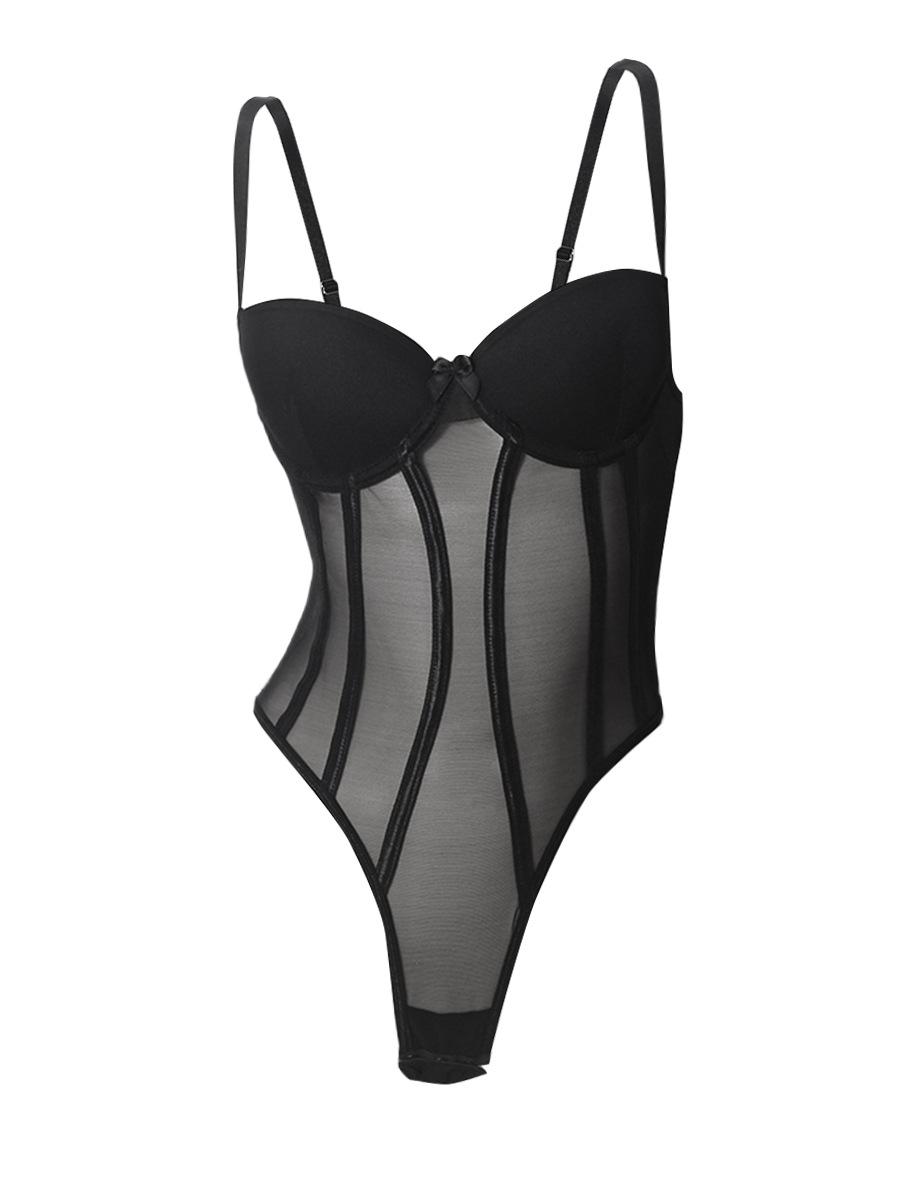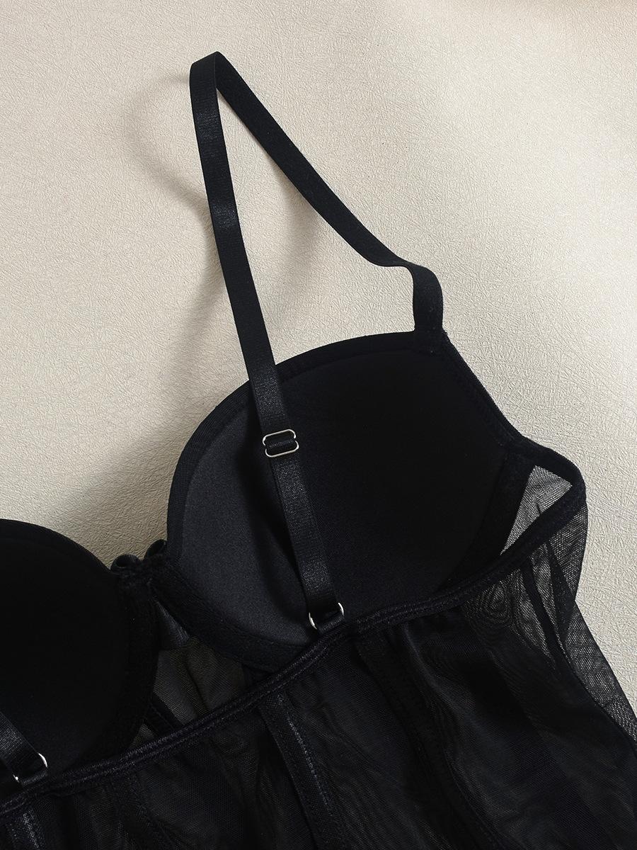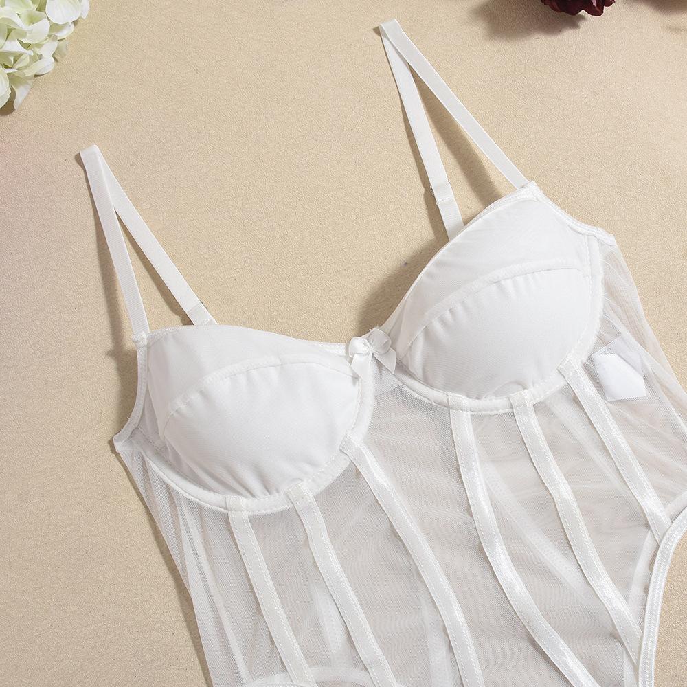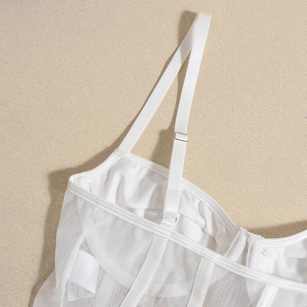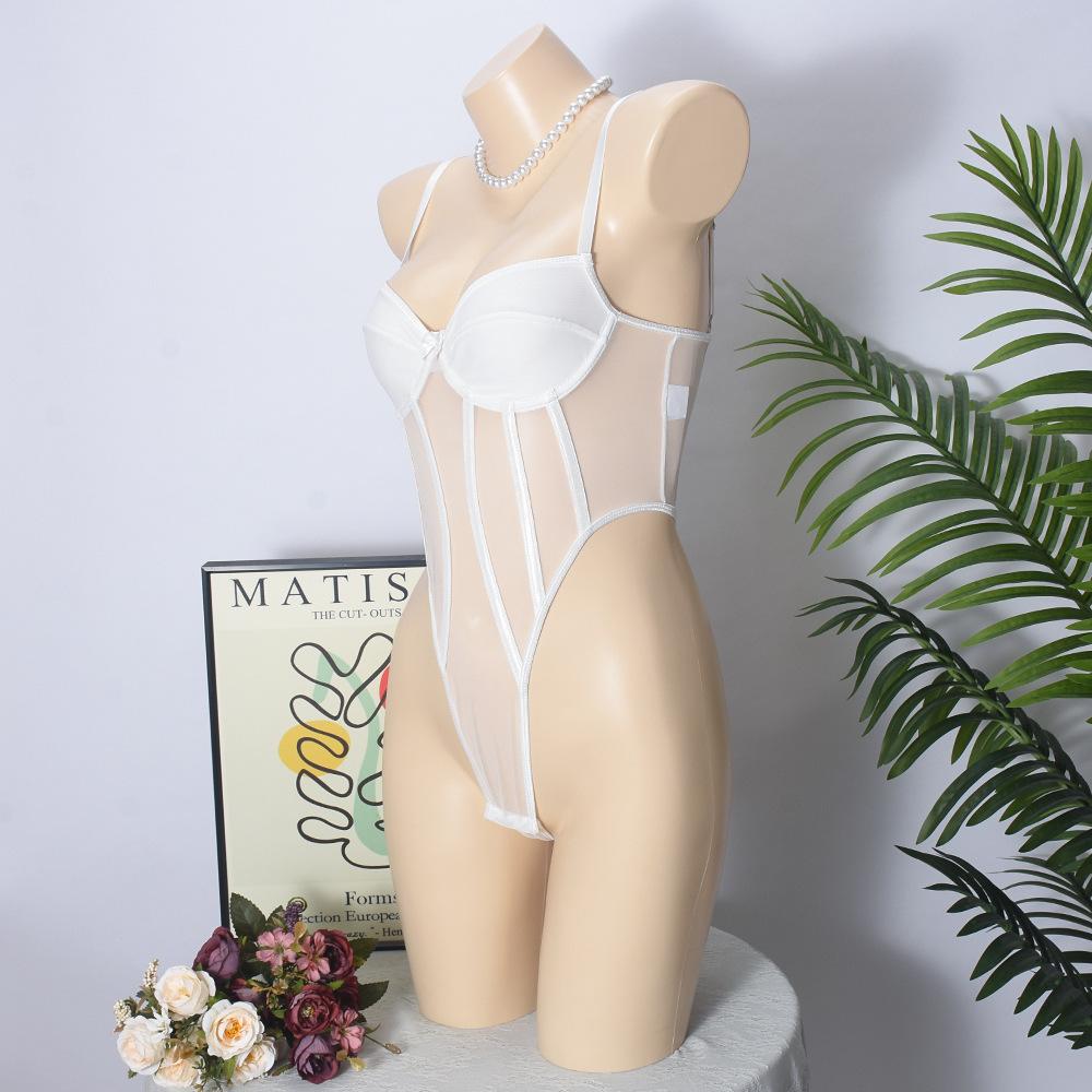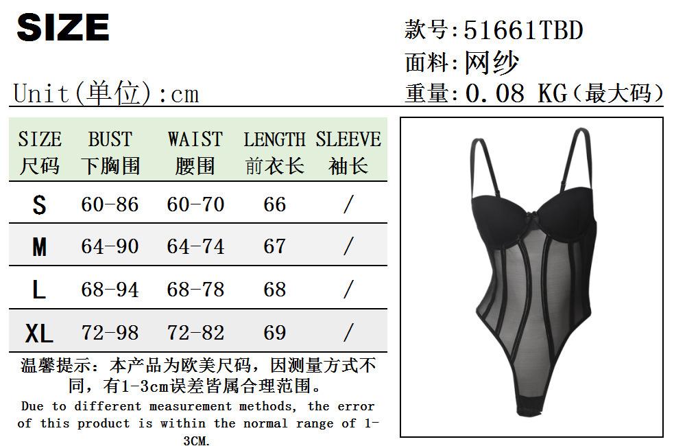 Macacão Suspensor Transfronteiriço Europeu e Americano Malha Fina Interno com Aro de Aço Elástico Slim Sexy Macacão Sexy