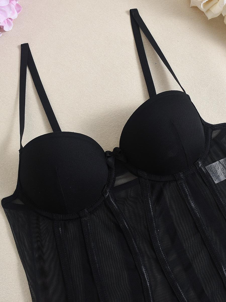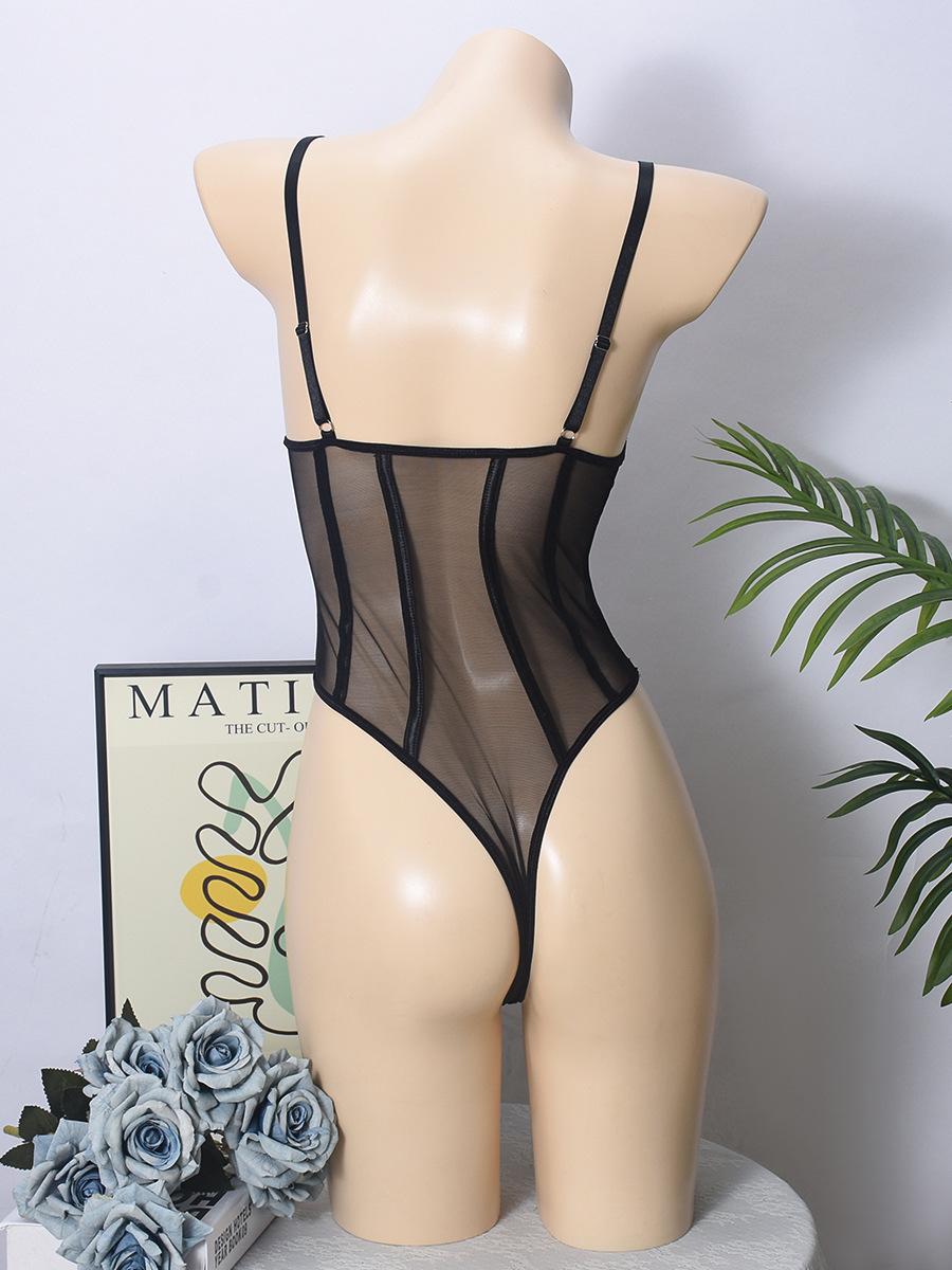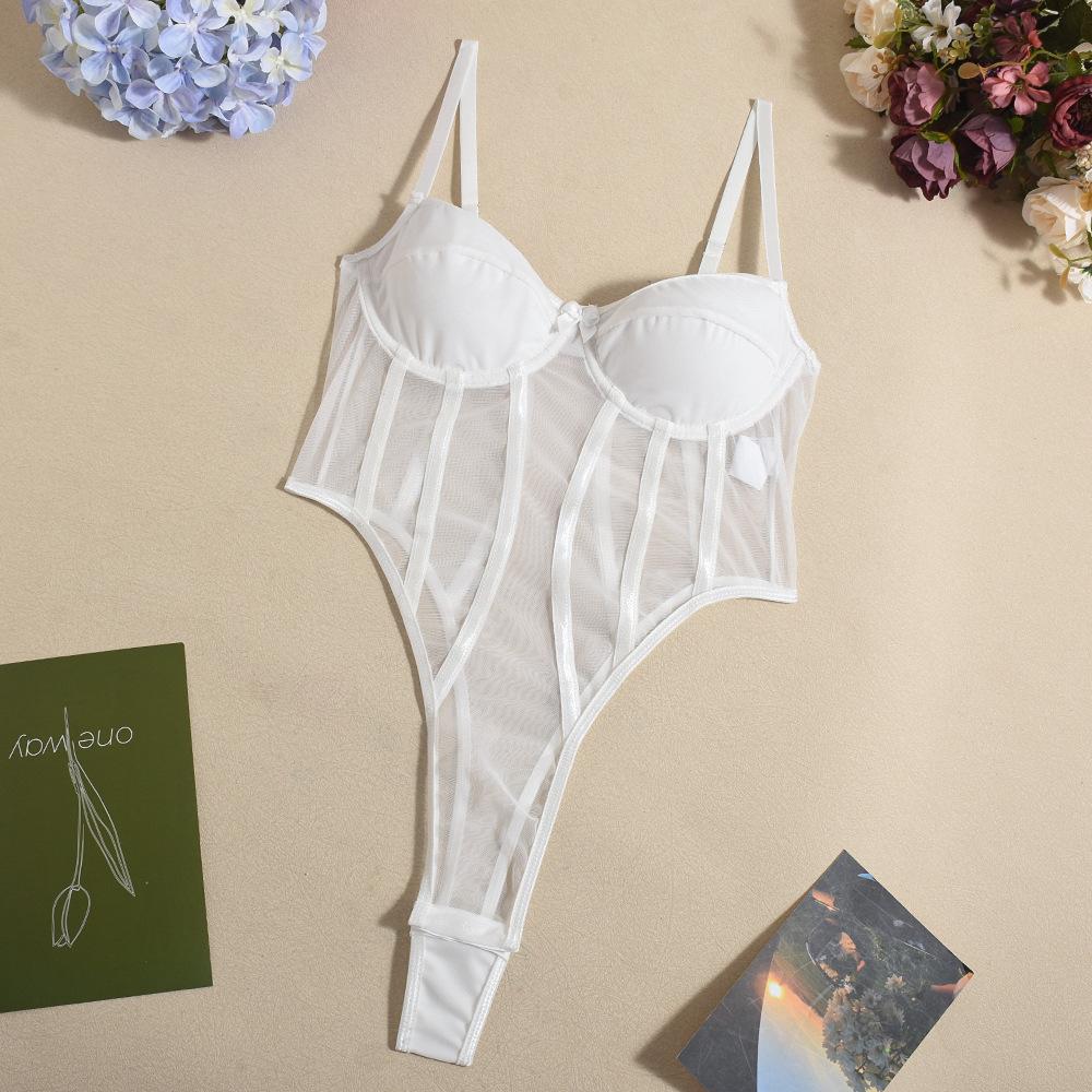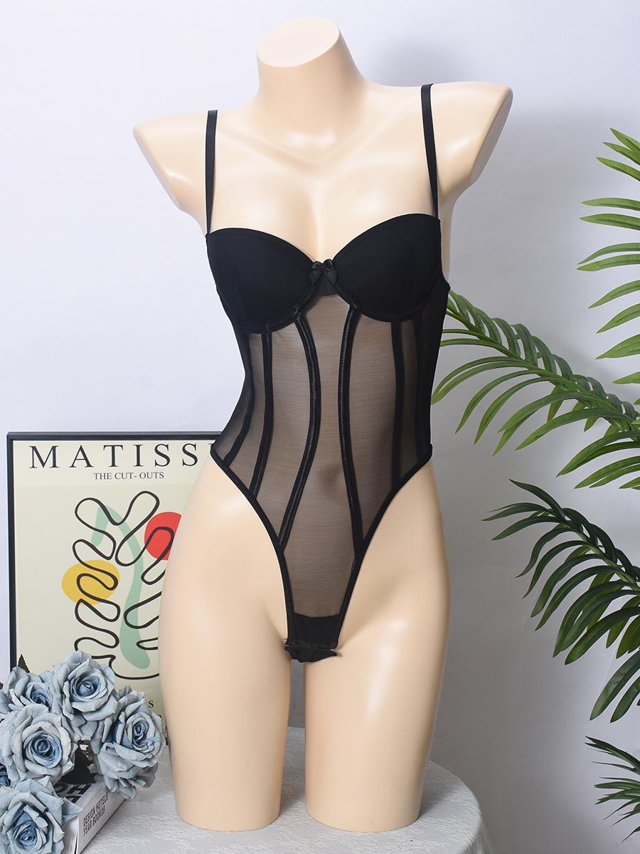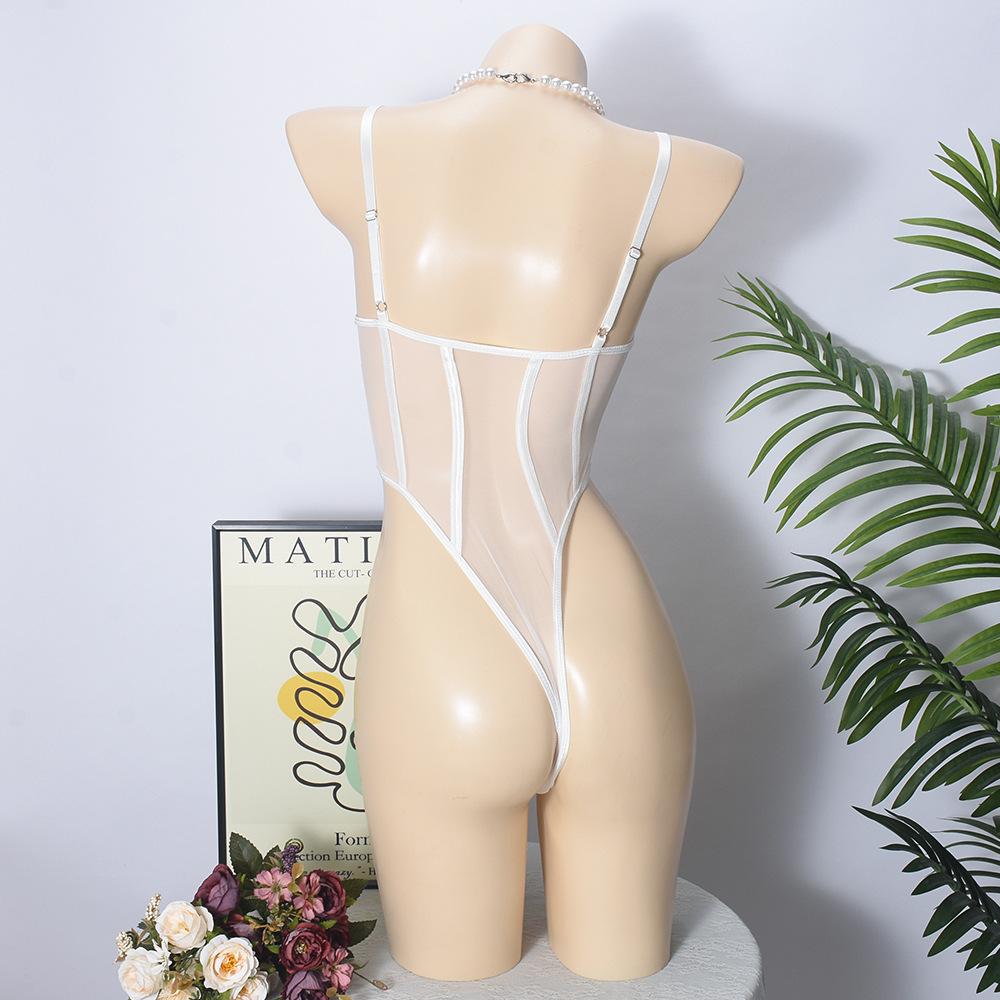 Macacão Suspensor Transfronteiriço Europeu e Americano Malha Fina Interno com Aro de Aço Elástico Slim Sexy Macacão Sexy