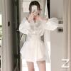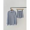 2025 nova camisa rosa de manga comprida com gola virada para baixo, temperamento versátil solto, conjunto camisa e shorts
