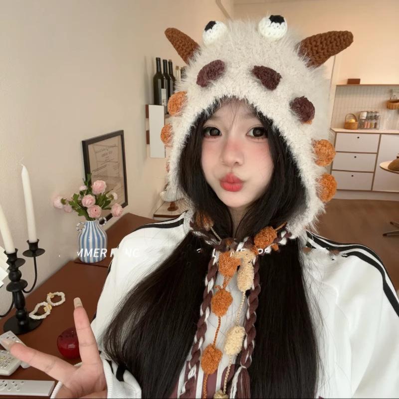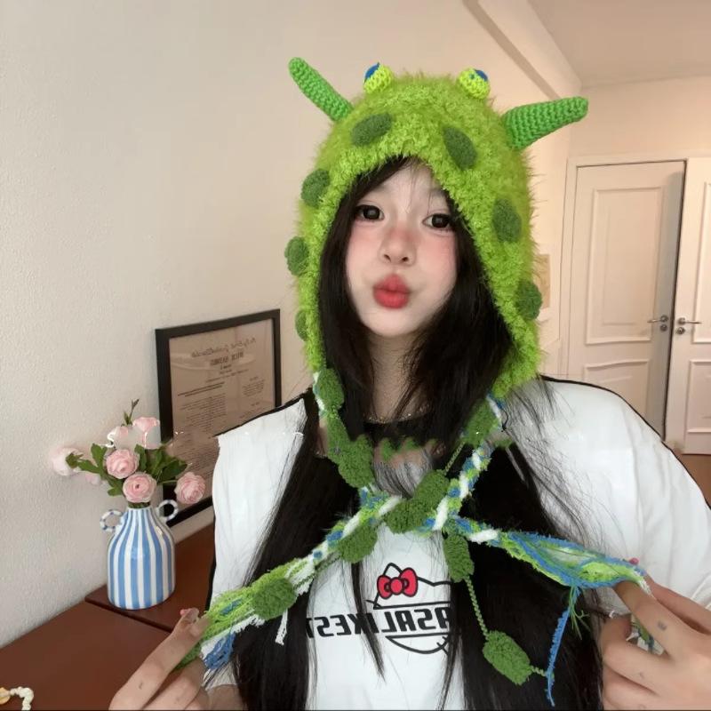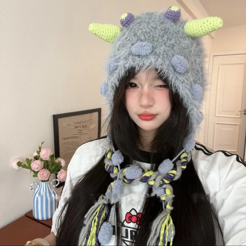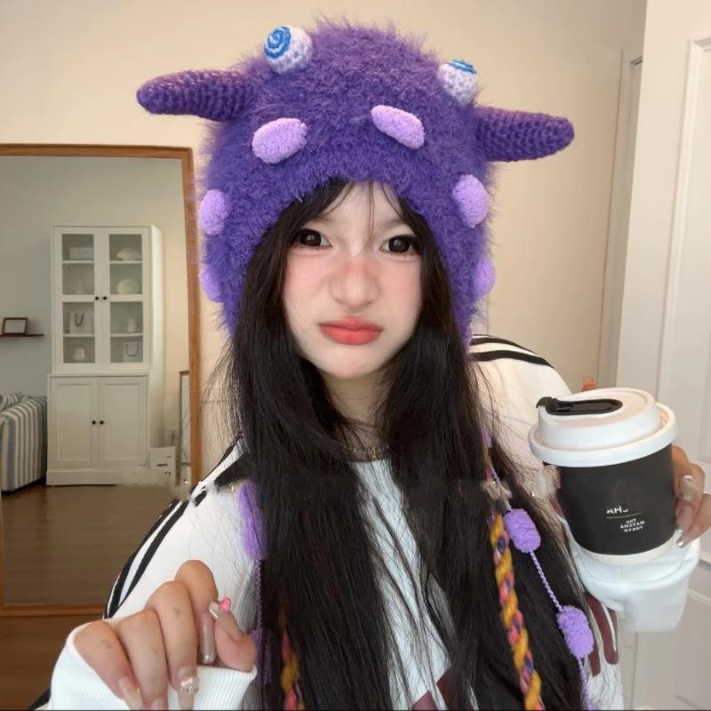 Outono e inverno doce monstro bonito feito à mão chapéu de malha infantil pelúcia desenho animado engraçado chapéu de lã quente proteção para orelhas
