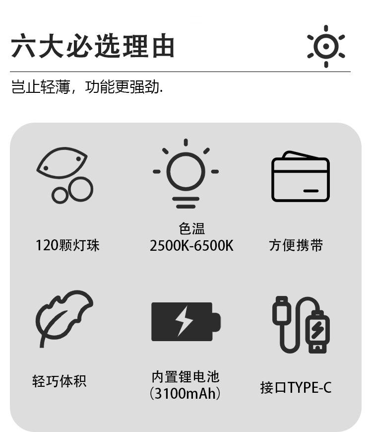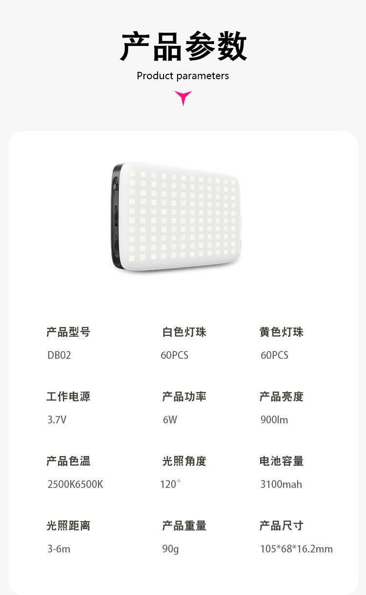 Db02-double color temperature pocket fill light [120 led lamp beads 3100mah large battery]