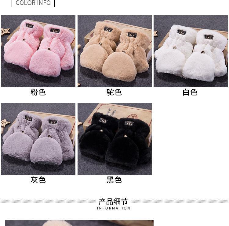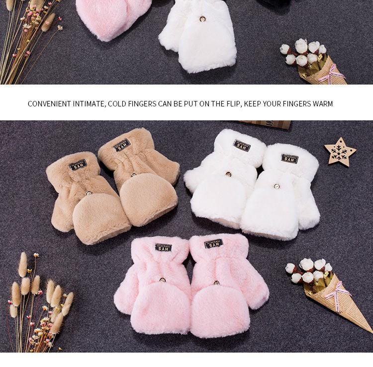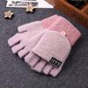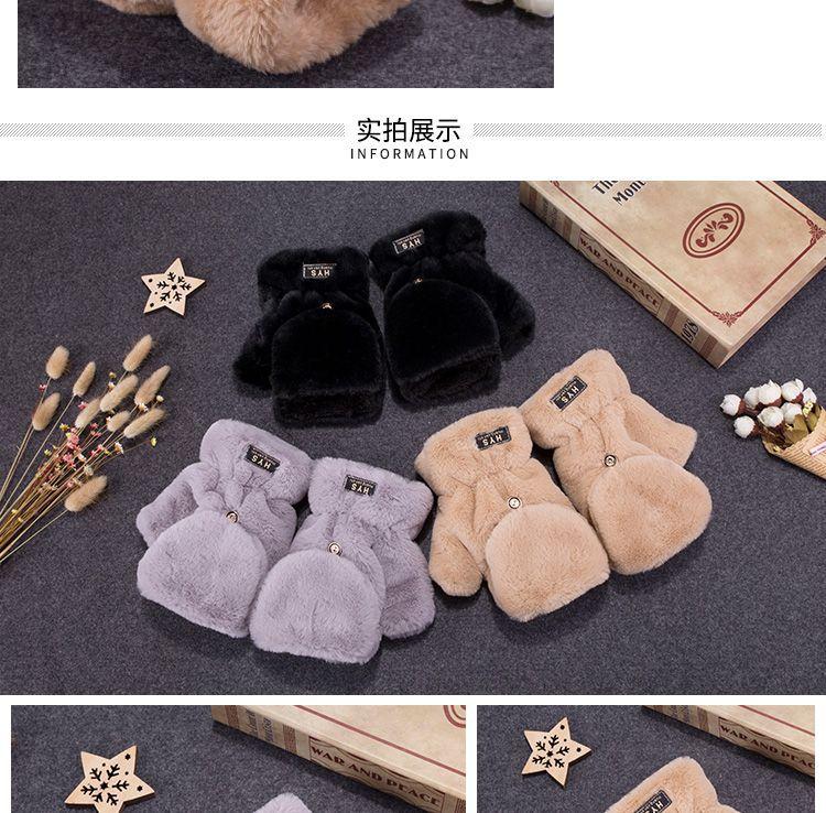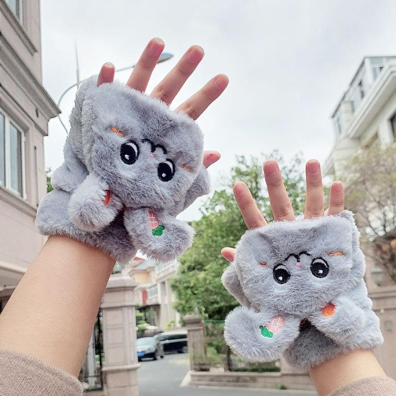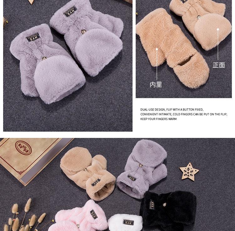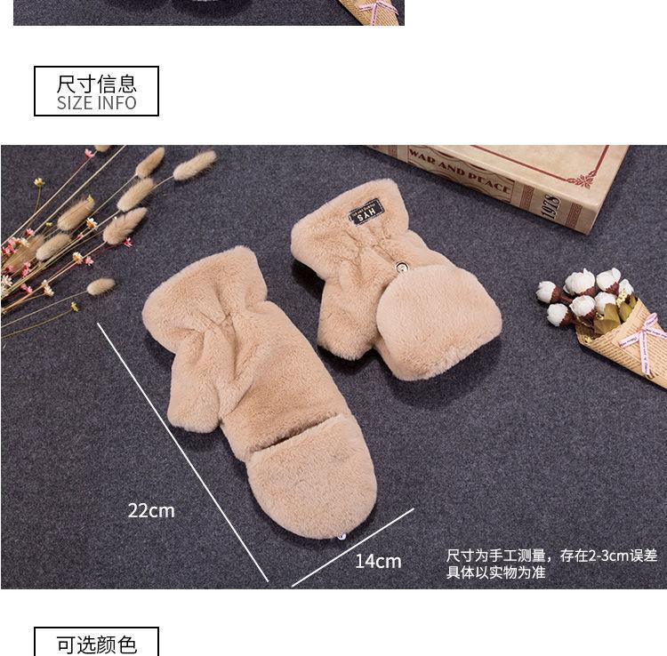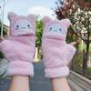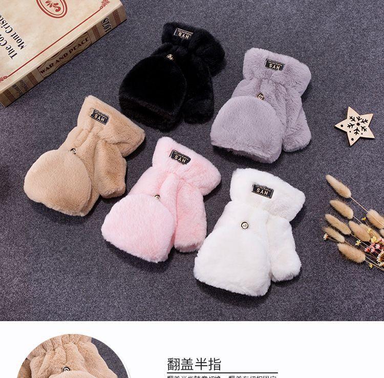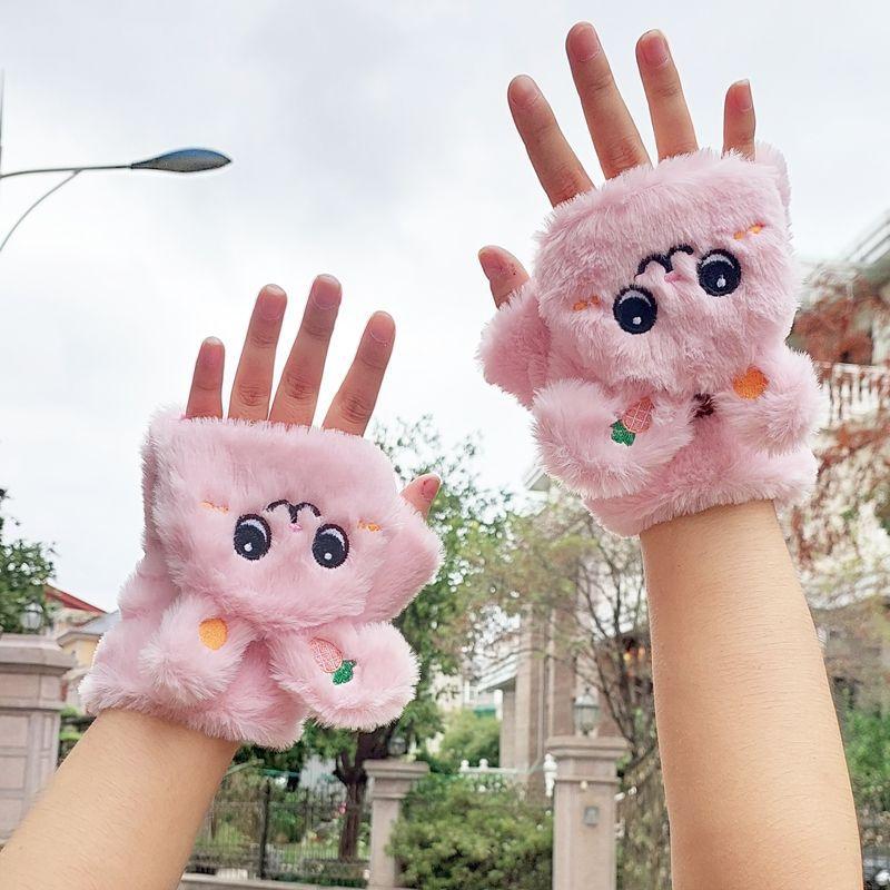 Quente Cor Pura Flip Pelúcia Luvas Femininas de Desenho Animado Espessas Sem Dedos Metade Fofa Estilo Coreano Estudante Camada Dupla Outono e Inverno