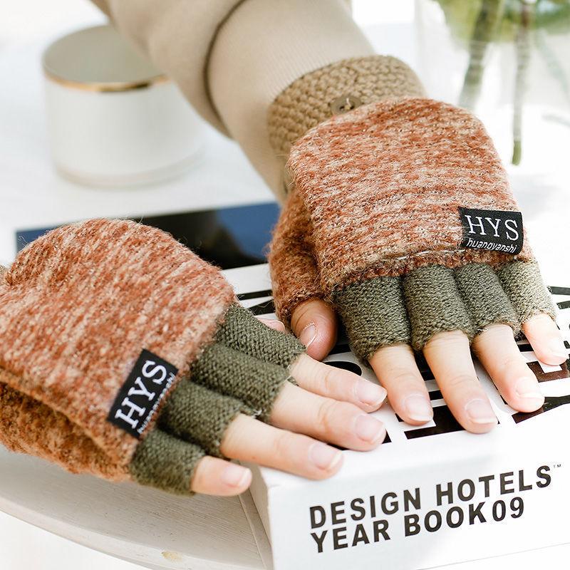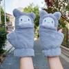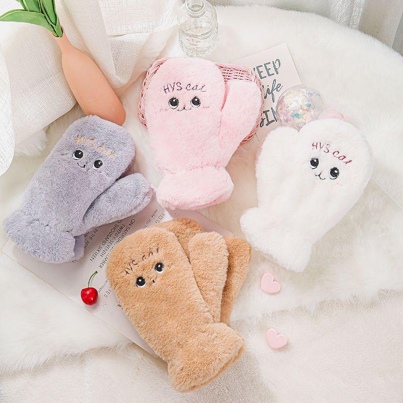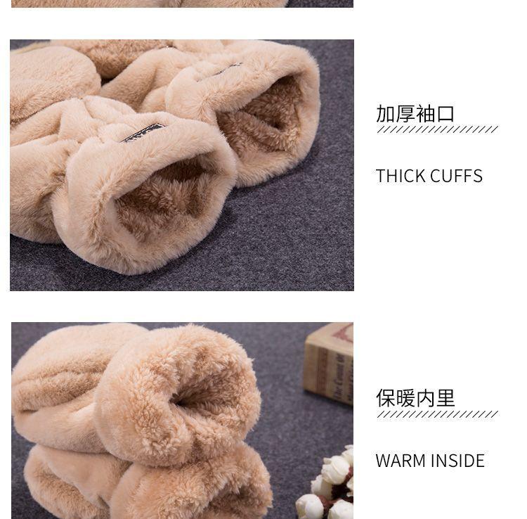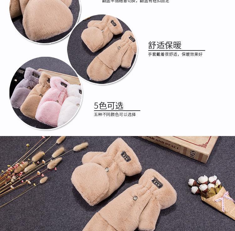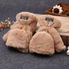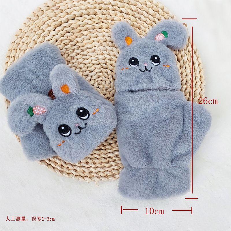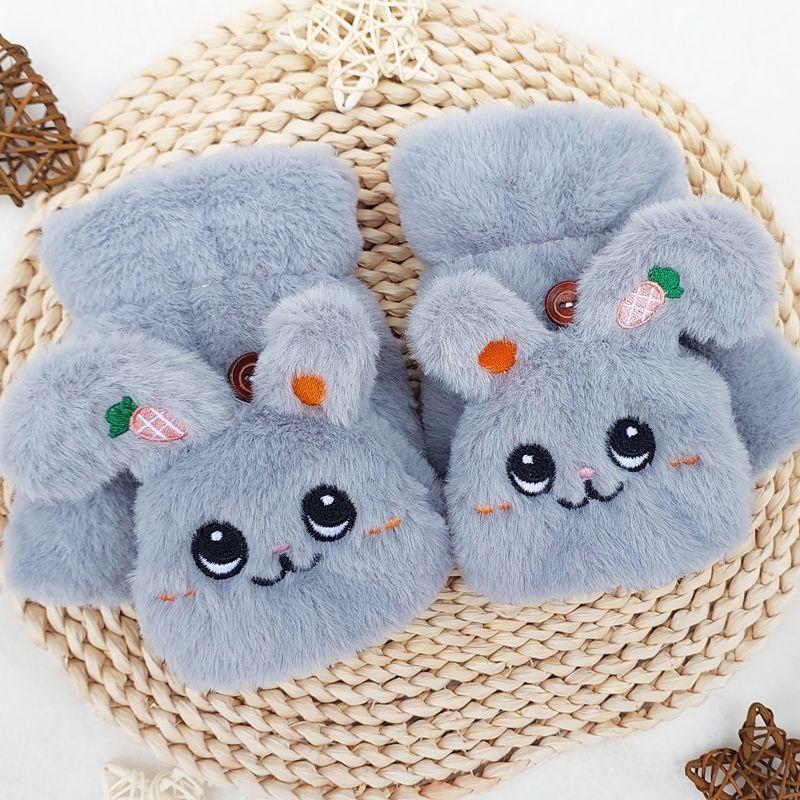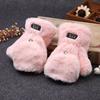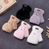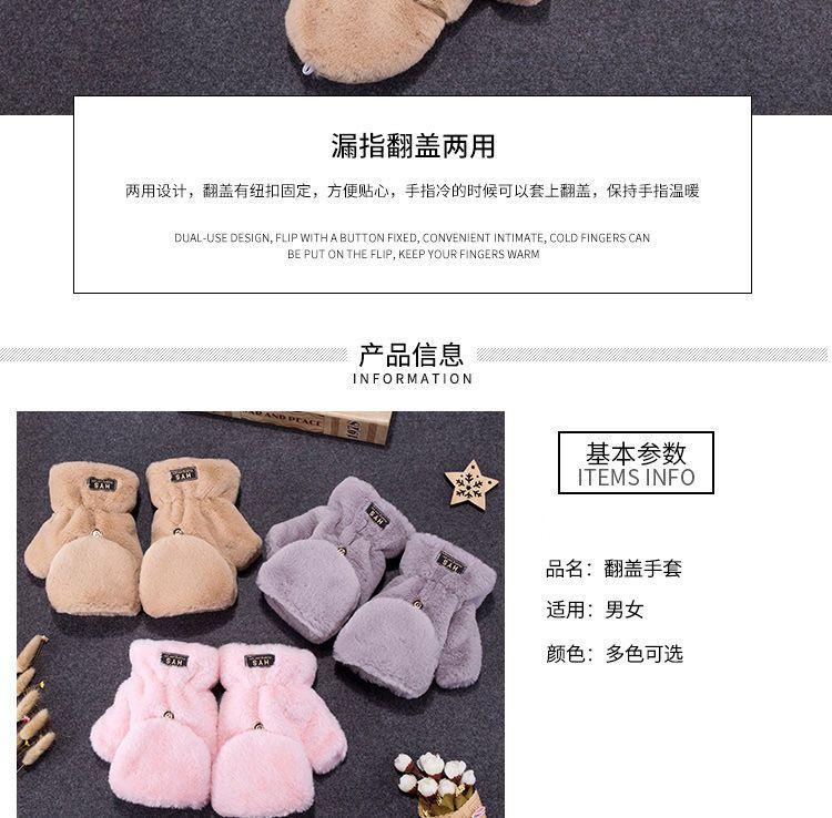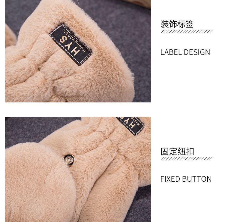 Quente Cor Pura Flip Pelúcia Luvas Femininas de Desenho Animado Espessas Sem Dedos Metade Fofa Estilo Coreano Estudante Camada Dupla Outono e Inverno