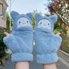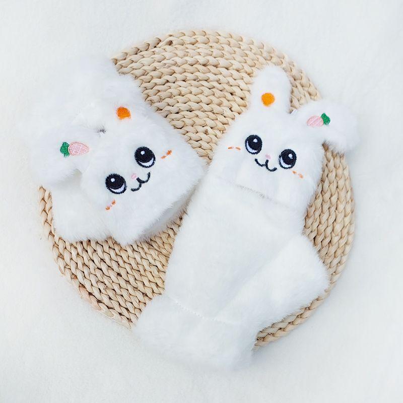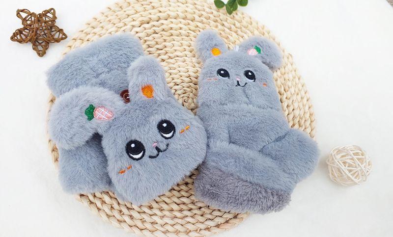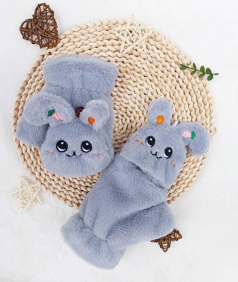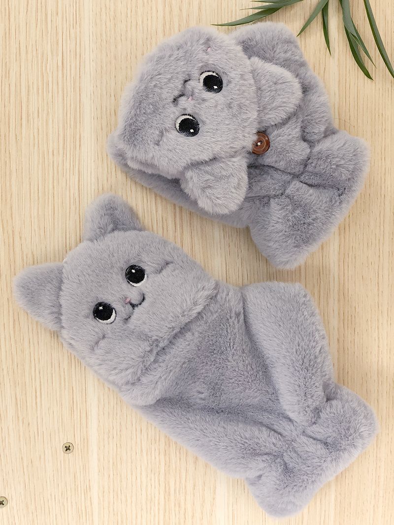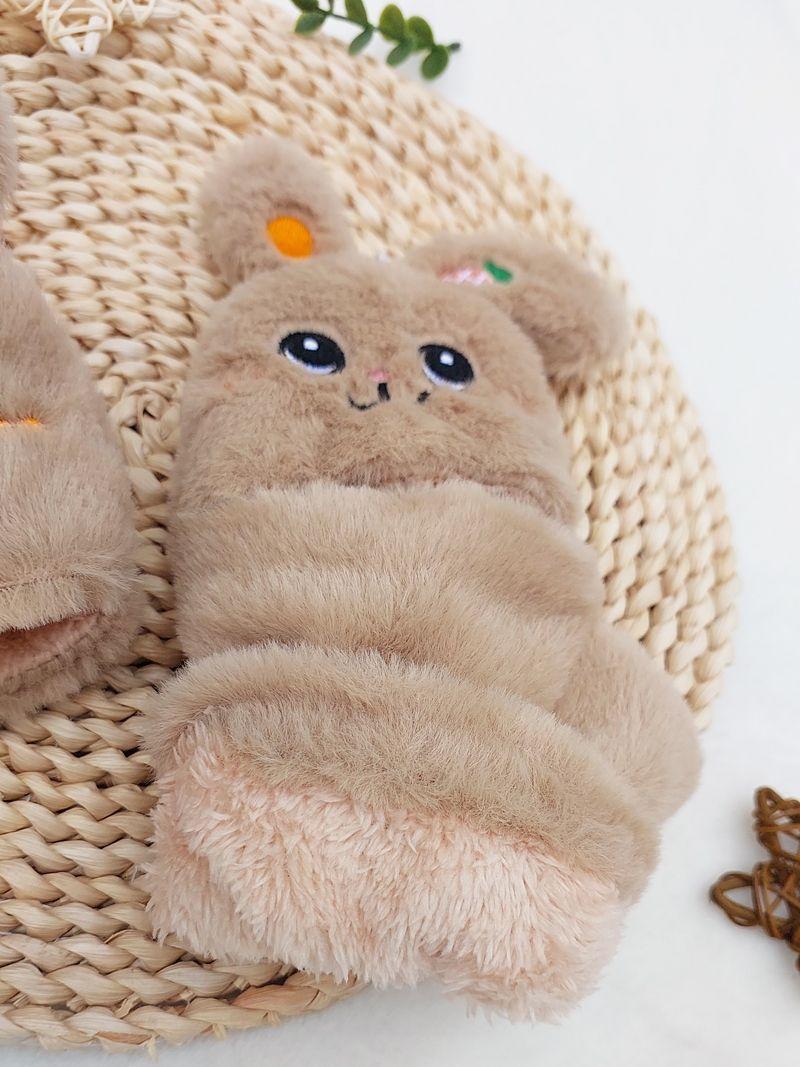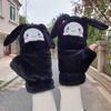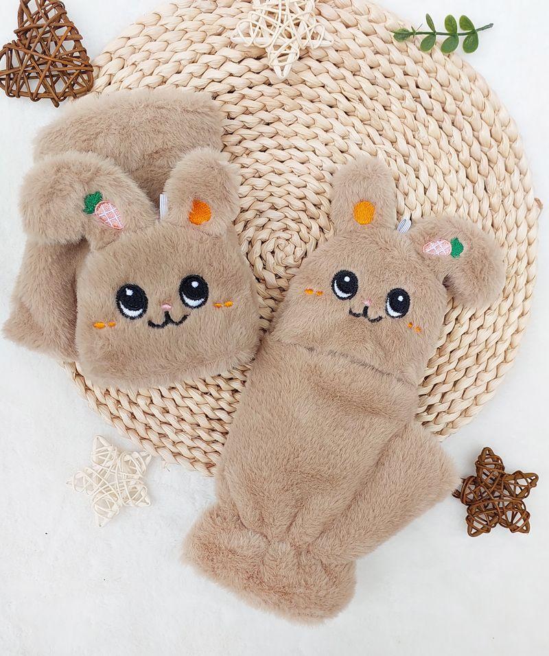 Quente Cor Pura Flip Pelúcia Luvas Femininas de Desenho Animado Espessas Sem Dedos Metade Fofa Estilo Coreano Estudante Camada Dupla Outono e Inverno