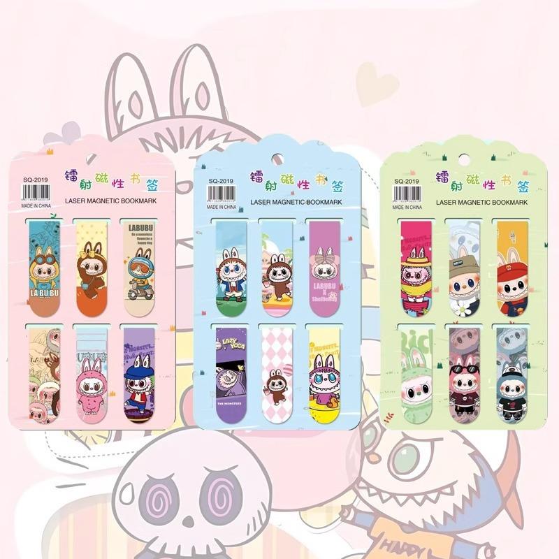 Marcador Magnético Labubu Desenho Animado Fofo Labubu Criativo Ímã Dupla Face Clipe de Página de Livro Estudante Papelaria Exquisita