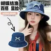 Chapéu de pescador bordado com laço estilo coreano para mulheres, chapéu bucket de denim para viagem, proteção solar, quebra-sol, moda, chapéu novo de verão
