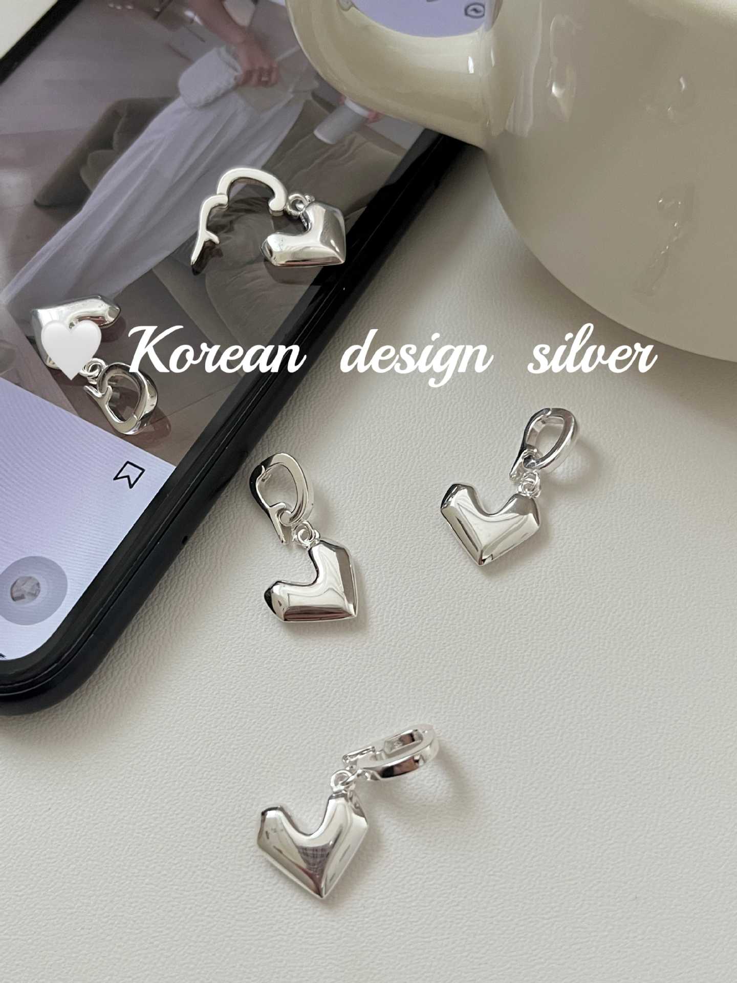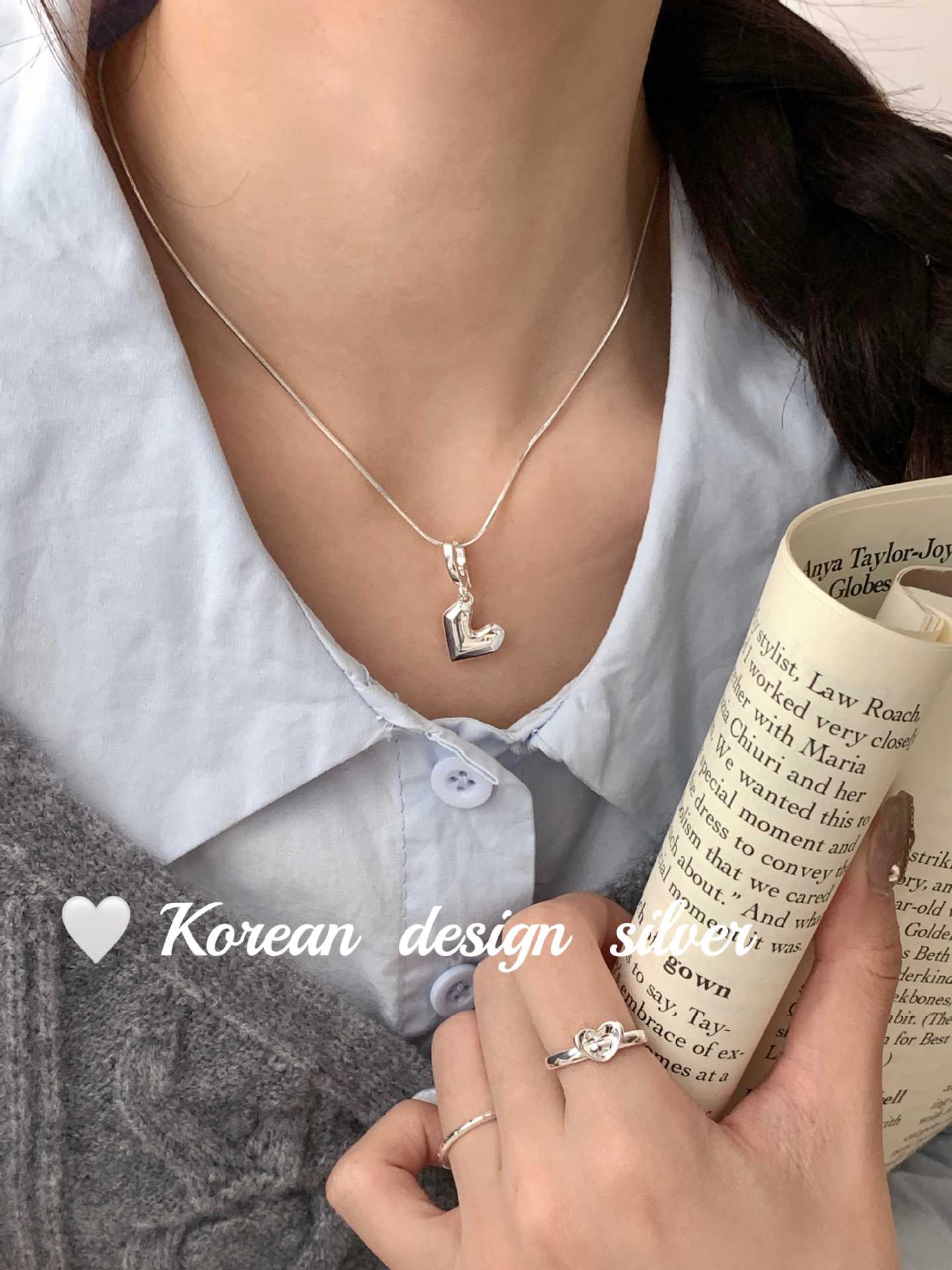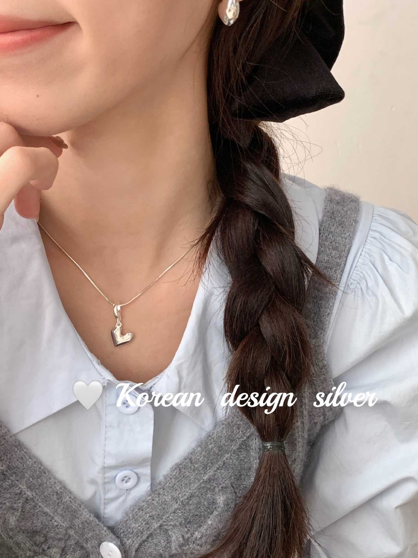 Jóias Coreanas Ins Nicho Simples Prata Brilhante Prata de Lei S925 Pingente Coração Pesado Nicho Feminino Versátil de Alta Qualidade