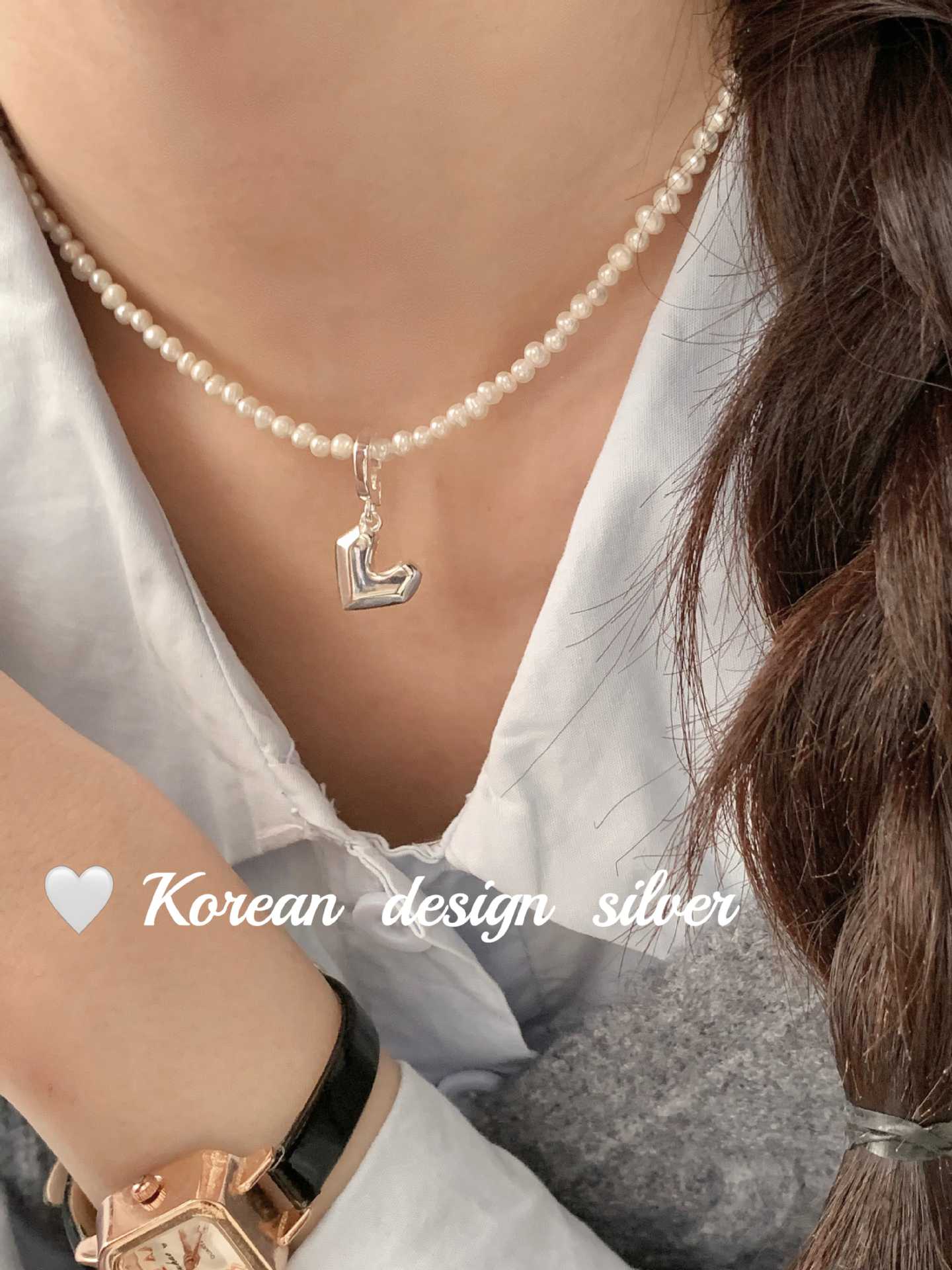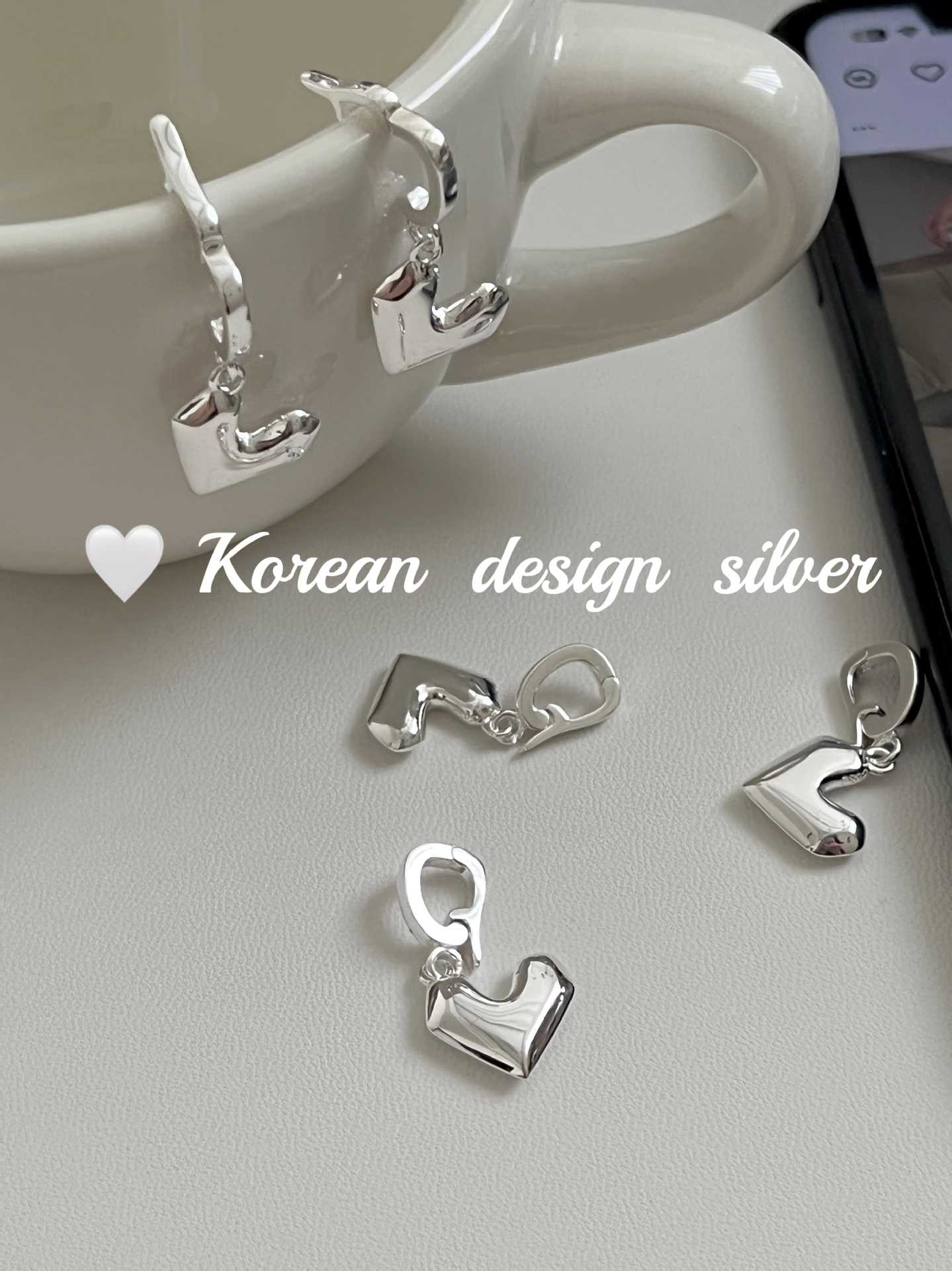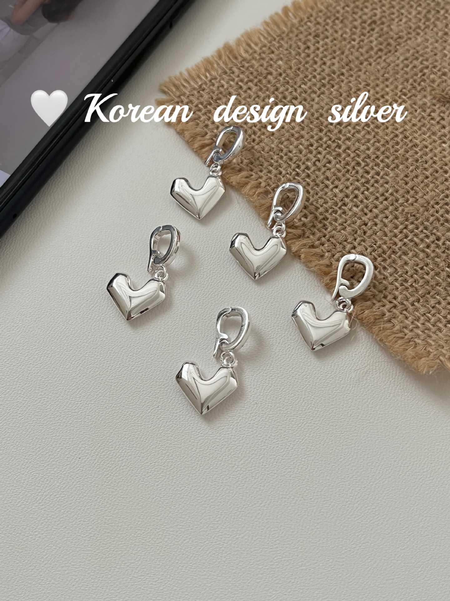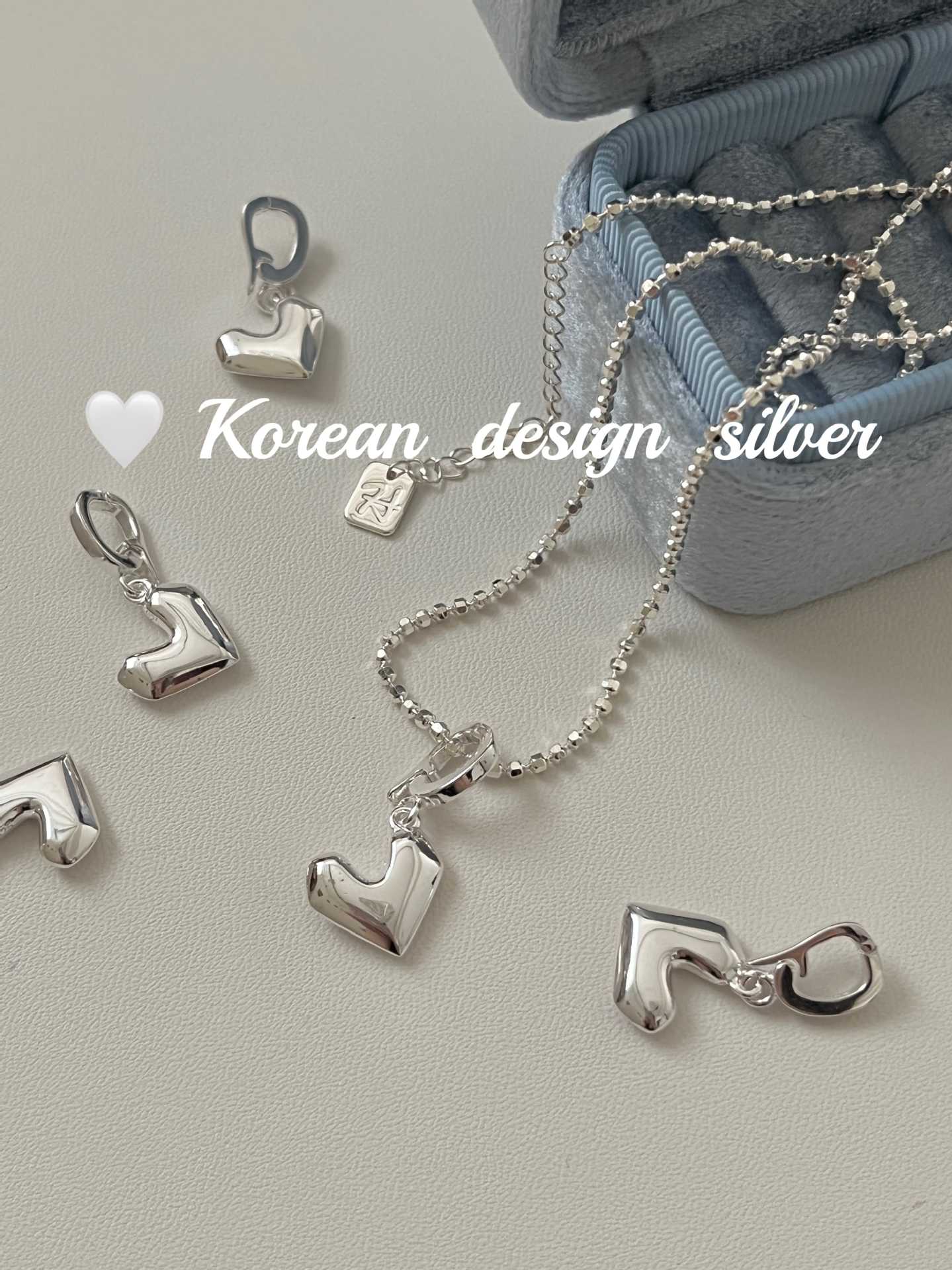Jóias Coreanas Ins Nicho Simples Prata Brilhante Prata de Lei S925 Pingente Coração Pesado Nicho Feminino Versátil de Alta Qualidade