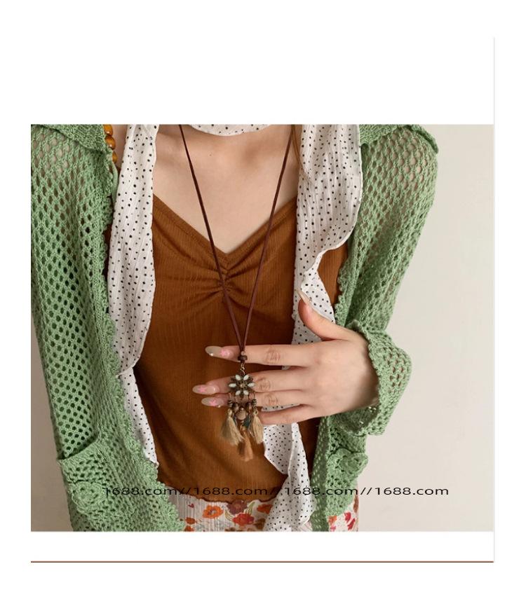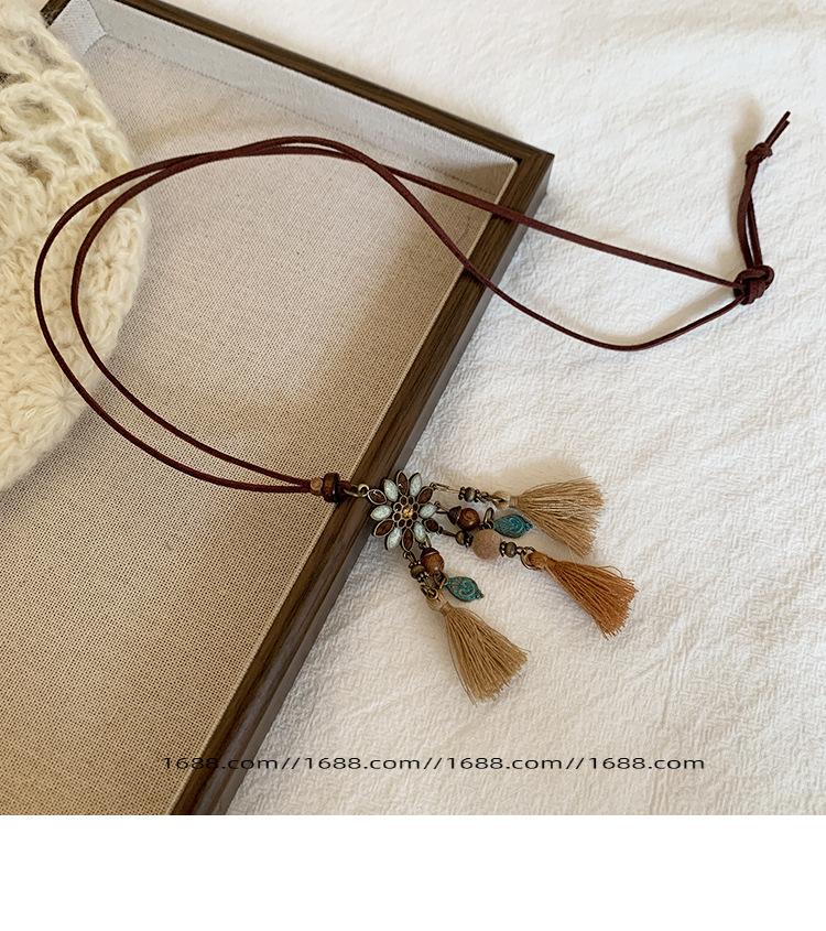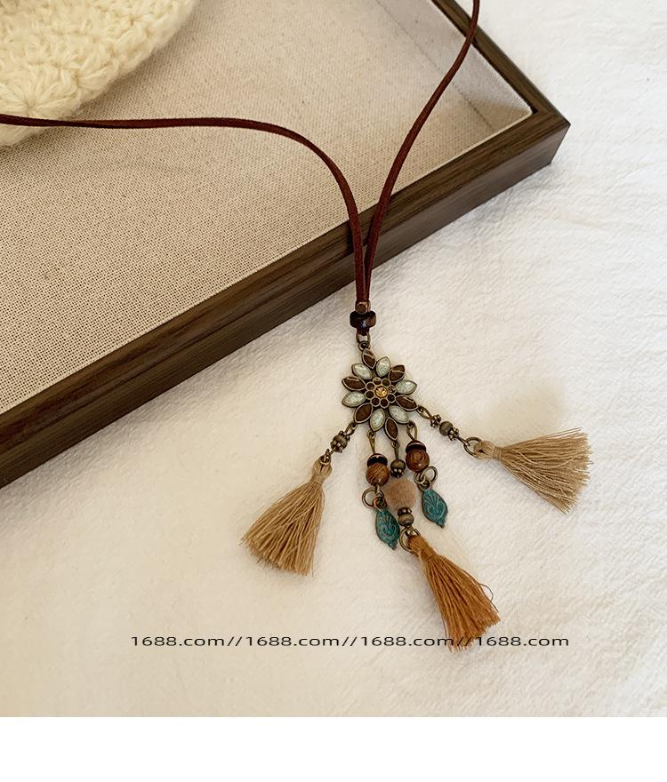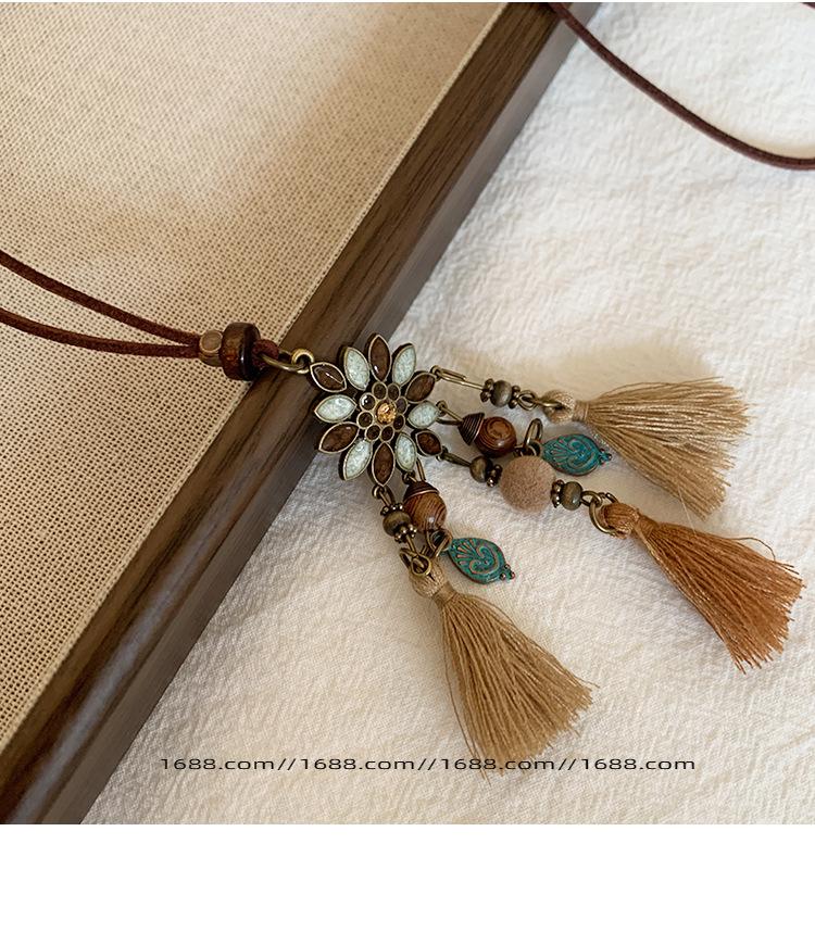 Colar Retrô Boêmio de Borla de Flor Mulheres Novo Estilo Chinês Pingente Longo Corrente de Suéter Estilo Étnico Acessórios de Pendurar no Pescoço