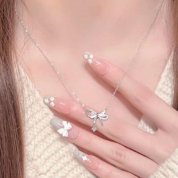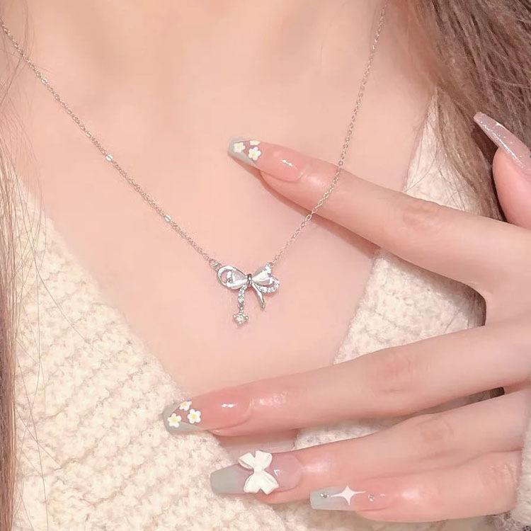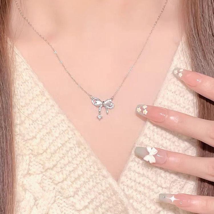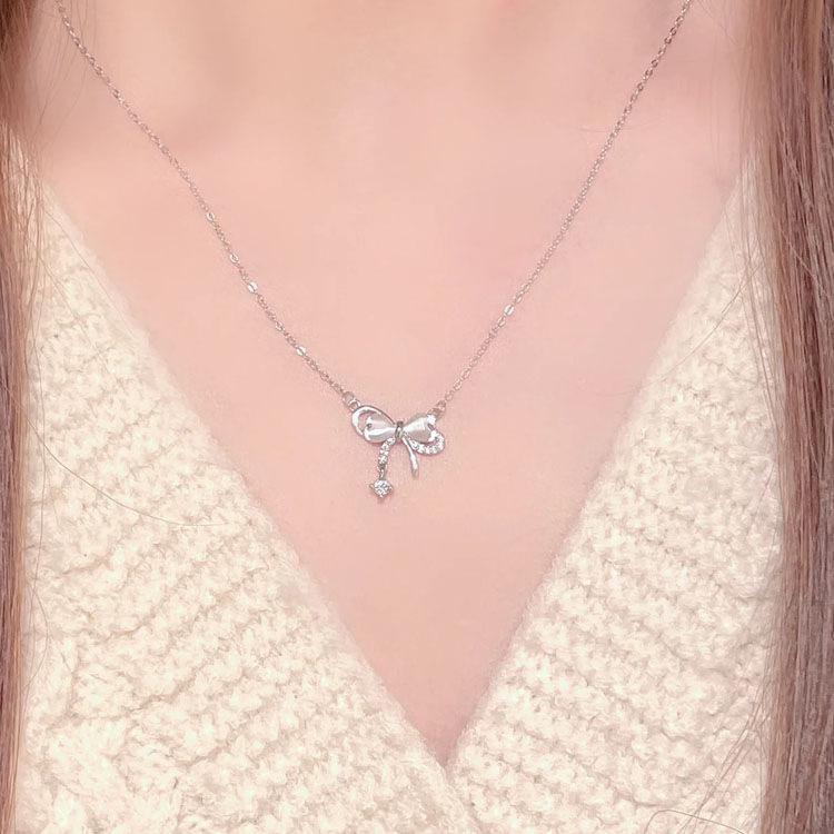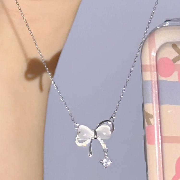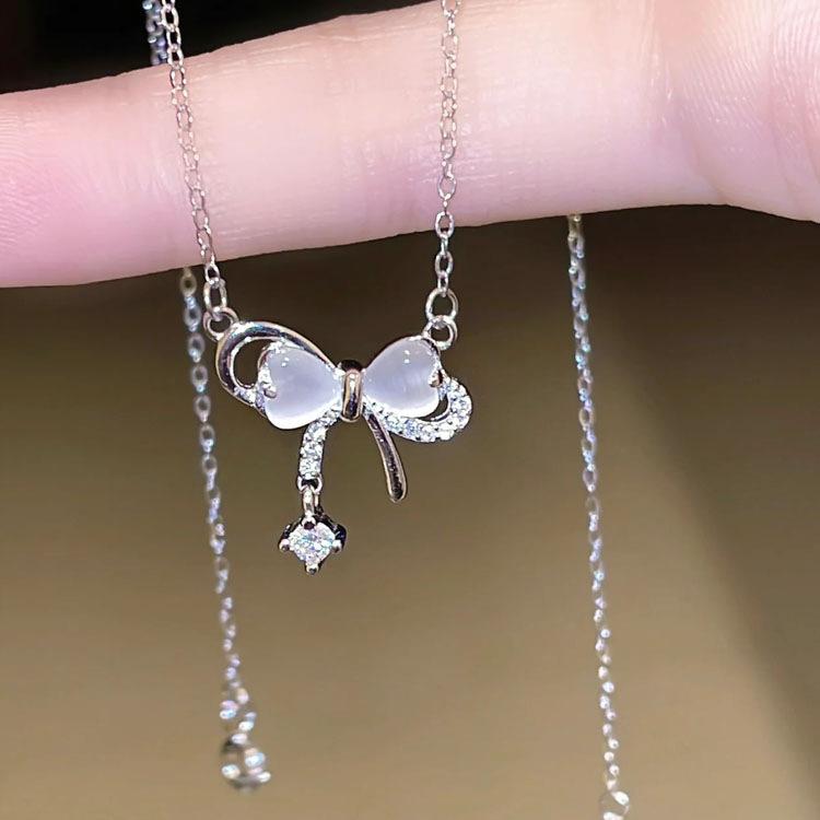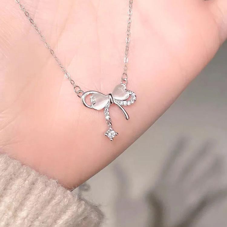 Colar de arco de opala 2024 Nova entrada de moda de luxo Sweet Heart Pingente de clavícula Cadeia Presente de feriado