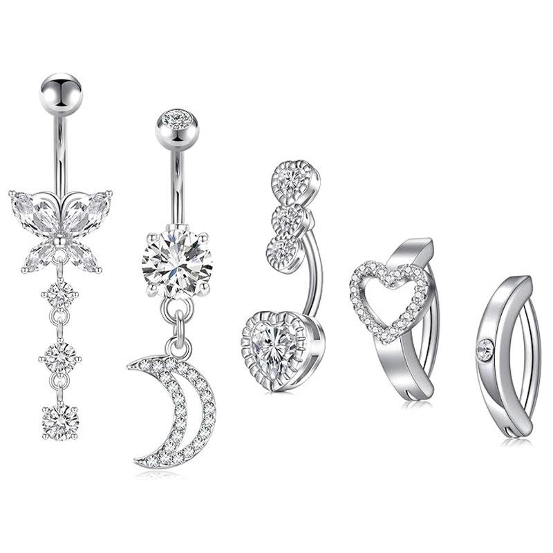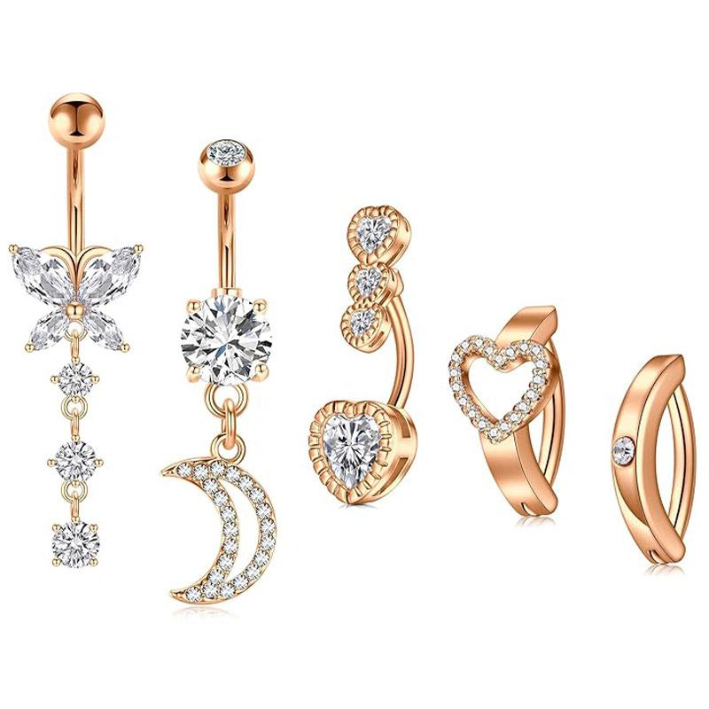 Piercing de Umbigo de Zircônia Transfronteiriço Conjunto de Joias de Umbigo de Zircônia Borboleta Conjunto Europeu e Americano de Cinco Peças Piercing de Coração Anel de Umbigo