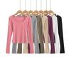Estilo Outono 2025 Pura e Sexy Garota Quente Decote V Profundo Abotoada Manga Longa Camiseta Mulher Corpo de Papel Listrada Manga Longa Top Emagrecedor