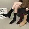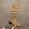 Bico Fino Salto Alto Cáqui Botas Cano Alto Justas Femininas Sapatos 2025 Verão Vintage Botas Largas Botas Cavaleiro Cano Médio