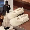 Sapatos peludos franceses para mulheres usarem ao ar livre outono e inverno 2025 novos mocassins Mary Jane de pelúcia de veludo de um passo sapatos de algodão
