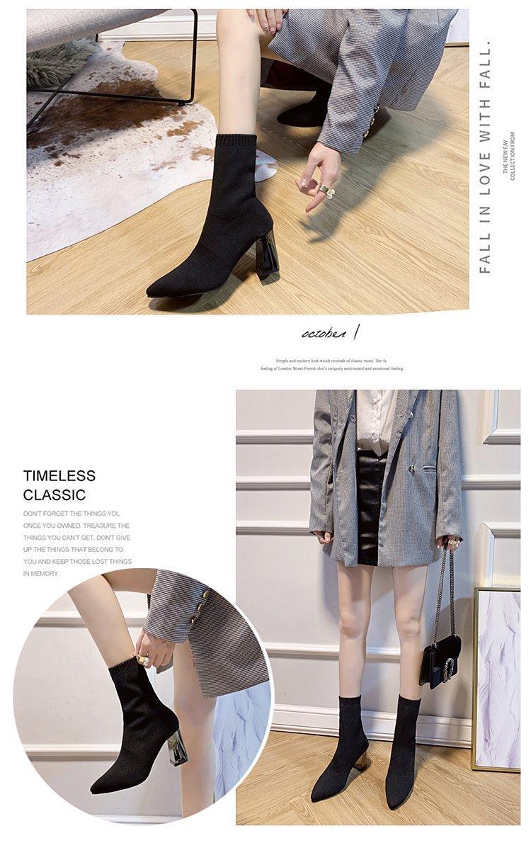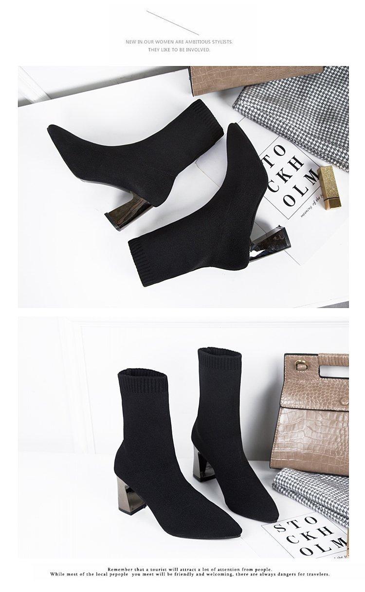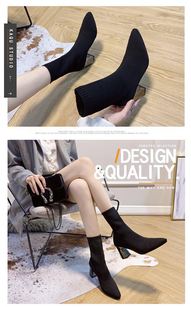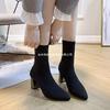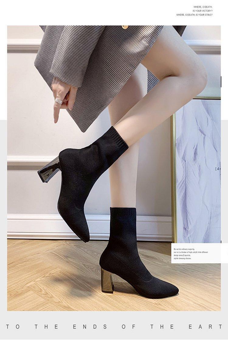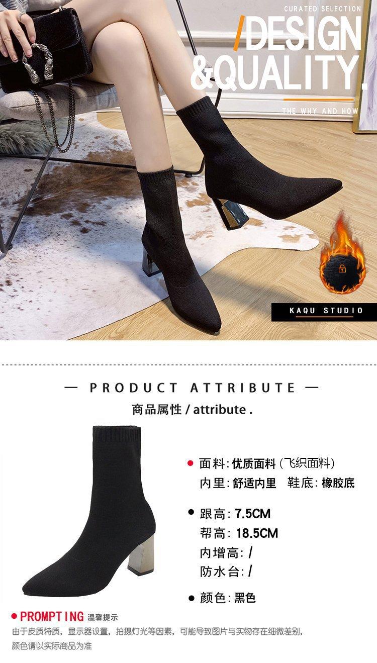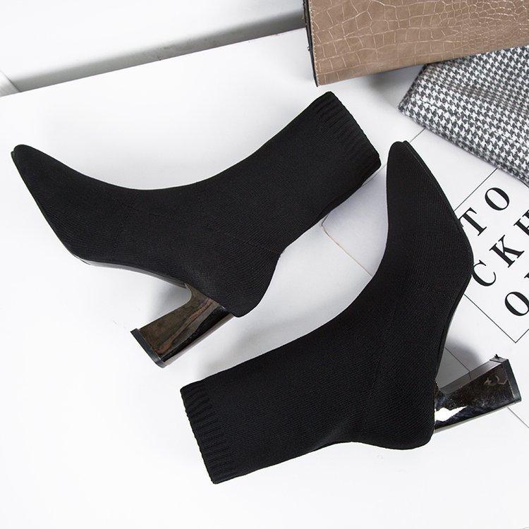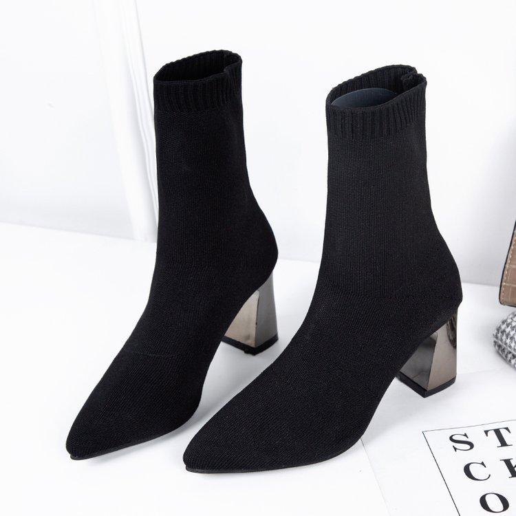 Comércio Exterior Transfronteiriço Europeu e Americano Outono e Inverno Salto Grosso Fly-knit Novo Estilo Botas Botas de Salto Alto desejo Moda Botas Curtas Através de Atacado Tamanho Plus