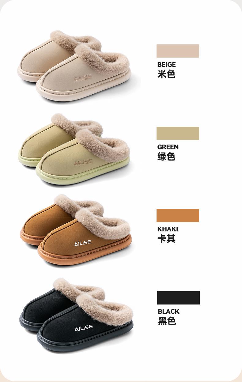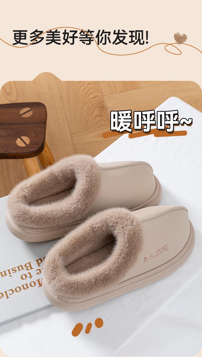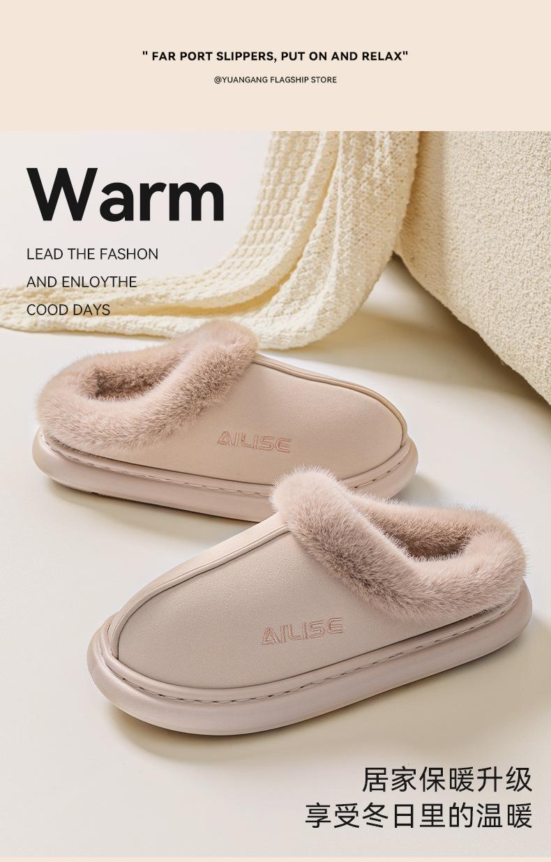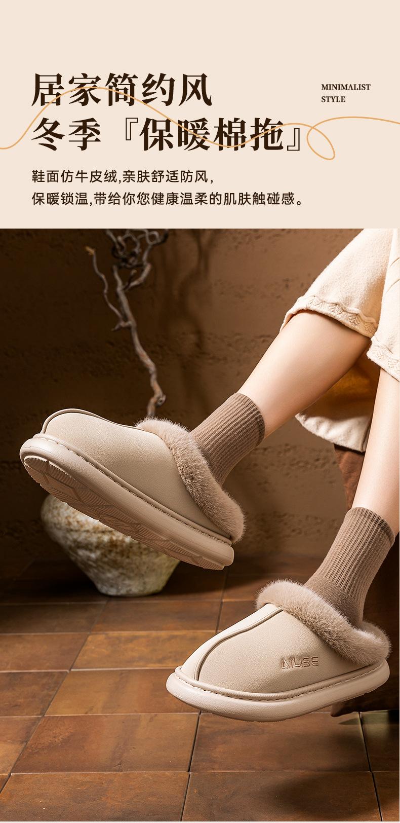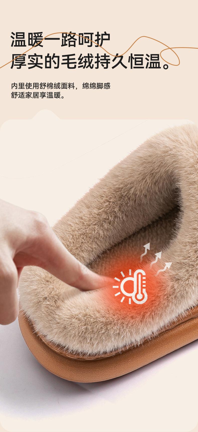Chinelo de Algodão Feminino de Outono e Inverno 2025 Novo Estilo Interior Casa Pelúcia Quente Sola Grossa Antiderrapante Inverno Mulher