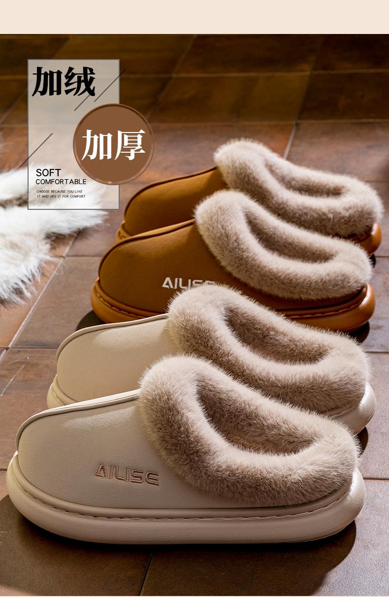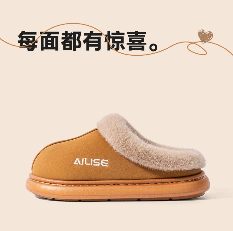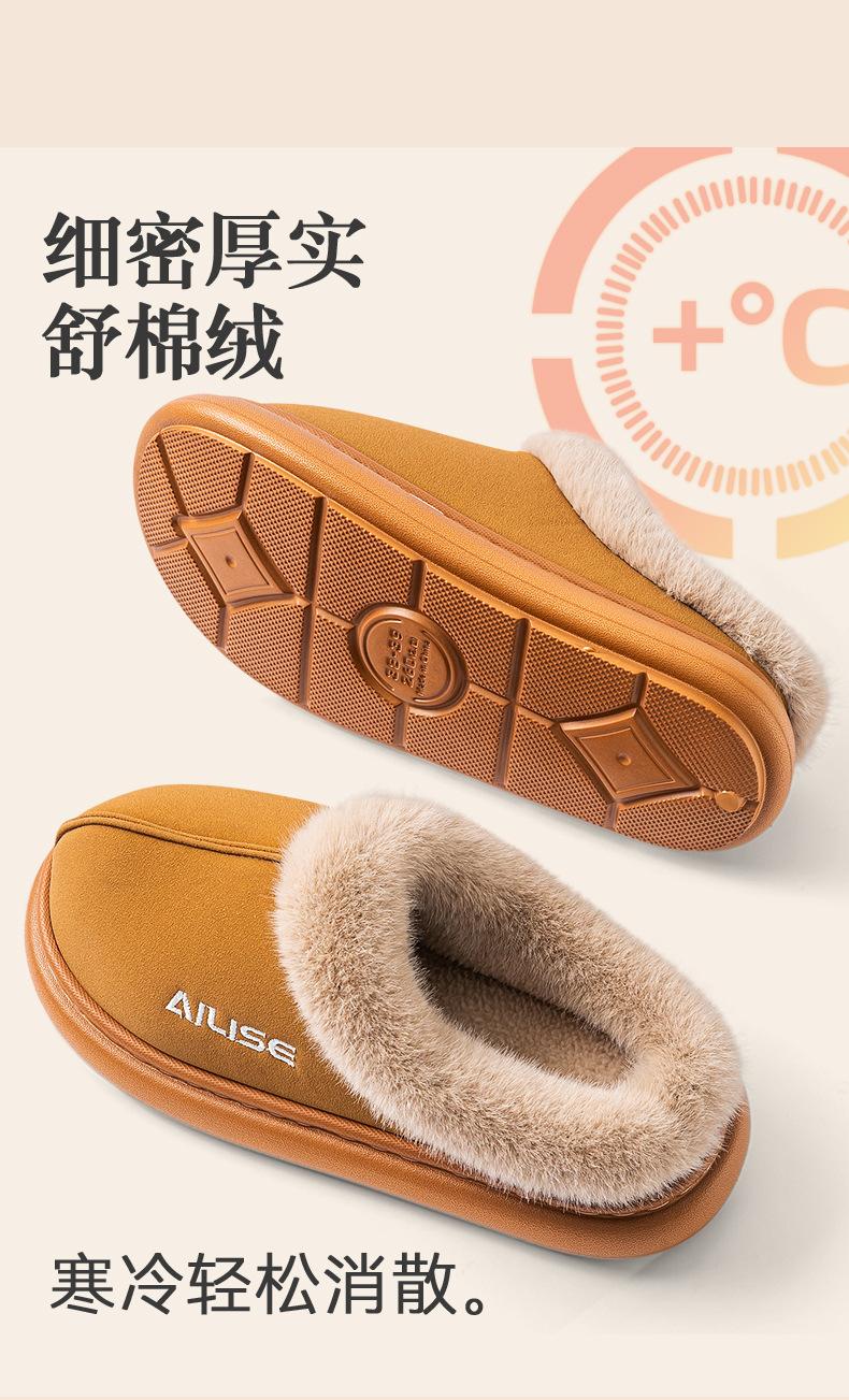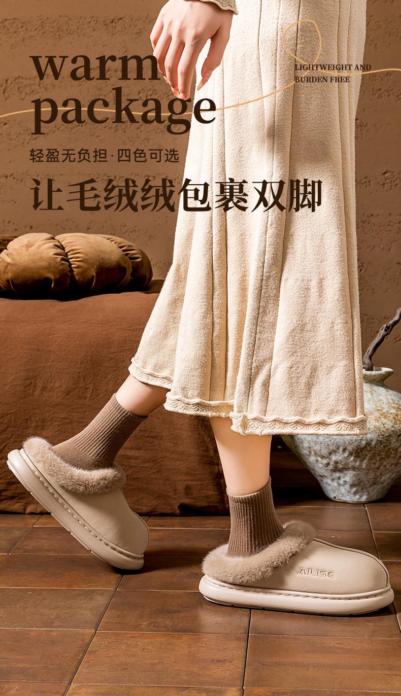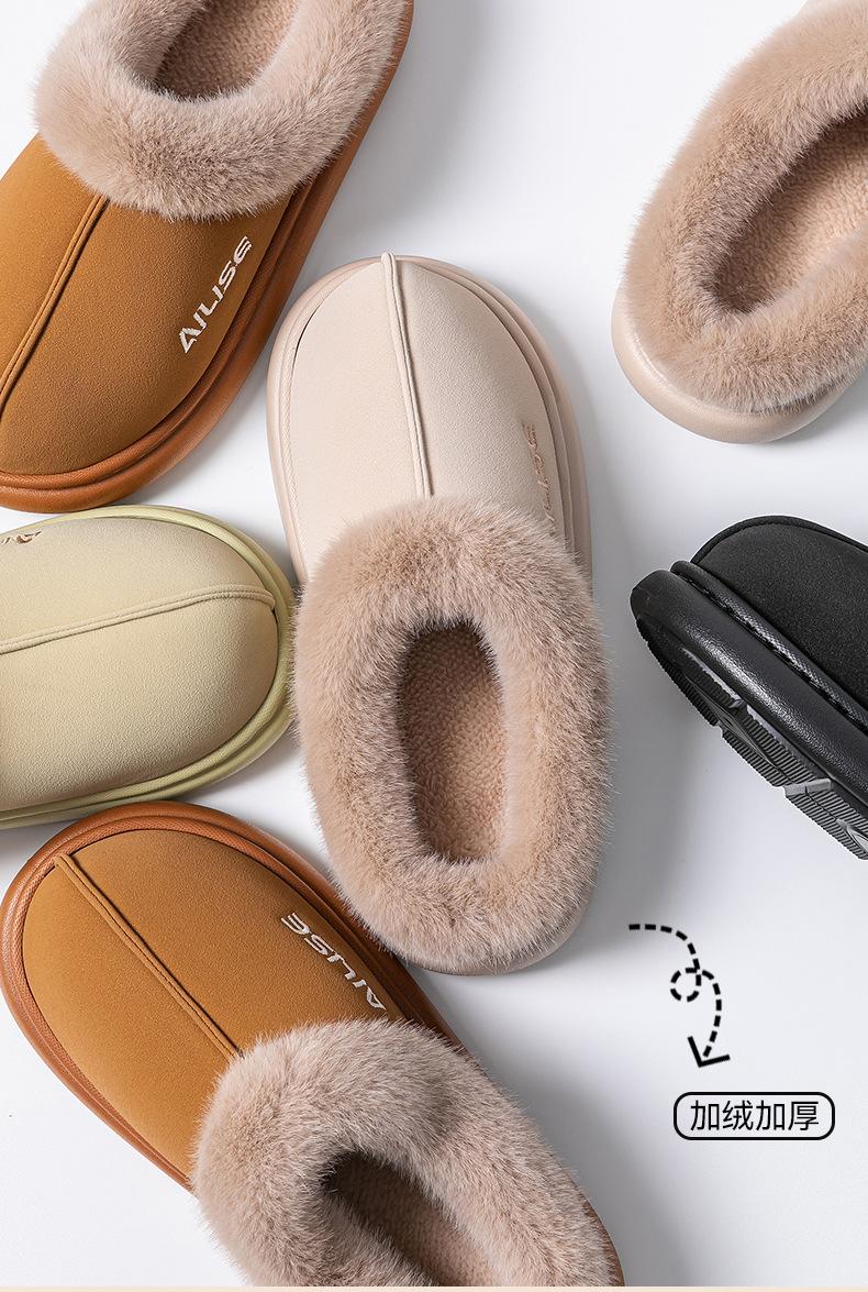 Chinelo de Algodão Feminino de Outono e Inverno 2025 Novo Estilo Interior Casa Pelúcia Quente Sola Grossa Antiderrapante Inverno Mulher