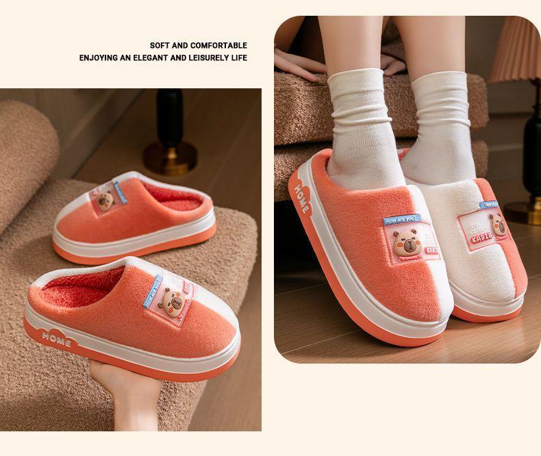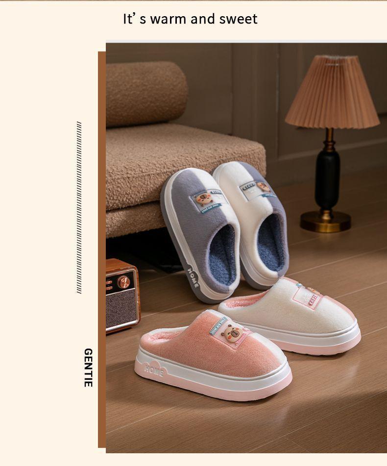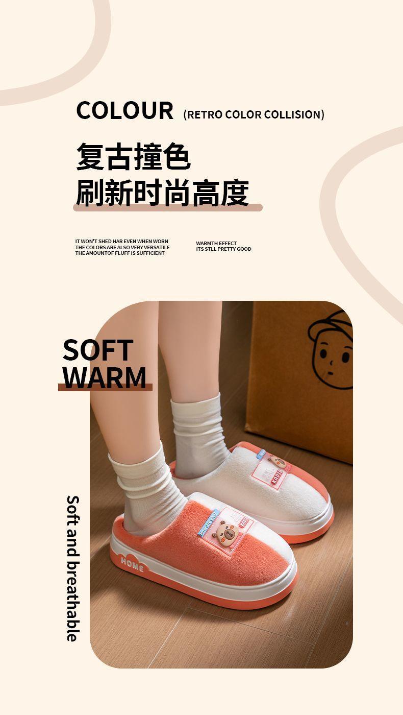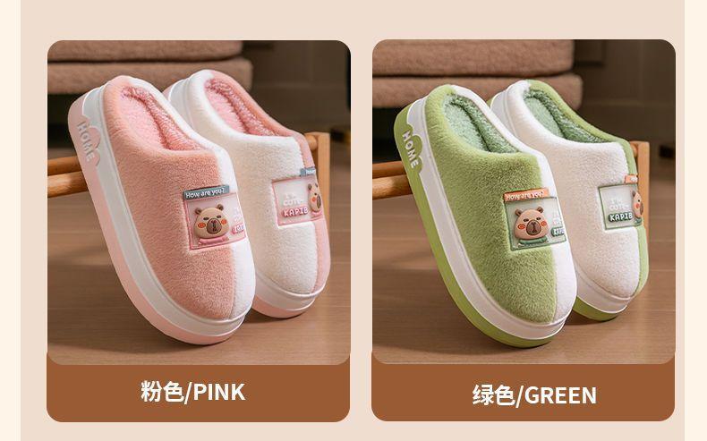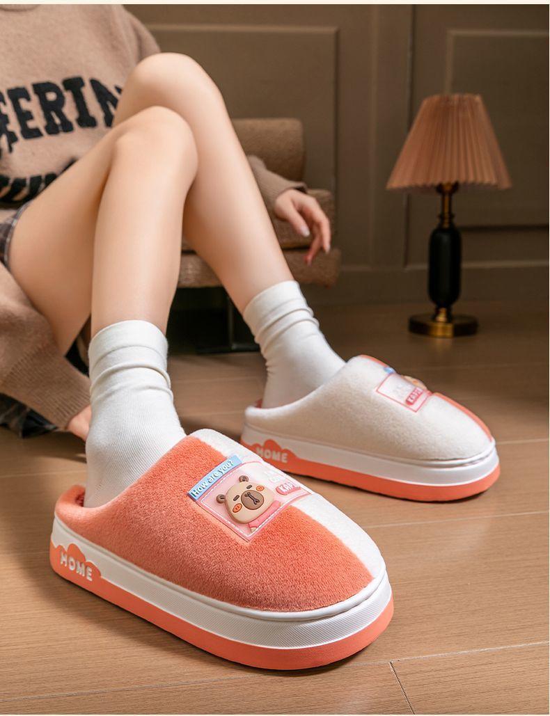 Chinelo de algodão feminino para casa de outono e inverno 2025 novo lar sola grossa desenho animado quente antiderrapante peludo masculino