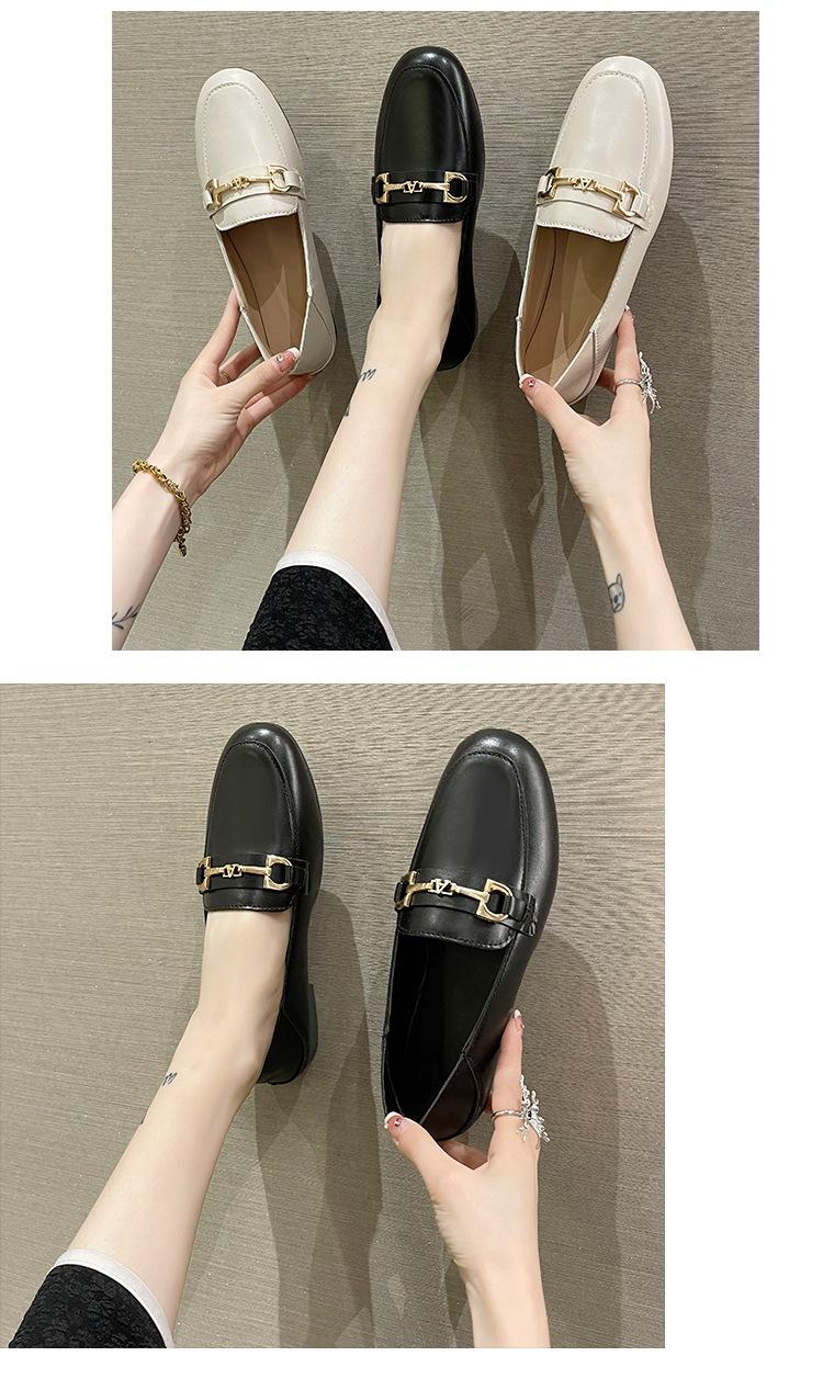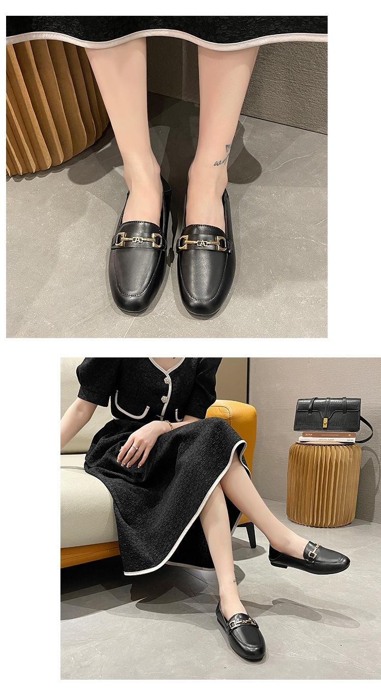 2025 Outono Novo Sapatos Baixos Femininos Decotados Versátil Sapatos de Couro Pequenos Slip-On Sapatos de Noite Mocassins da Moda