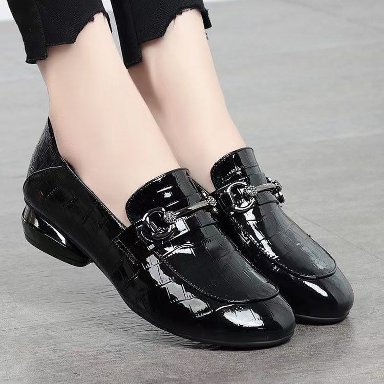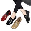 Sapatos Solos Femininos de Couro Macio Novo Estilo Estilo Britânico Sapatos de Couro Verniz Slip-on Sapatos de Duas Formas de Usar