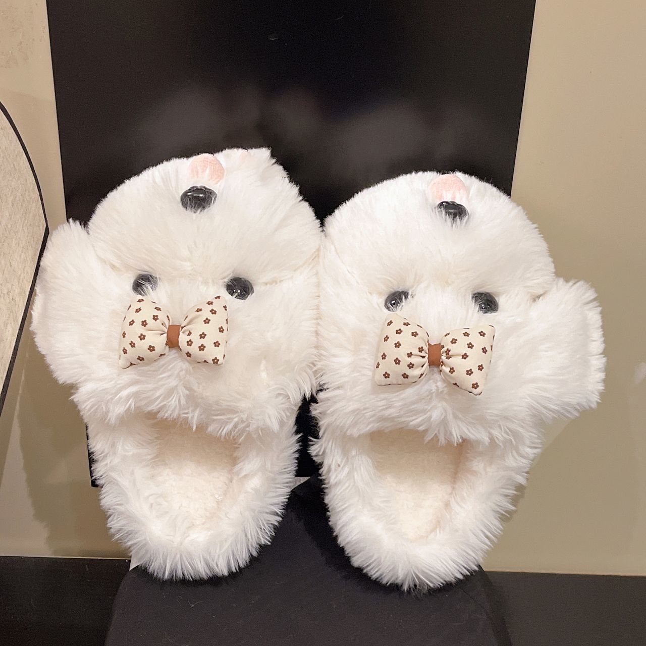 Pantufas fofas de cachorrinho de desenho animado feminino, peludas, novas para outono e inverno 2025, para exterior e casa, de bico fechado, tipo meio chinelo