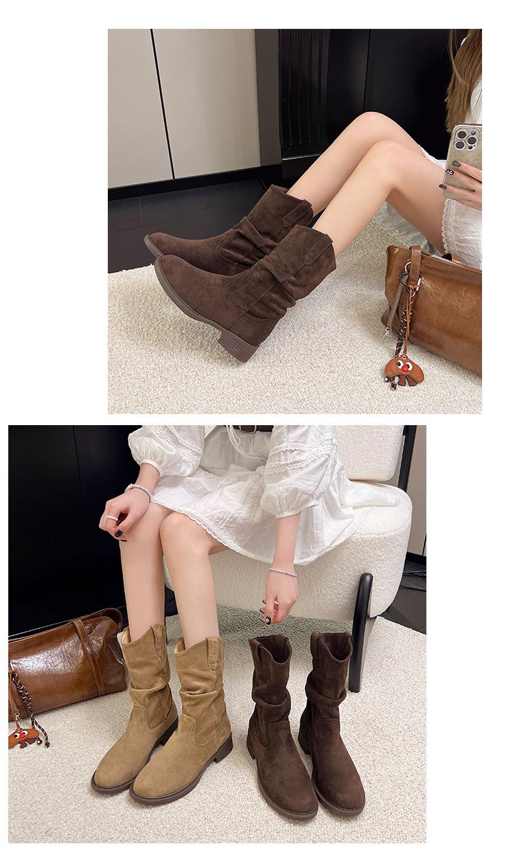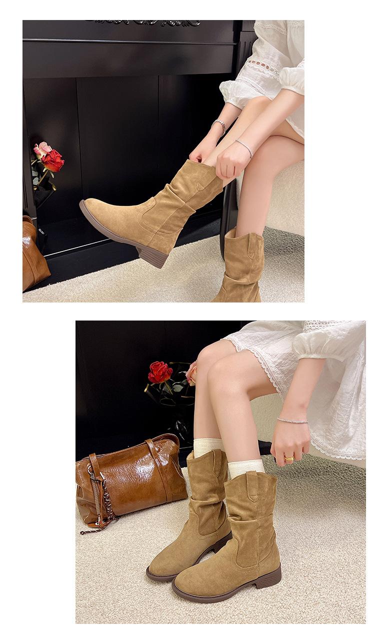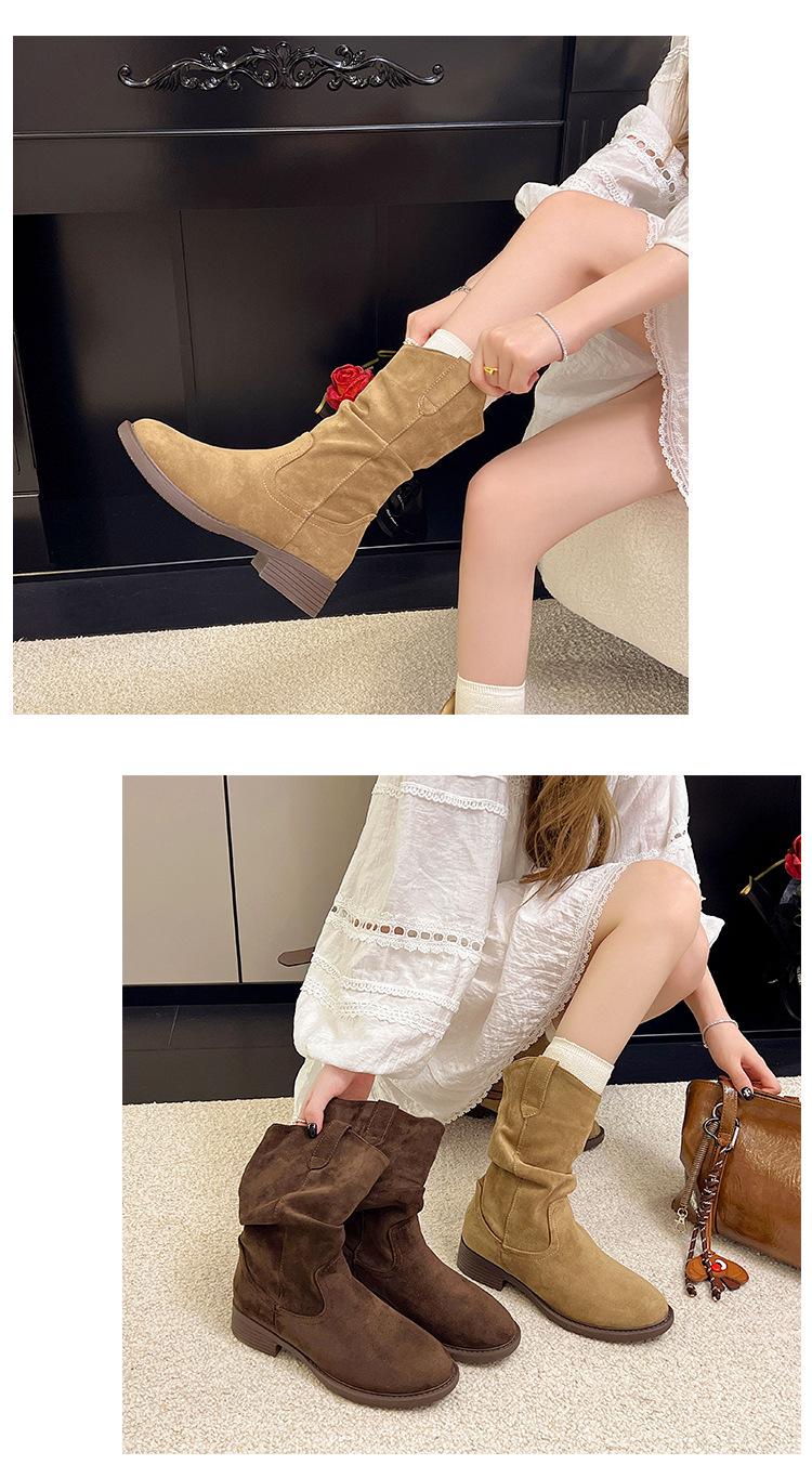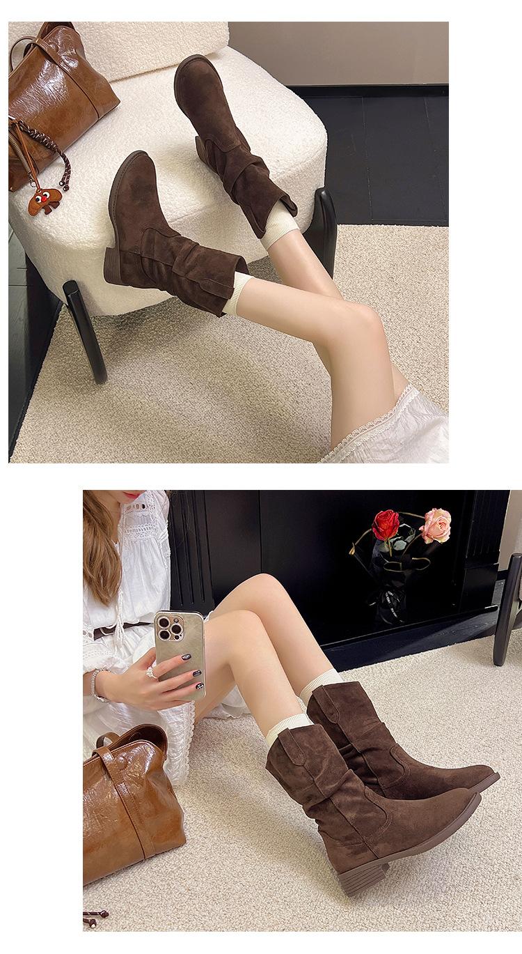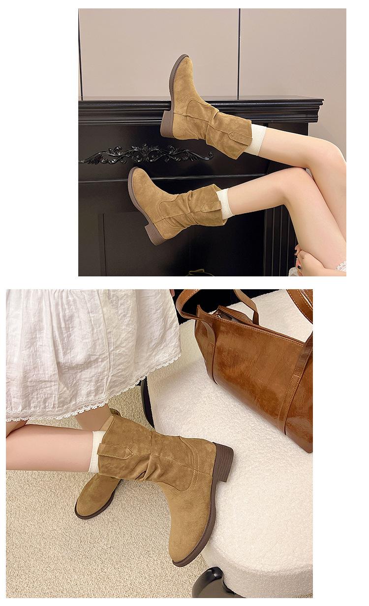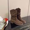 Botas Martin Meilaide femininas 2025 outono e inverno novas super quentes de cano médio com sola grossa cowboy ocidental botas curtas folgadas botas de cavaleiro