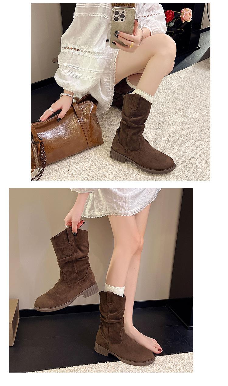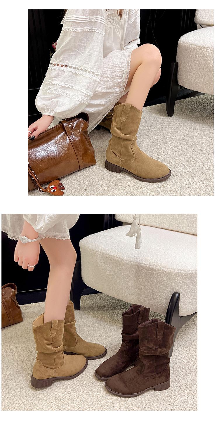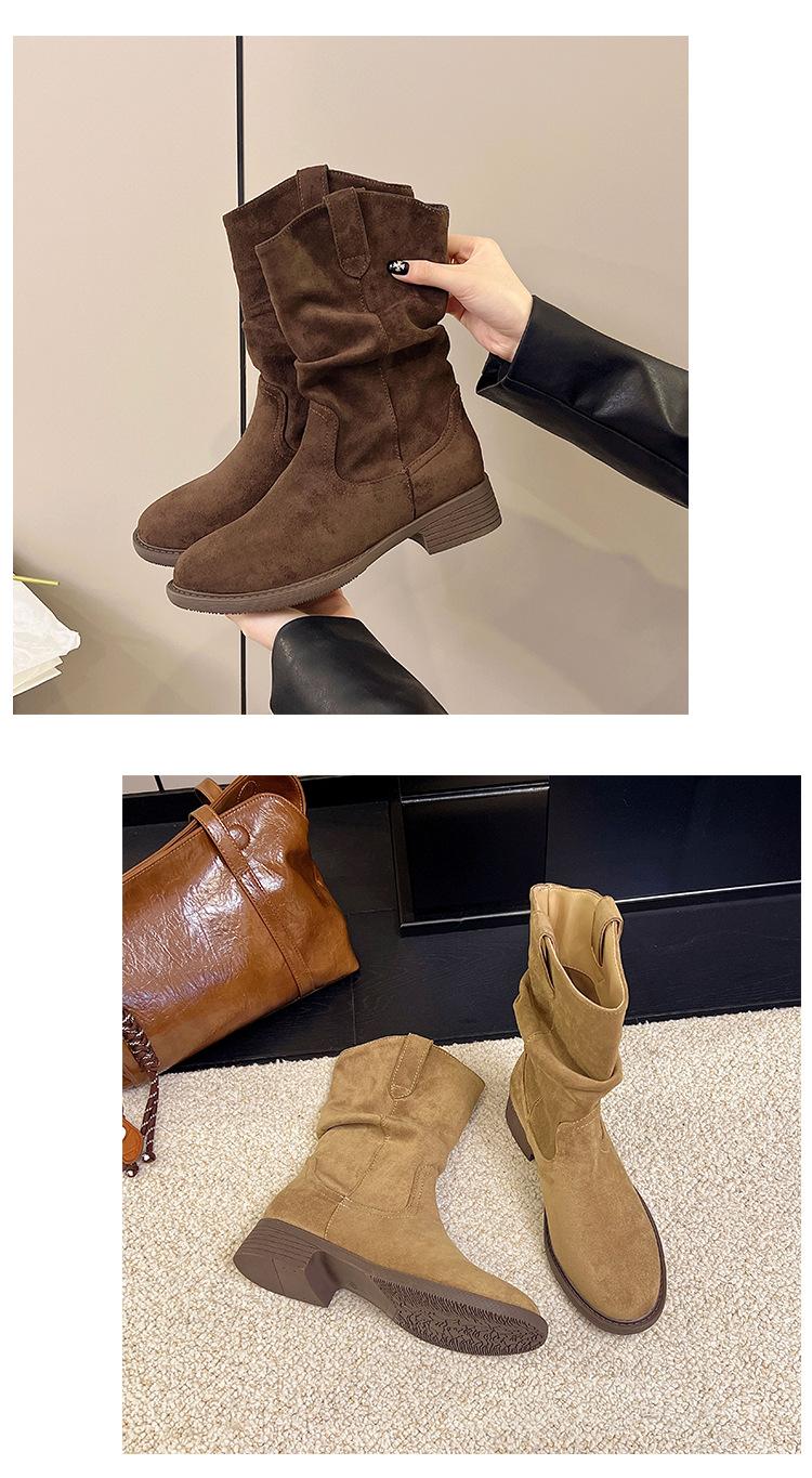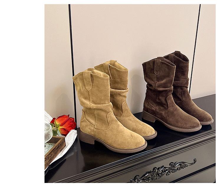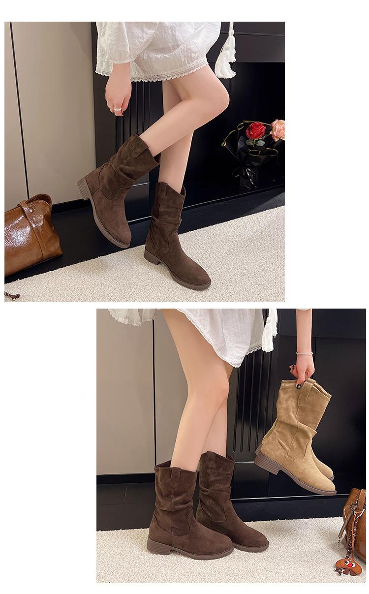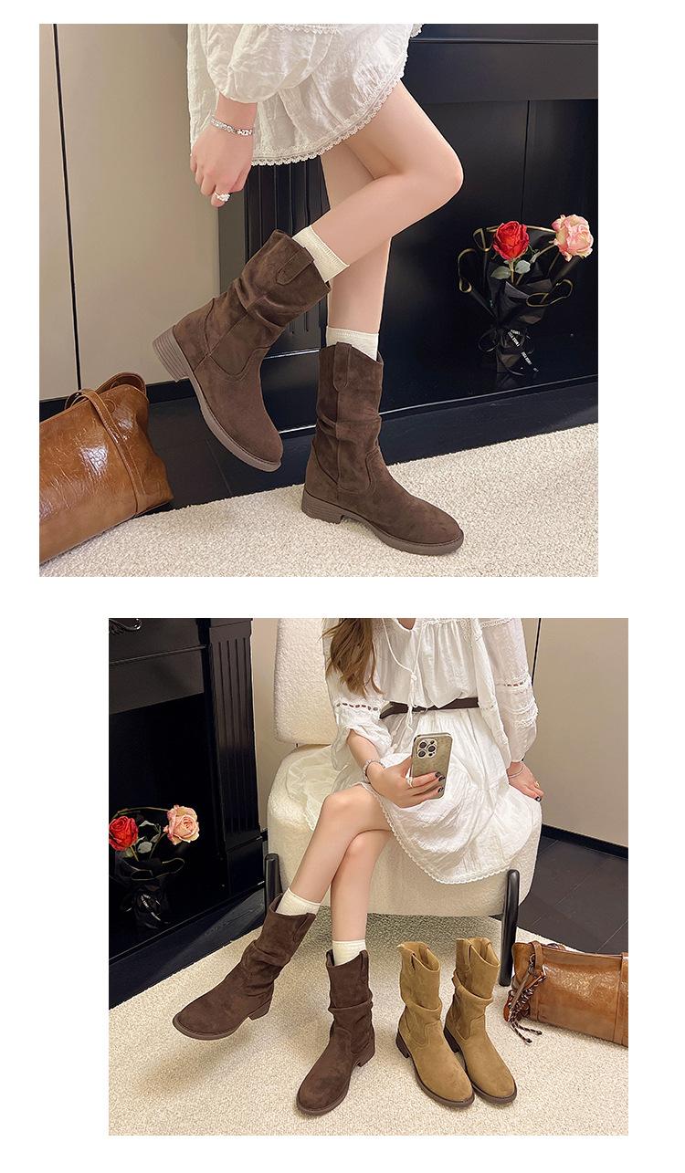 Botas Martin Meilaide femininas 2025 outono e inverno novas super quentes de cano médio com sola grossa cowboy ocidental botas curtas folgadas botas de cavaleiro
