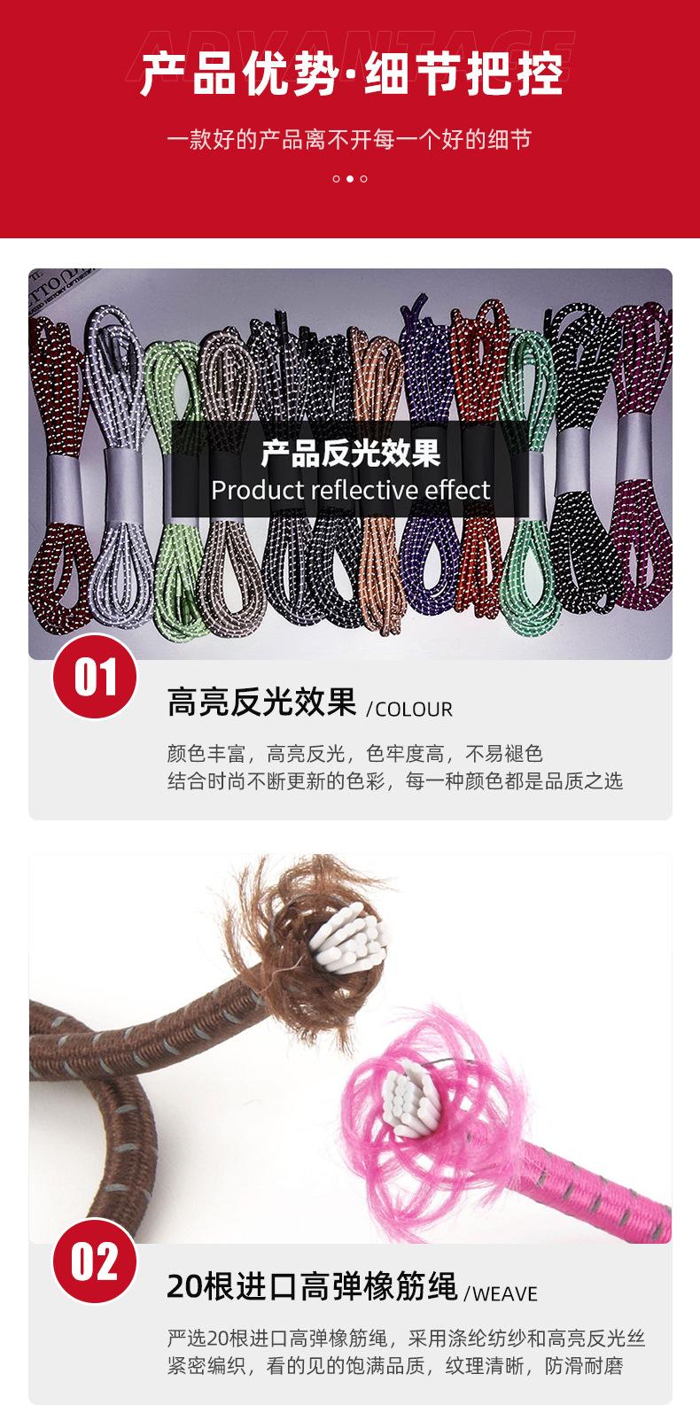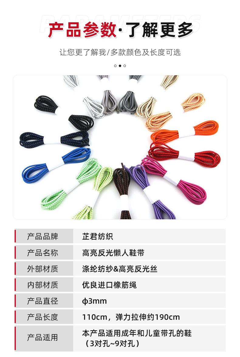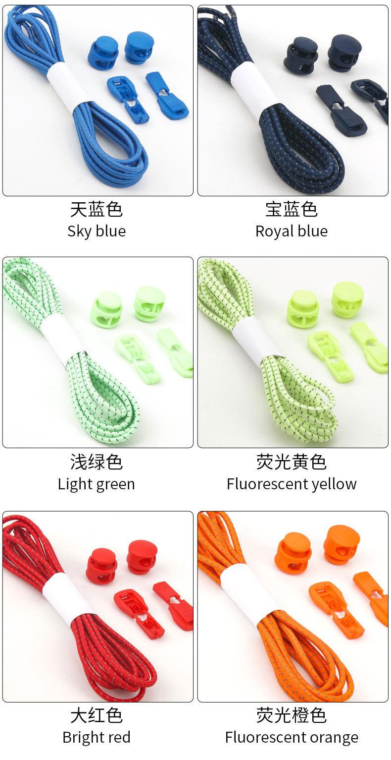 Cadarços Refletivos de 3mm em Estoque do Fabricante, Tecido Redondo, Tiras Elásticas para Sapatos Preguiçosos, Sapatos Unissex e Infantis