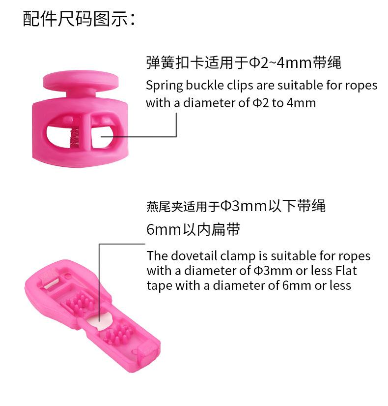 Cartão de fivela de mola para cadarço (Material: plástico + mola de metal)