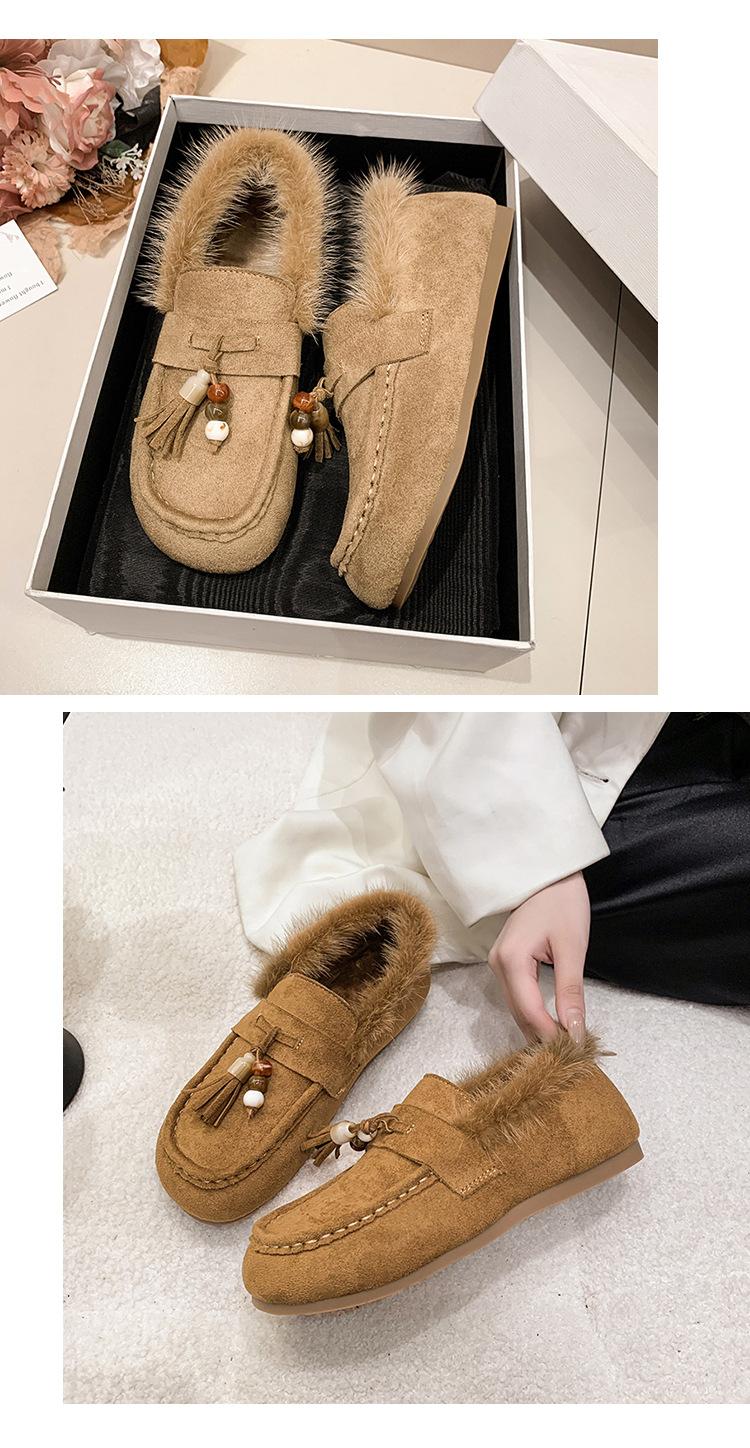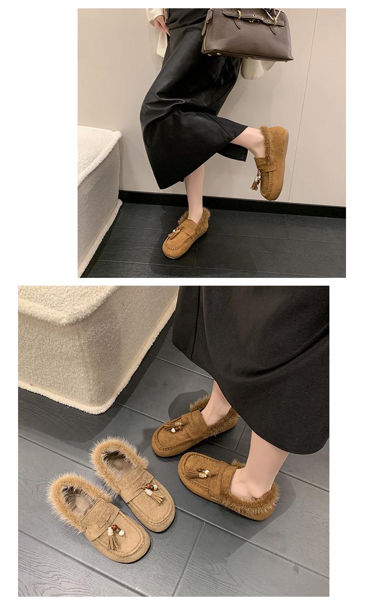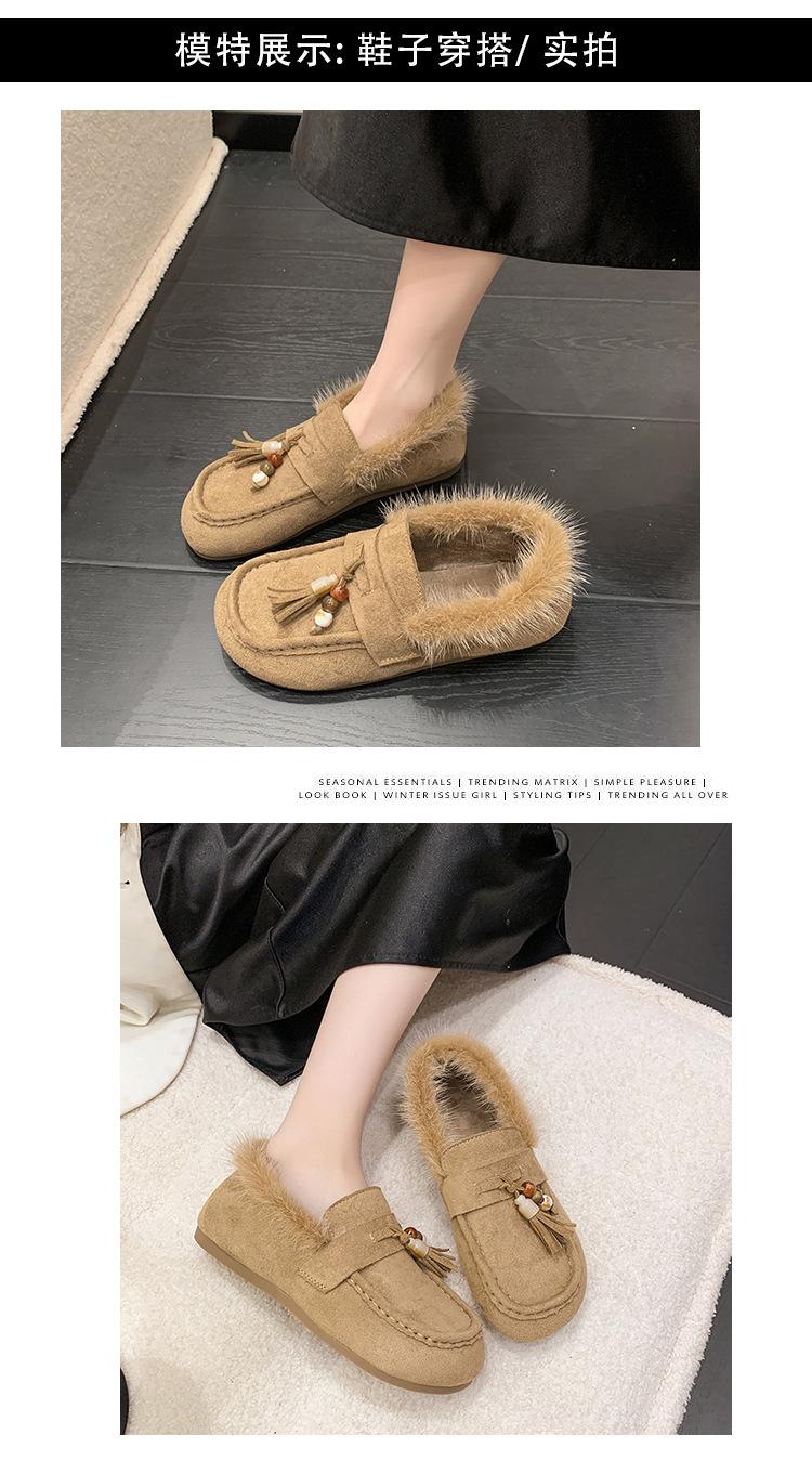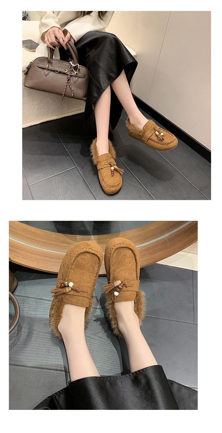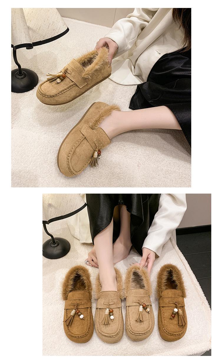 Mocassins slip-on de camurça sola macia outono 2025 feminino novo borla com miçangas moda versátil sapatos de algodão