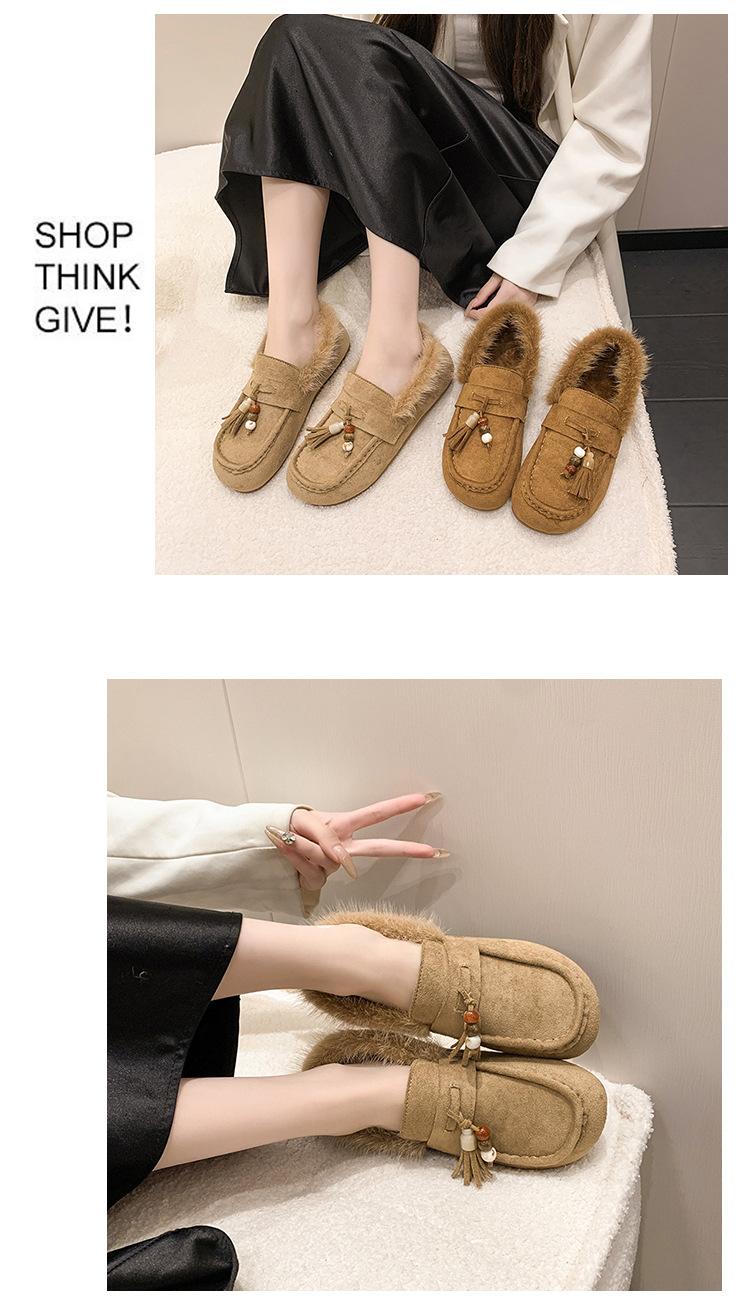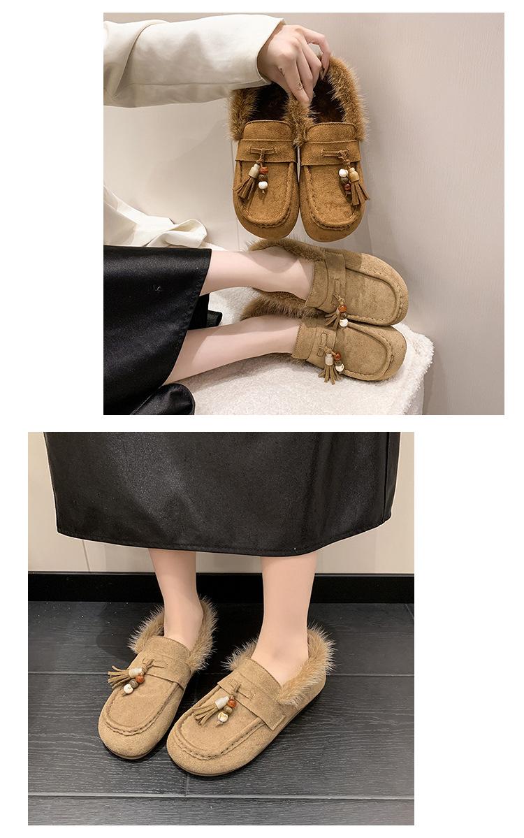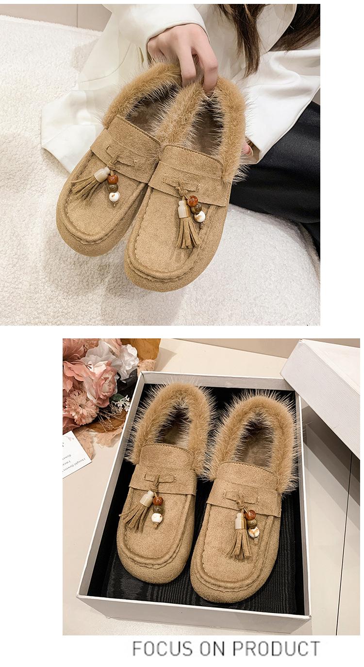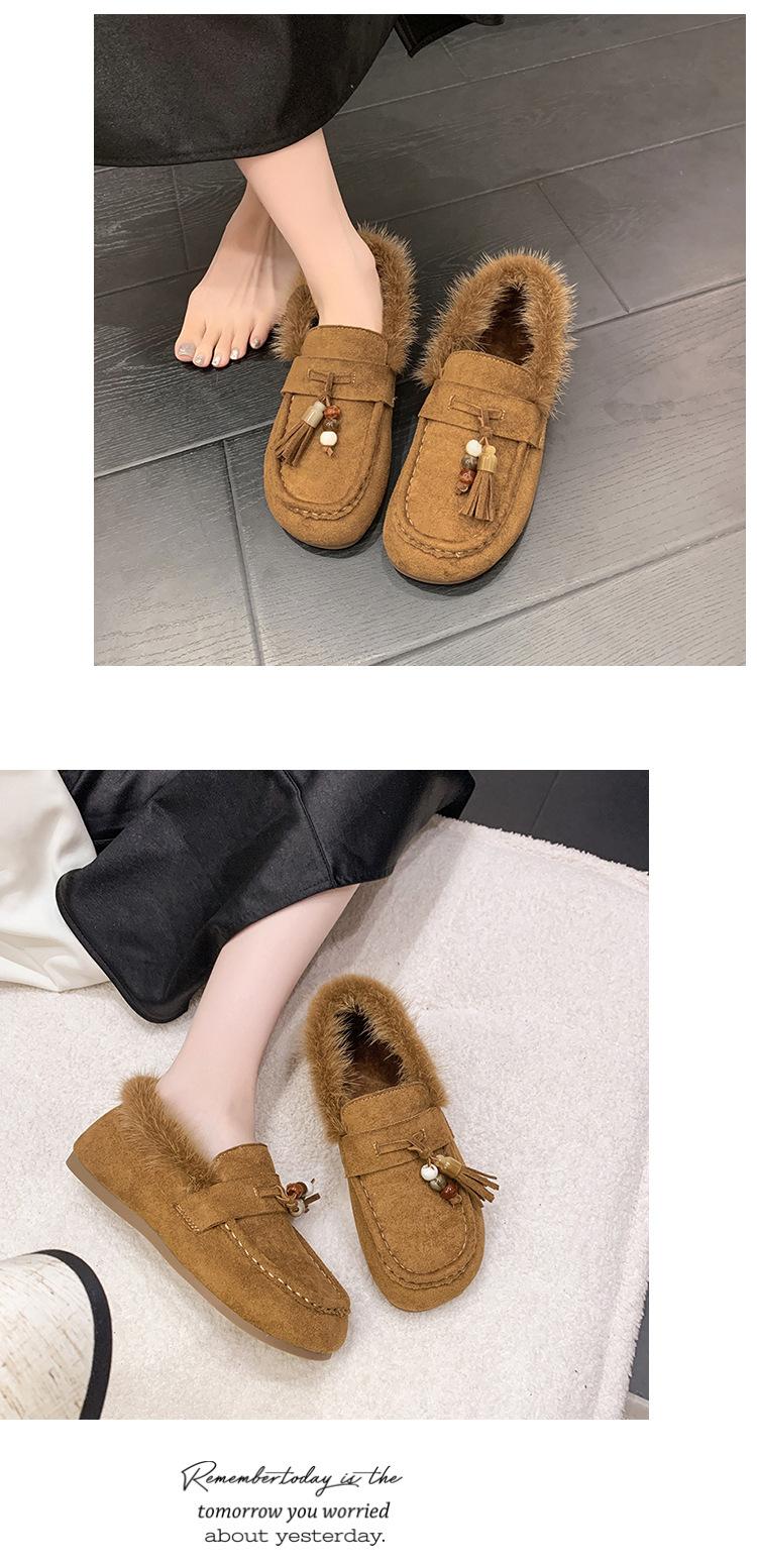 Mocassins slip-on de camurça sola macia outono 2025 feminino novo borla com miçangas moda versátil sapatos de algodão