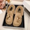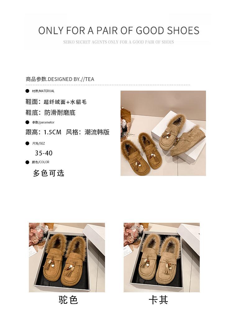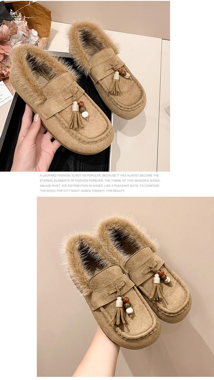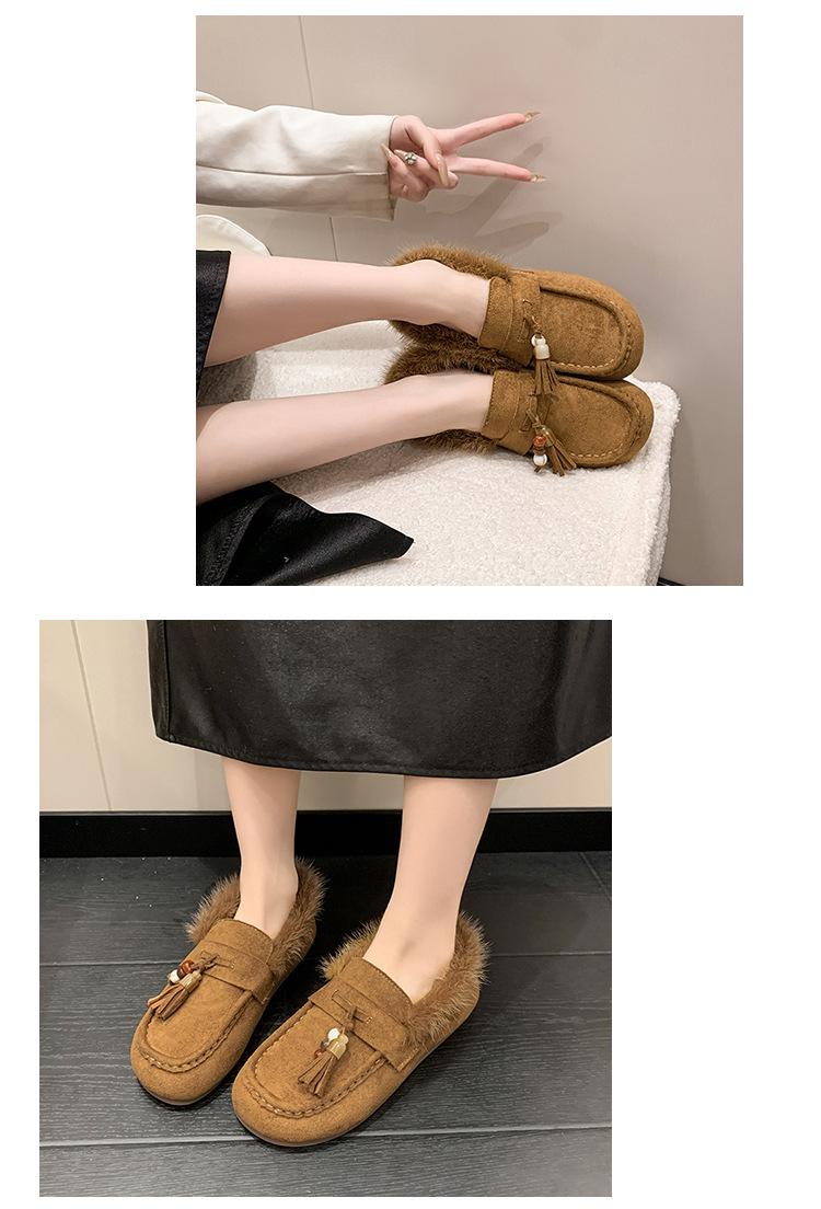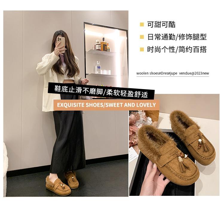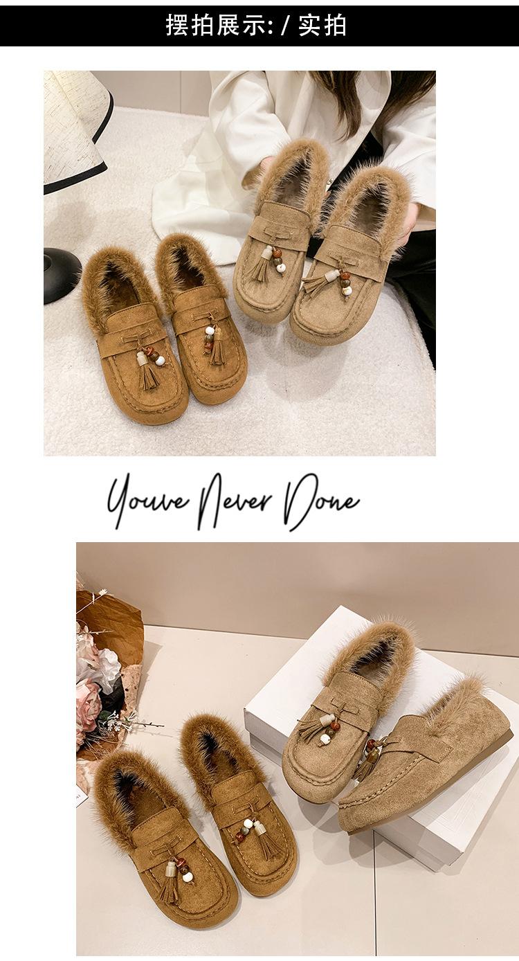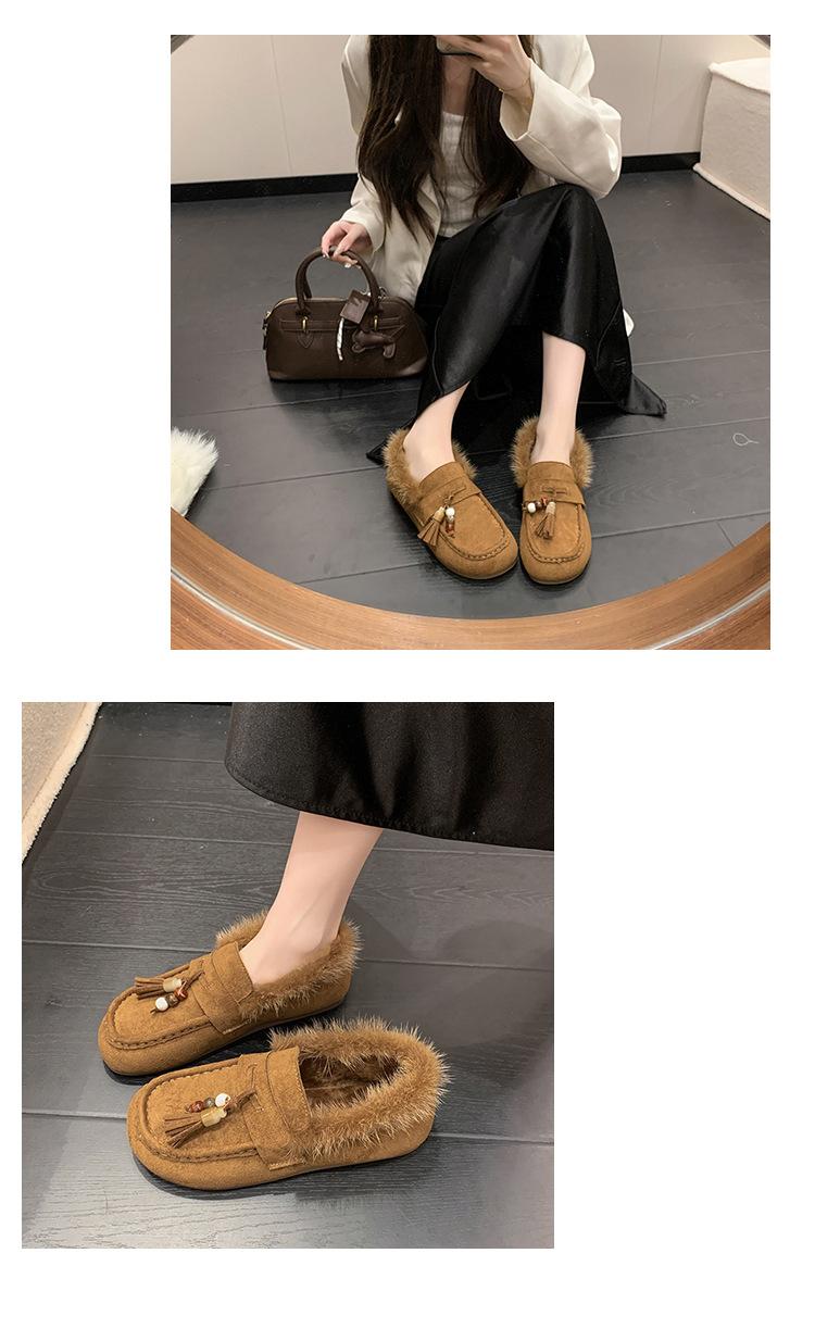 Mocassins slip-on de camurça sola macia outono 2025 feminino novo borla com miçangas moda versátil sapatos de algodão
