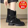 Botas Cowboy Ocidentais Novas 2025 Botas Simples Femininas de Primavera e Outono Cano Médio Afuniladas com Decote em V Botas Martin Empilhadas Enrugadas