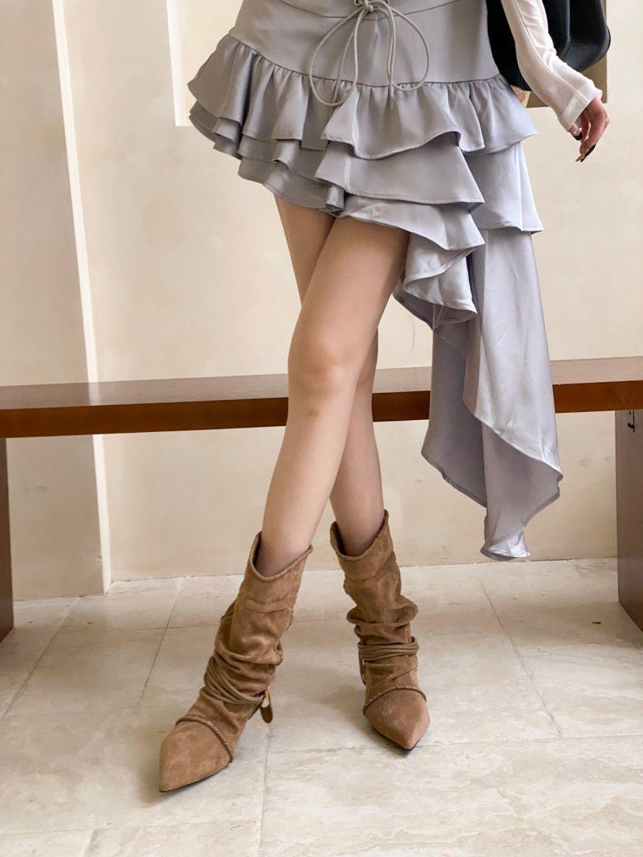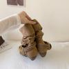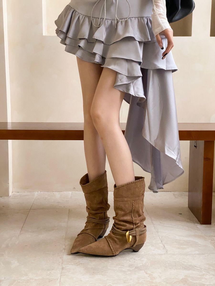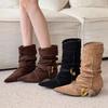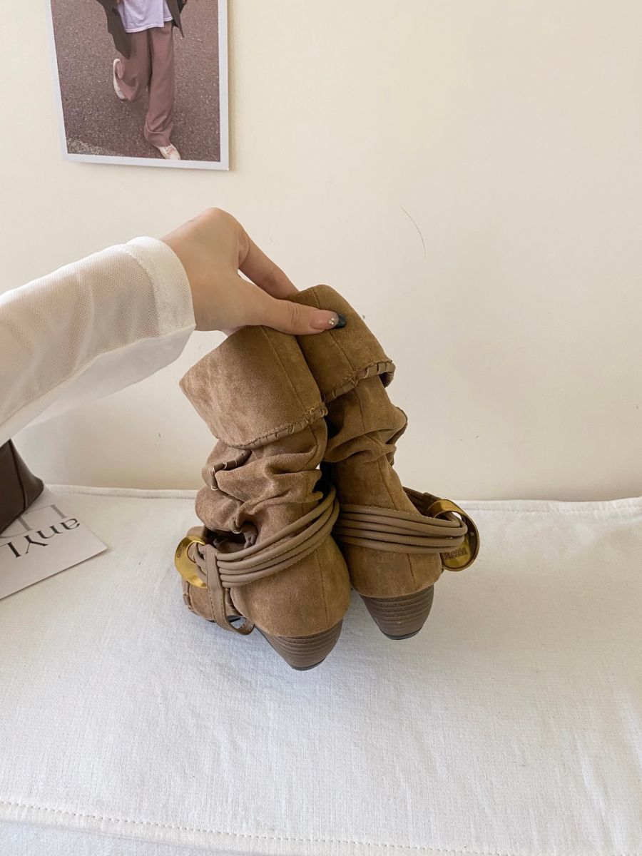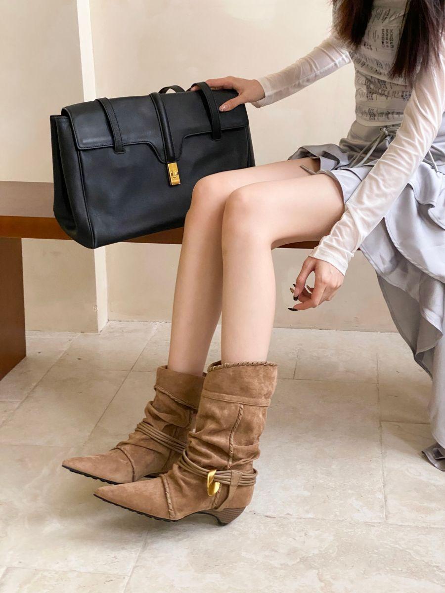 2025 Novo Outono e Inverno Bico Fino Salto Grosso Salto Médio Botins de Tornozelo Mulher Camurça Botas Skinny Elásticas Botins Curtos Mulher Botas Empilhadas