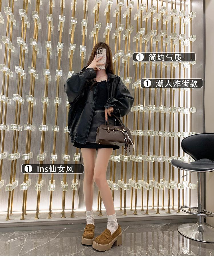 Temperamento esportivo e moderno sapatos de couro pequenos femininos 2025 novo outono e inverno versão coreana mocassins de moda retrô francesa