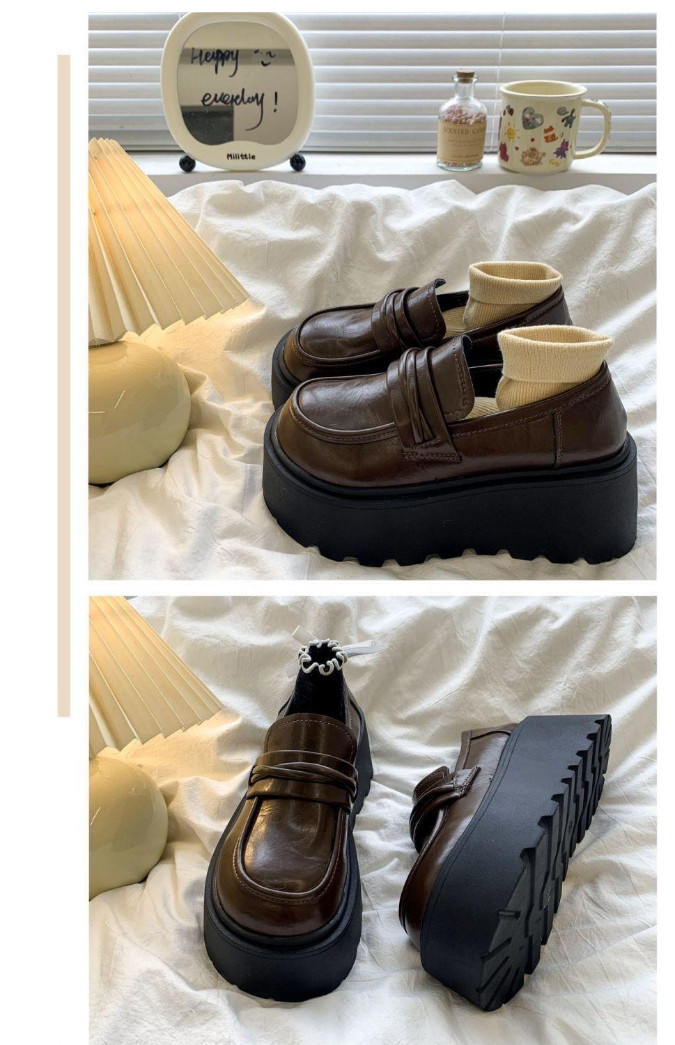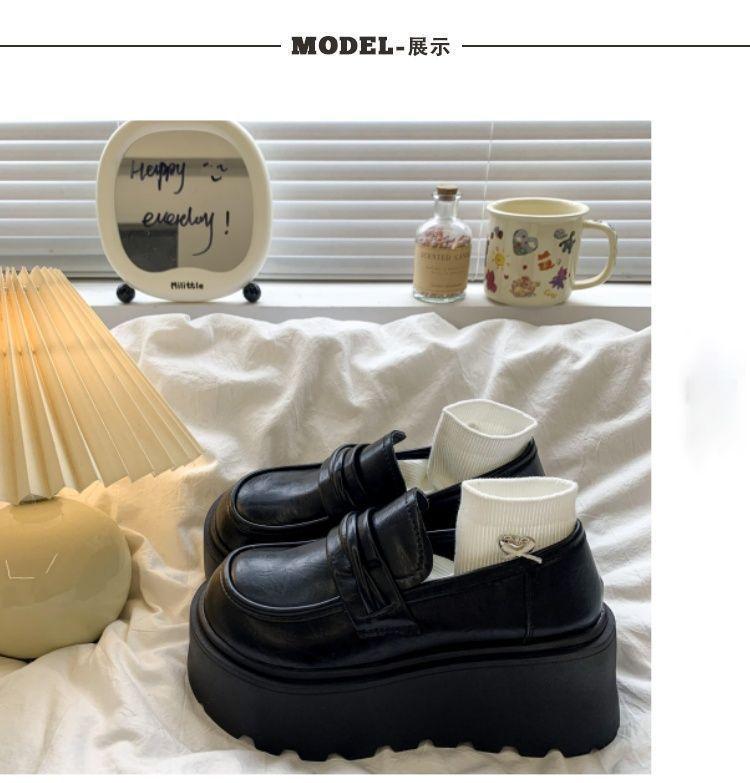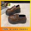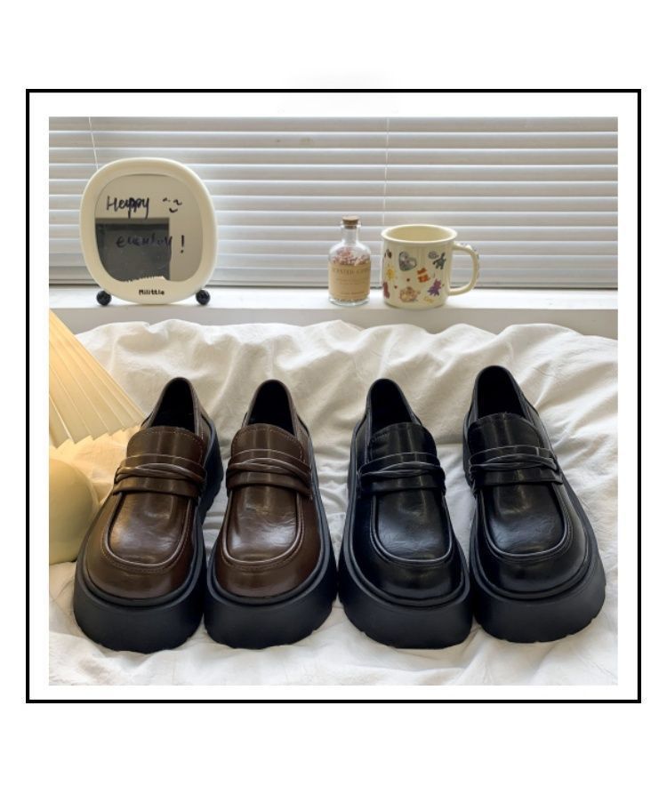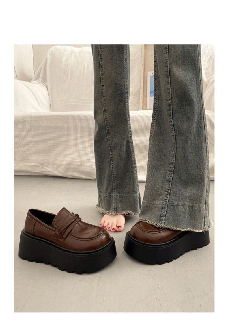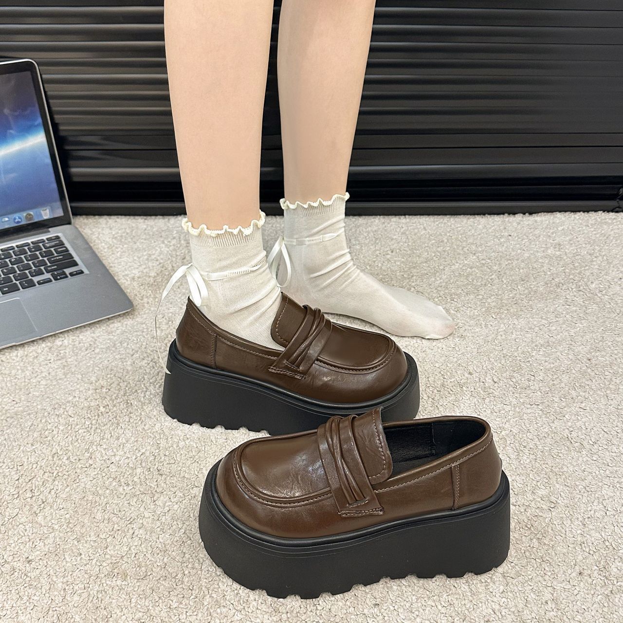 Compre Sapatos de couro pequenos de plataforma sola grossa modernos e versáteis para mulheres 2025 novo estilo estilo britânico retrô que aumentam a altura mocassins petite no atacado no Joom.pro