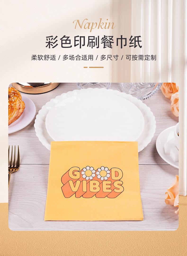Guardanapo Quadrado Estampado Personalizado do Fabricante Hotel Festa Comida Ocidental Guardanapo Quadrado Descartável 330*330