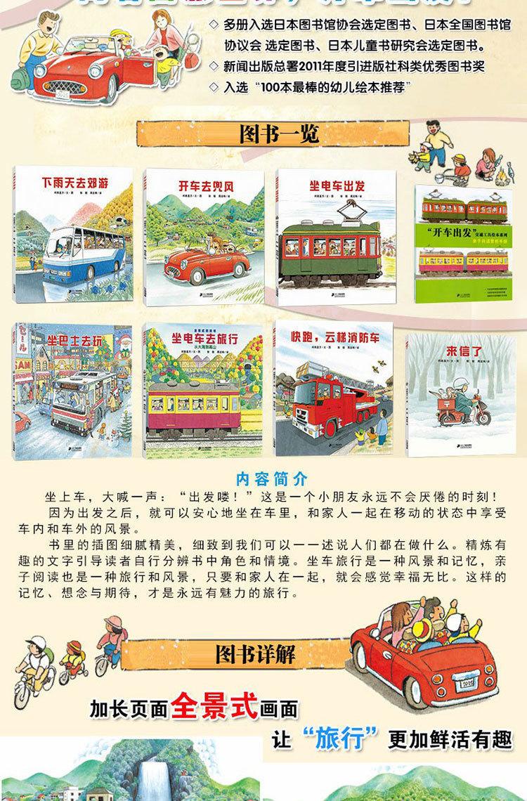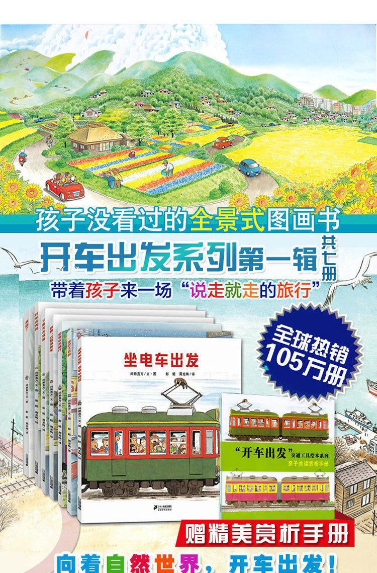Série de Livros Ilustrados Dirigindo e Partindo Conjunto Completo, Volume 1, 7 Volumes, Partindo de Bonde, Livro Ilustrado Infantil, 3-6 Anos Panorama