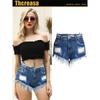 Amazon Aliexpress Jeans Rasgados Femininos, Shorts Jeans Rasgados Estilo Garota Quente, Cintura Alta, Efeito Emagrecedor