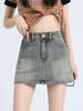 Saia Jeans Bordada Hot Girl Feminina 2023 Verão Retrô Antibrilho Plissada Saia Cintura Alta Modeladora A-line