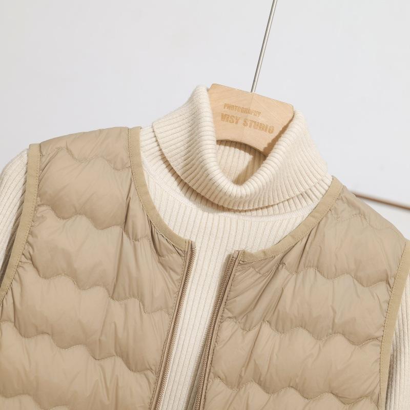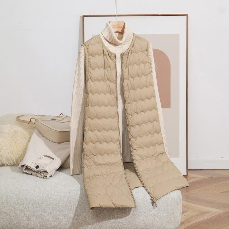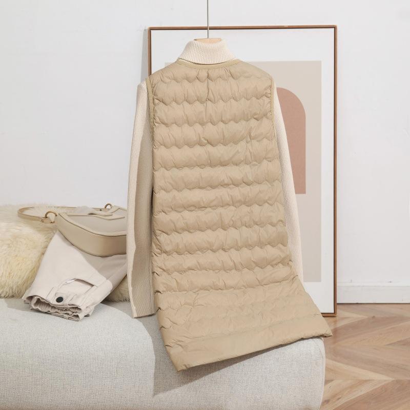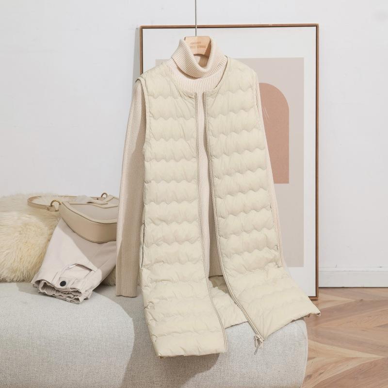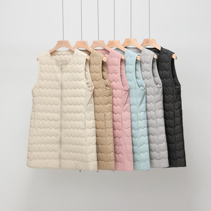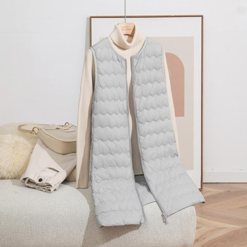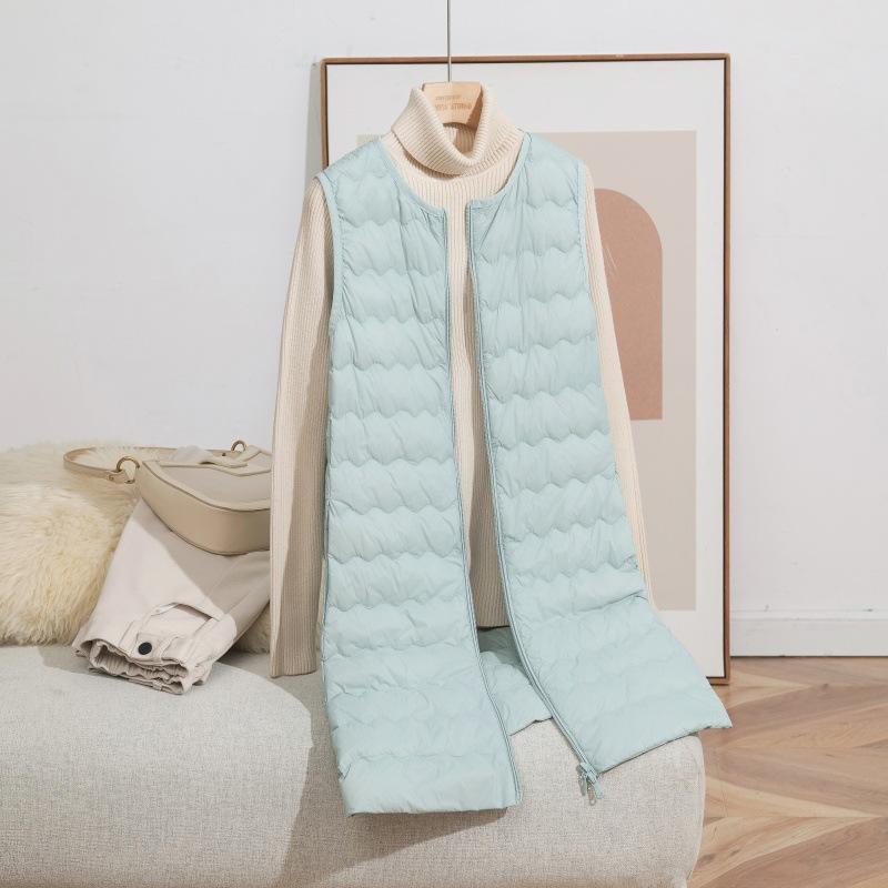 Outono e inverno estilo fino 2025 gola redonda comprimento médio colete de pena versão coreana slim fit quente 90 penugem de pato branco colete jaqueta sem mangas feminino