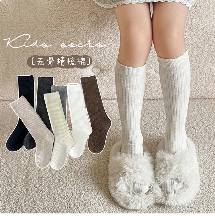Meias de Bezerro Novas de Outono e Inverno para Meninas Meias de Meia Panturrilha Sem Costura Algodão Penteado Meias Infantis de Primavera e Outono Meias Até o Joelho Estilo Coreano Personalizadas