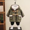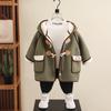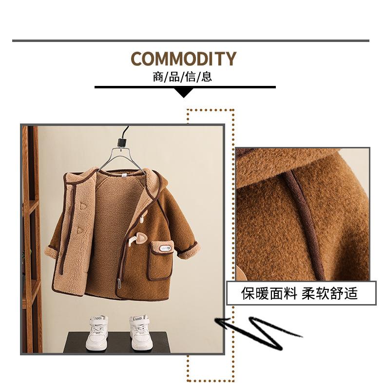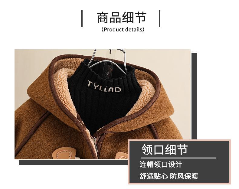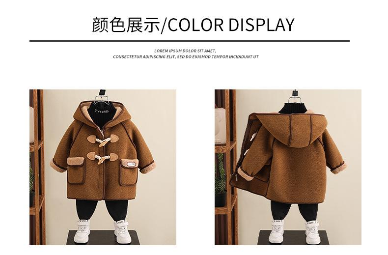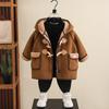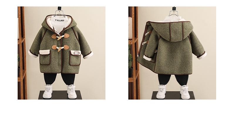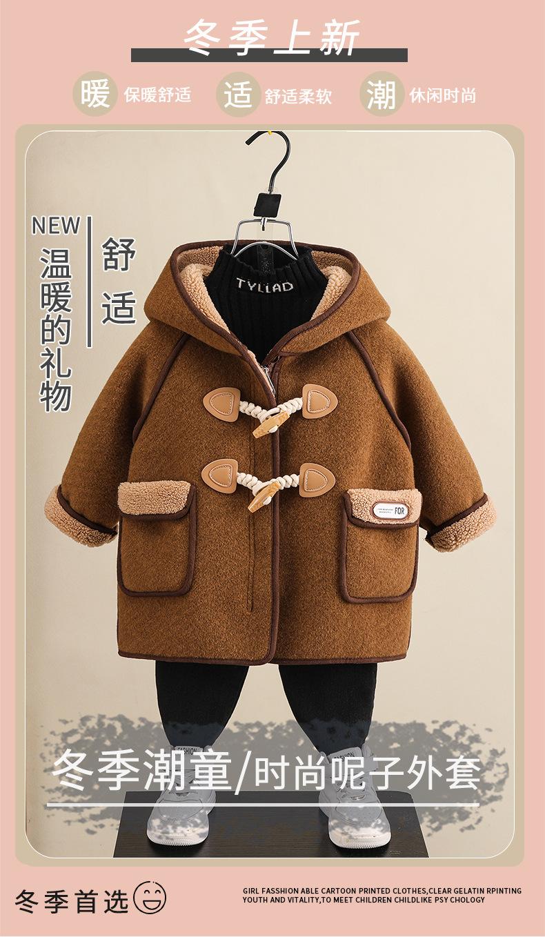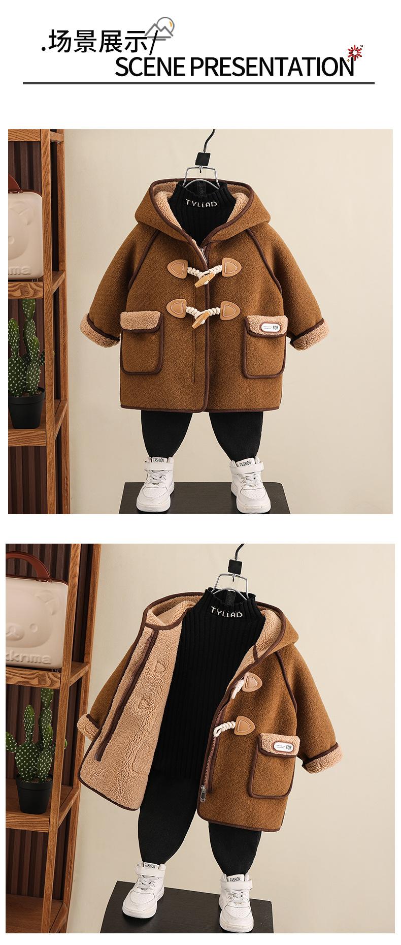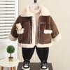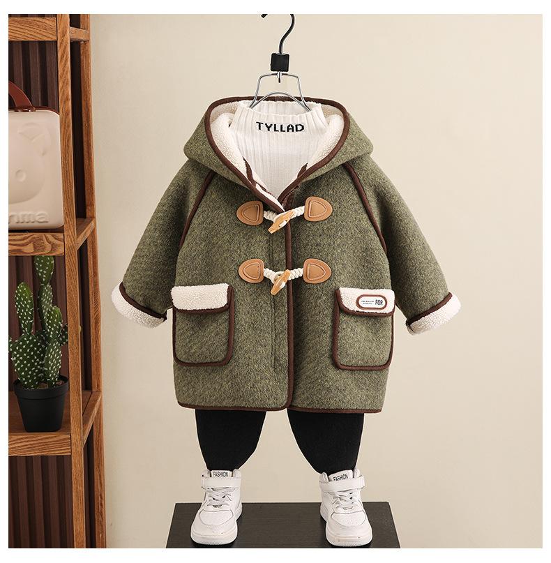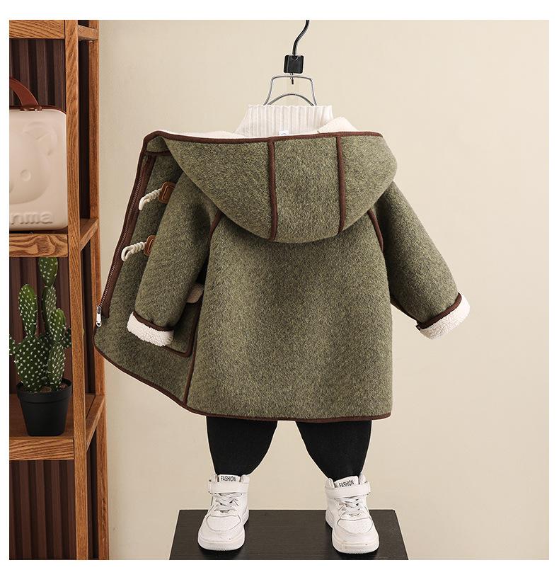 Casaco de Lã Infantil Estilo Outono e Inverno 2025 Novo Estilo Roupas Infantis Forrado de Lã Espessado Peça Única Lã Comprimento Médio Sobretudo de Lã