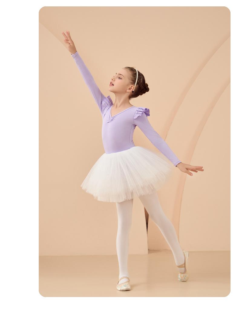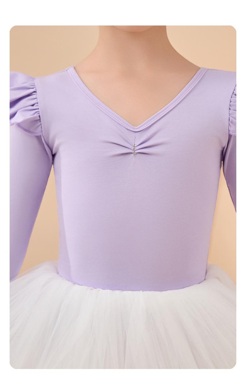 Roupa de dança infantil outono e inverno manga comprida algodão puro roupas de prática para meninas vestido de balé roxo para criança graduação roupa de dança chinesa